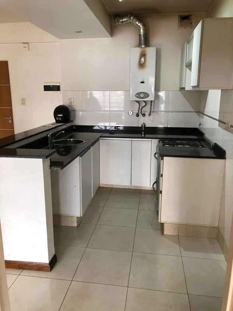 Квартира 2 ambientes с балконом на улицу, на Av. Rivadavia 9819. Доступна с 1/05/26; на момент публикации указано, что фото сделаны ранее, сейчас проведена покраска. Кухня с барной стойкой и местом под стиральную машину. В здании есть внутренний двор на первом этаже, солярий с джакузи на девятом этаже и большая общая гостиная для жильцов с зоной гриля. Коммунальные платежи здания составляют 142.000$ в месяц и включают воду. Срок договора 2 года, индексация раз в 3 месяца по индексу ICL. Условия
