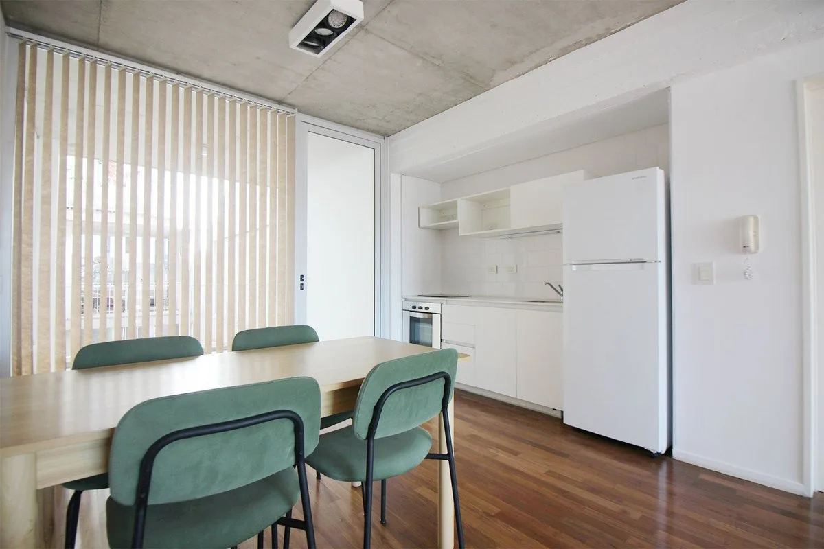 Квартира-студия в Villa Ortúzar площадью 45 m², 4-й этаж, окна на улицу. Планировка включает 34 m² крытых, 8 m² полукрытых и 2 m² открытых, есть балкон. Встроенная кухня и полноценная ванная комната, установлен кондиционер. В здании есть лифт, общая терраса и зона гриля; электричество и вода. Дом 2010 года, всего 6 этажей. В 2 кварталах от линии Subte B; рядом проходят маршруты автобусов по Av. Triunvirato.