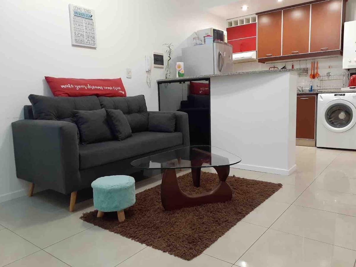 Квартира в Villa Pueyrredón с 1 спальней и парковочным местом. В доме есть кондиционер (охлаждение/обогрев) и балкон. Кухня оборудована микроволновой печью, электрочайником, холодильником с морозильной камерой. Из техники также указаны телевизоры и посуда. Вариант расположен в 2 кварталах от железнодорожной станции Villa Pueyrredón.