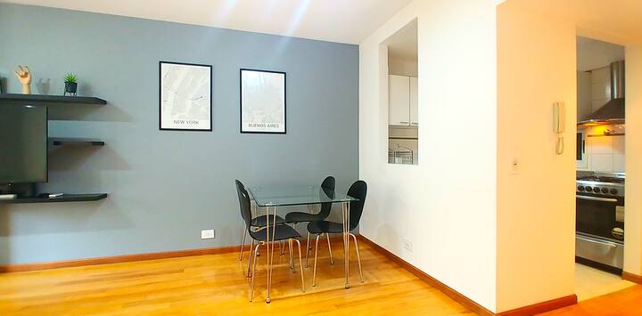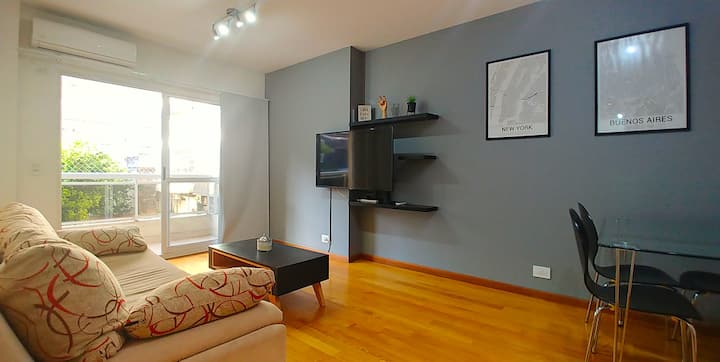 Квартира с 1 спальней в Villa Urquiza, с мебелью и полностью оборудованной кухней. Окна выходят на внутренний двор с бассейном; жилье тихое и с дневным светом. В здании есть бассейн, прачечная и сад. Доступ к бассейну и саду разрешён при аренде сроком от 1 месяца.