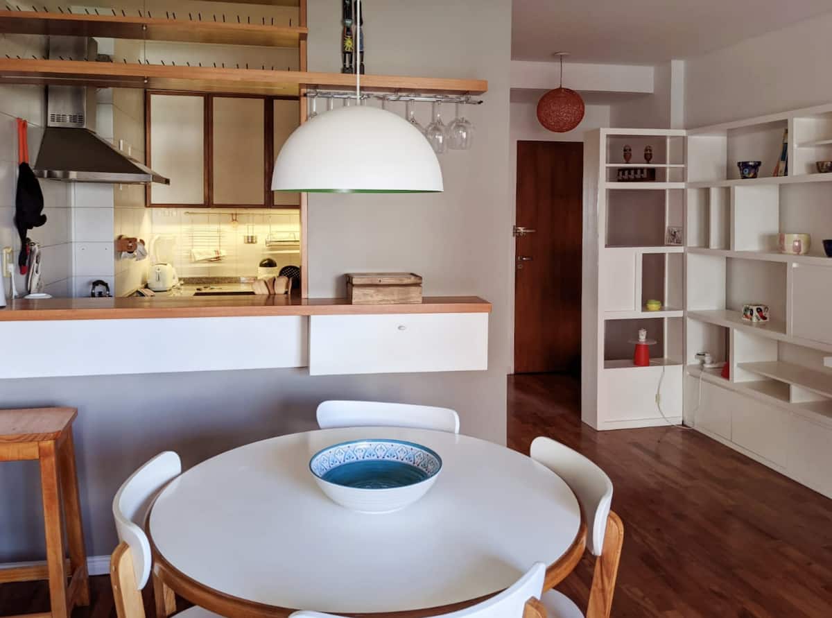 Квартира в Villa Urquiza с 1 спальней, с двумя балконами: один в спальне, второй в гостиной. В квартире есть полуинтегрированная кухня, гостиная с зоной для работы и приёма пищи, телевизор и кондиционер. В спальне — двуспальная кровать (queen), места хранения в виде вместительного шкафа. В ванной комнате установлены ванна и стиральная машина.