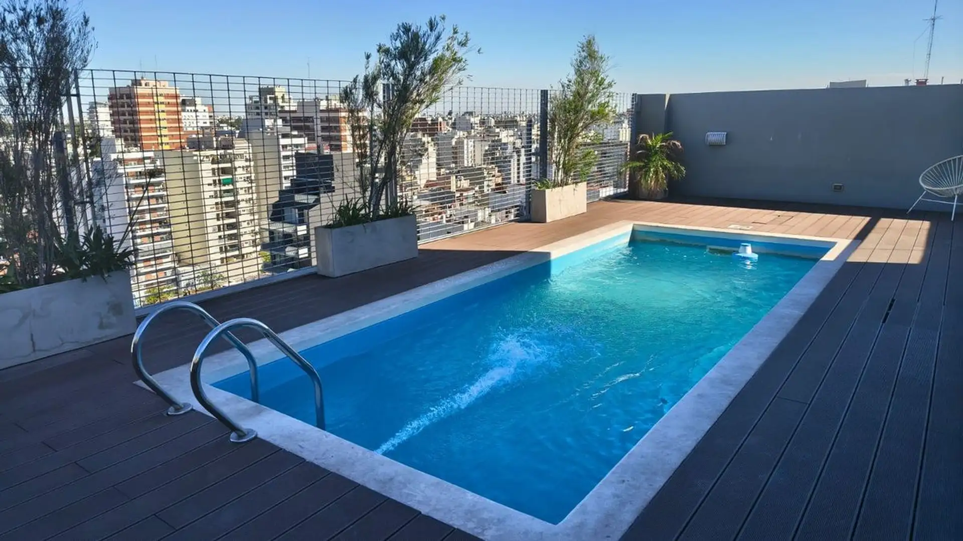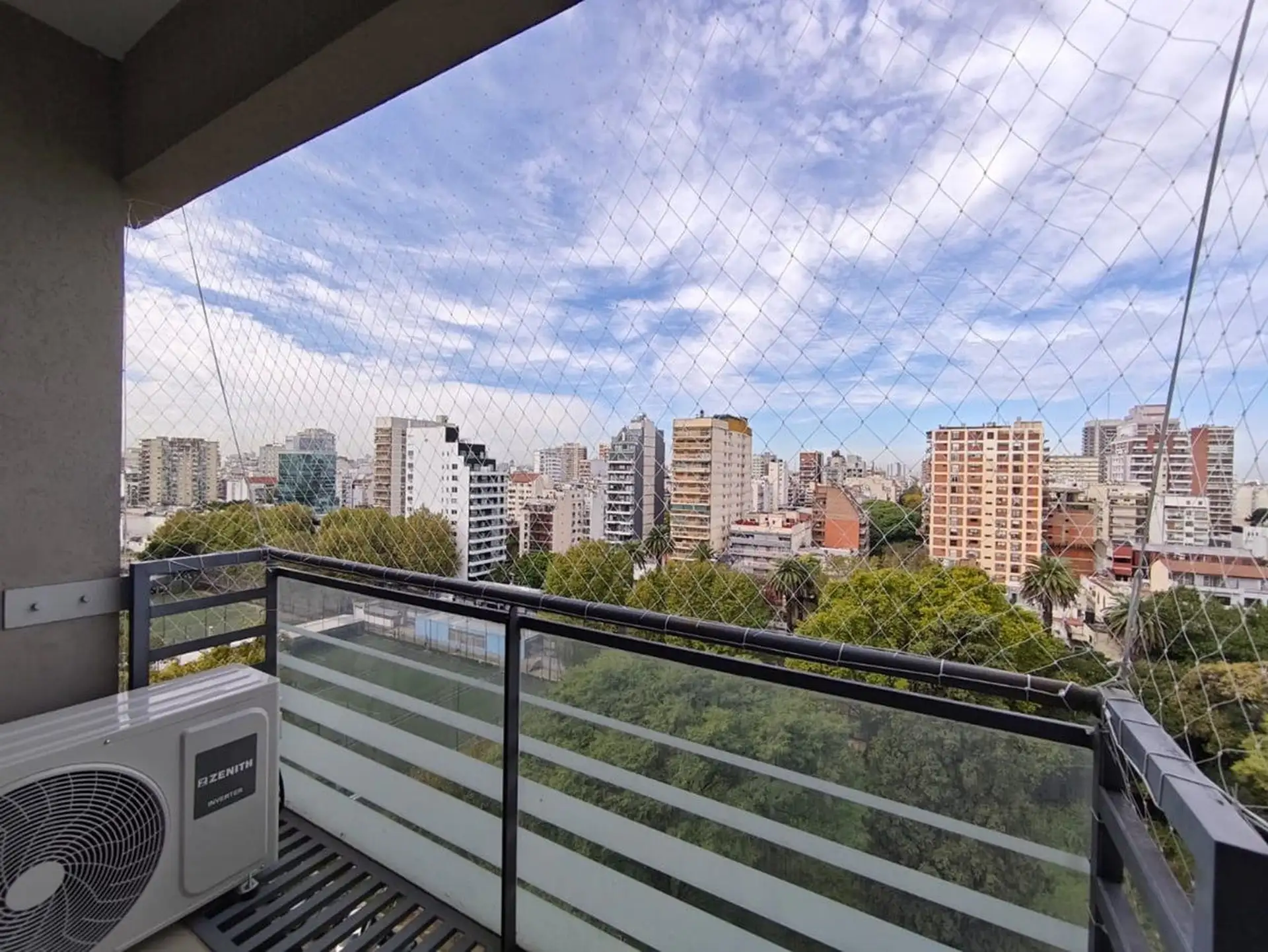 Квартира-студия в Villa Urquiza площадью 35 m², 11-й этаж, окна на улицу. Новая, с 32 m² крытых и 3 m² полукрытых, с полностью оборудованной ванной комнатой. В квартире есть кондиционер «холод/тепло», в кухне предусмотрено подключение для стиральной машины, на балконе установлена сеть; также упоминается балкон. В здании есть общая гостиная для жильцов (SUM), зона гриля, бассейн, прачечная и лифт. Адрес: Franklin Delano Roosevelt 5200, между Bucarelli и Baunnes.