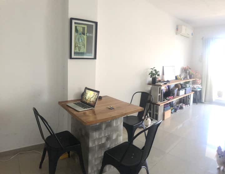 Квартира-студия в Villa Urquiza. Предусмотрены необходимые удобства для длительного проживания. Рядом находятся гастрономический кластер и специализированные кафе, при этом район сохраняет спокойствие и зелёные пространства.