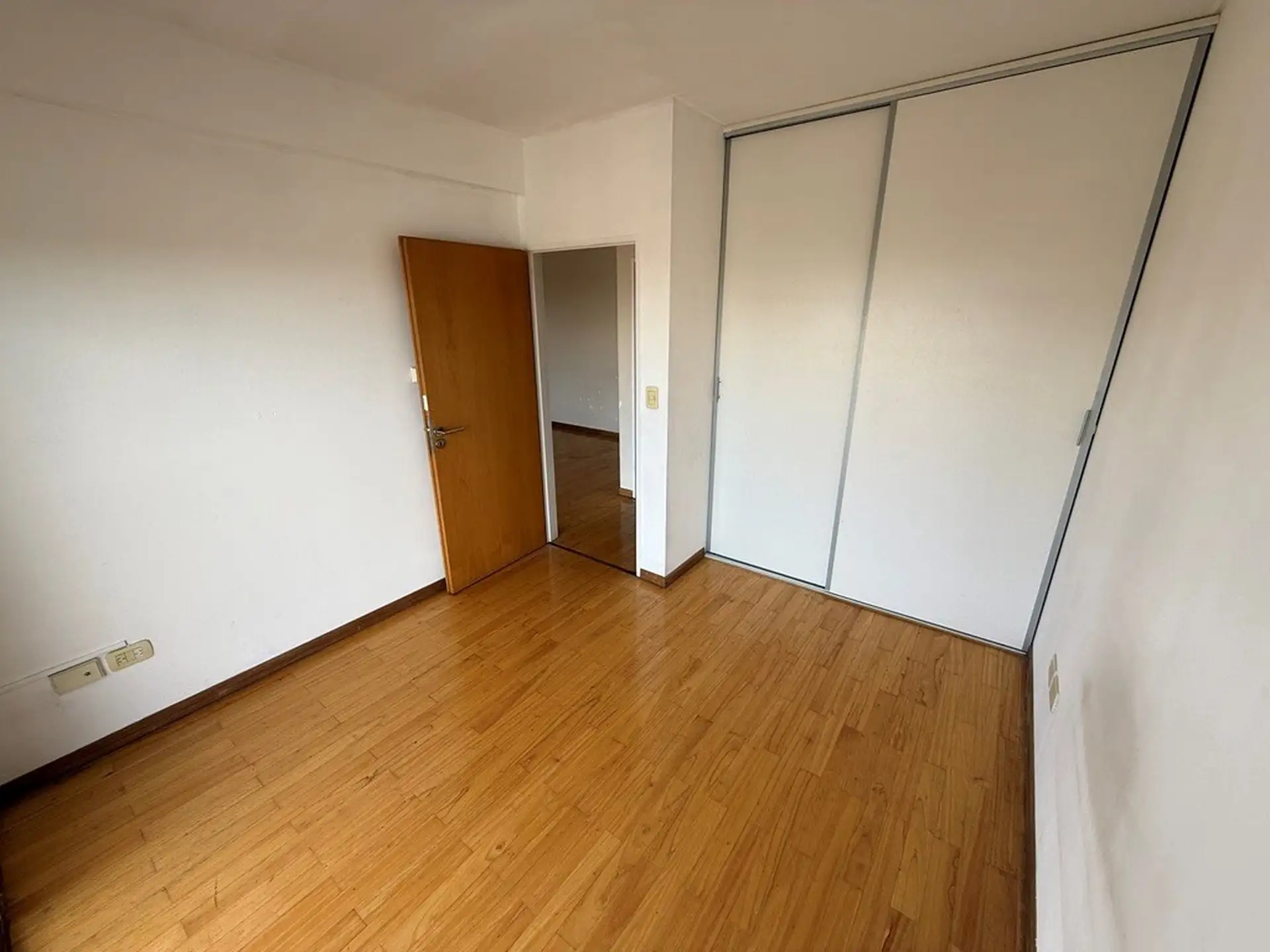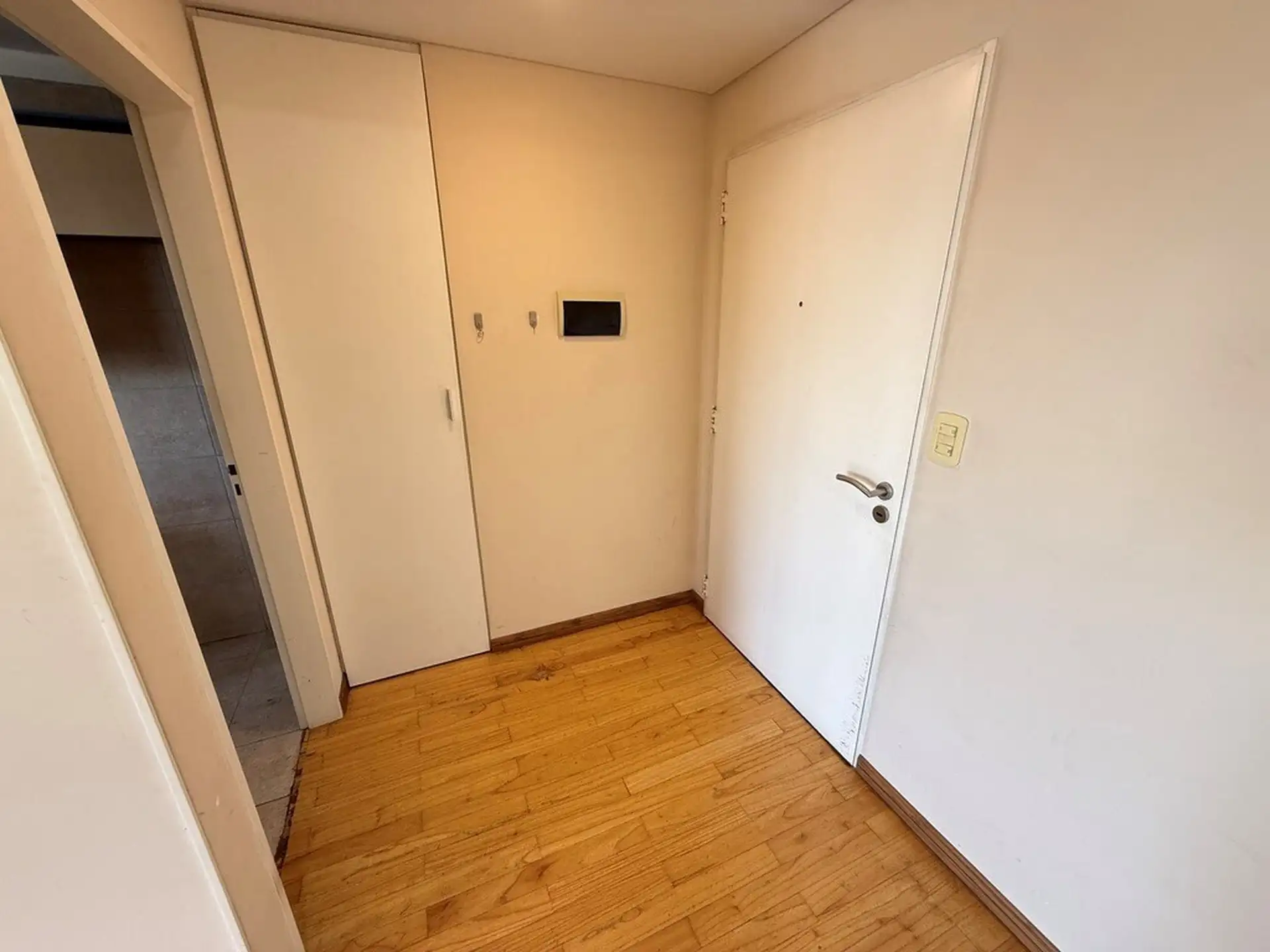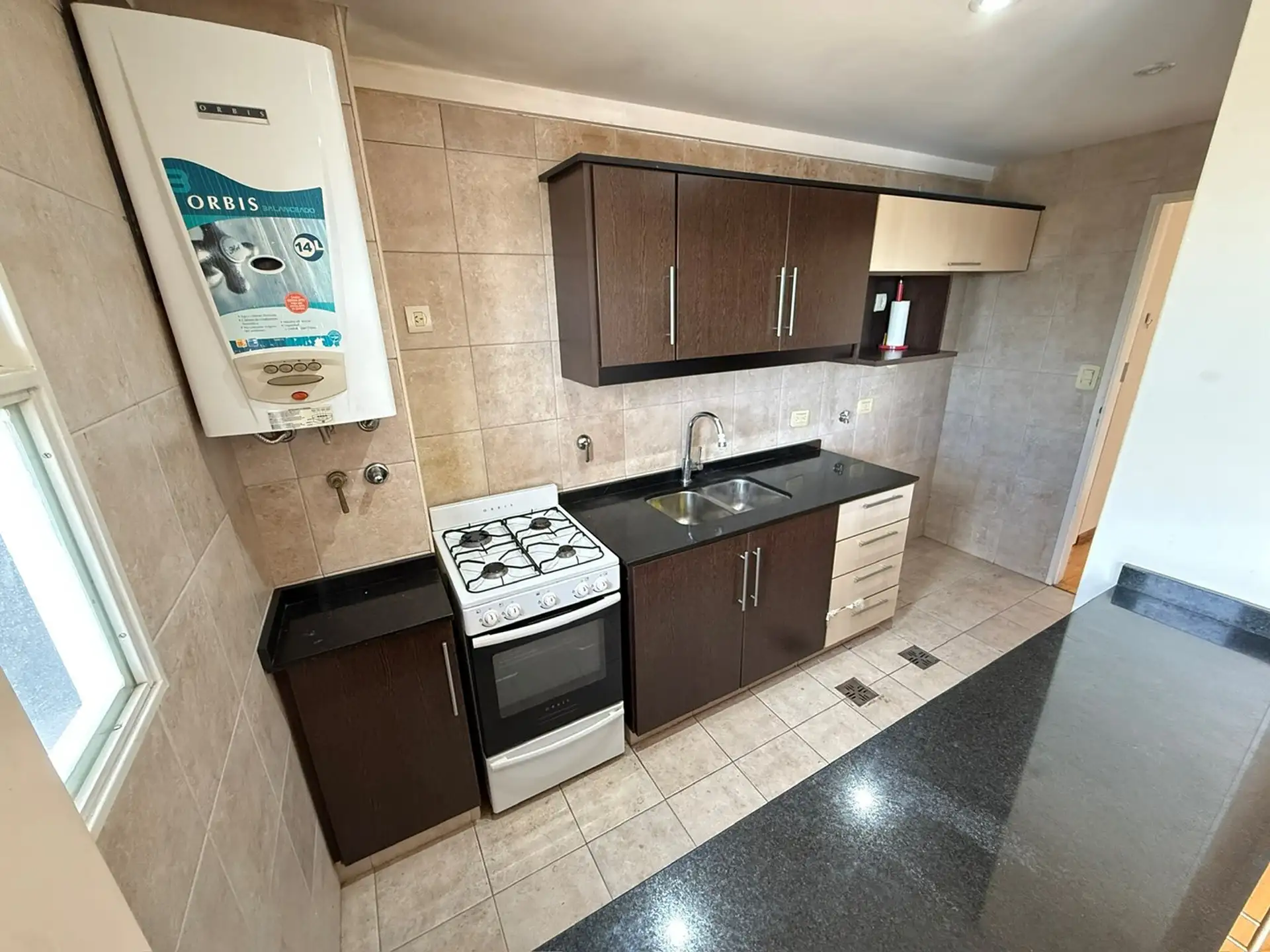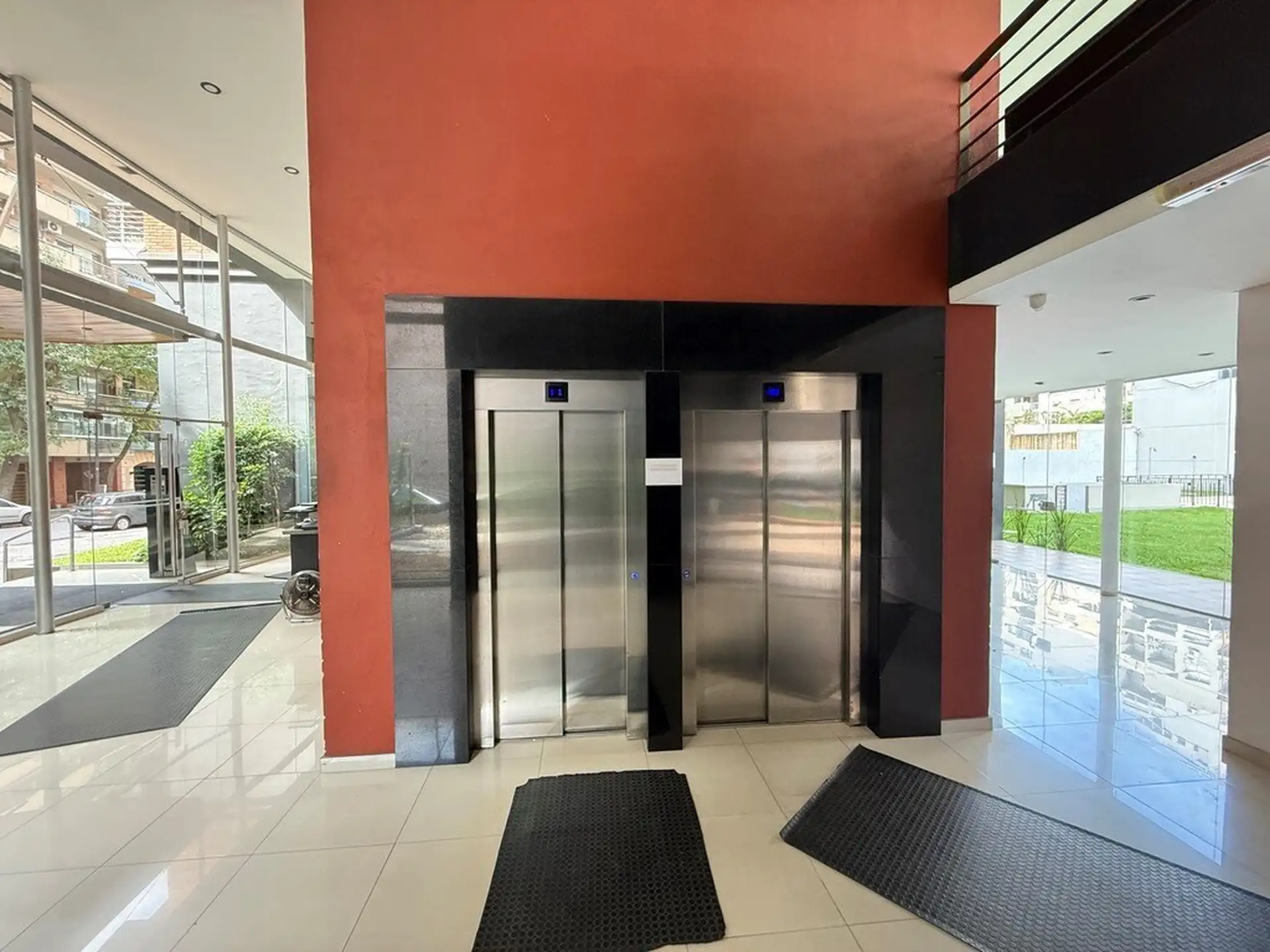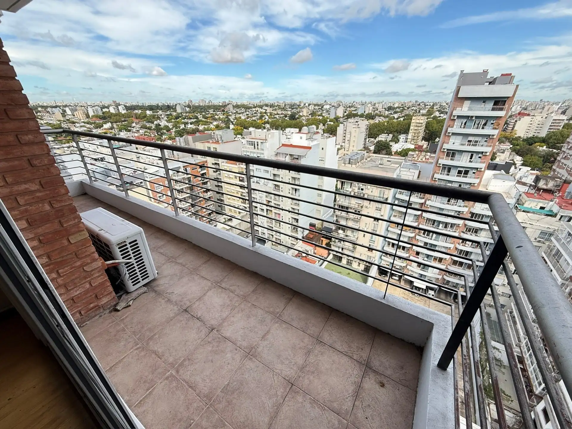 Квартира-«две комнаты» площадью с 1 спальней и закреплённым (закрытым) парковочным местом в Villa Urquiza. Окна во двор (contrafrente), западная ориентация; есть балкон, коридорная лоджия выходит на двор. В гостиной-столовой установлен сплит-кондиционер LG (холод/тепло) и есть выход на балкон; отдельная кухня с газовой плитой Orbis и предусмотрено подключение для стиральной машины, предусмотрено место для завтраков. В спальне встроенный шкаф и выход на балкон; полноценная ванная с зеркалом и тум