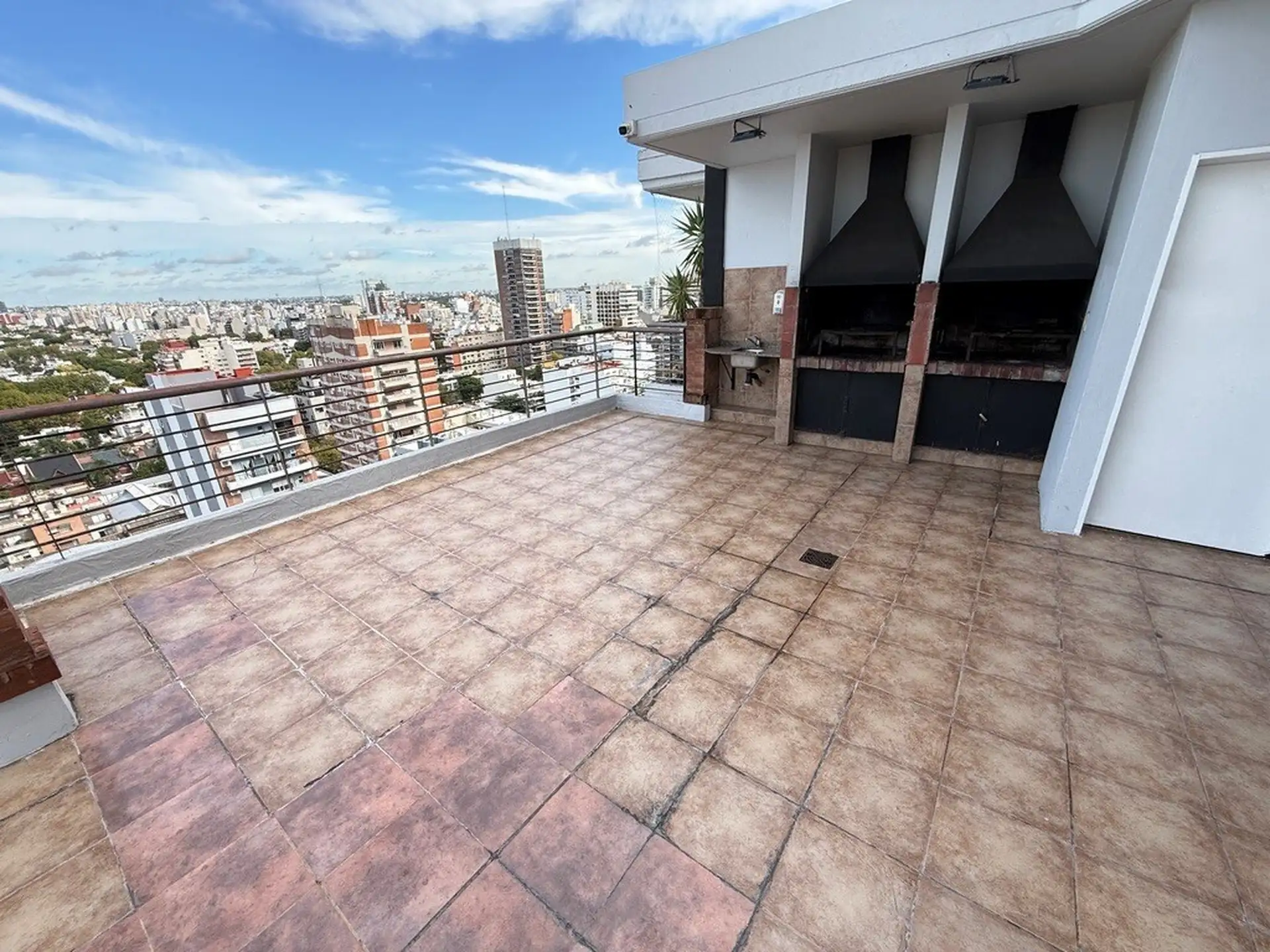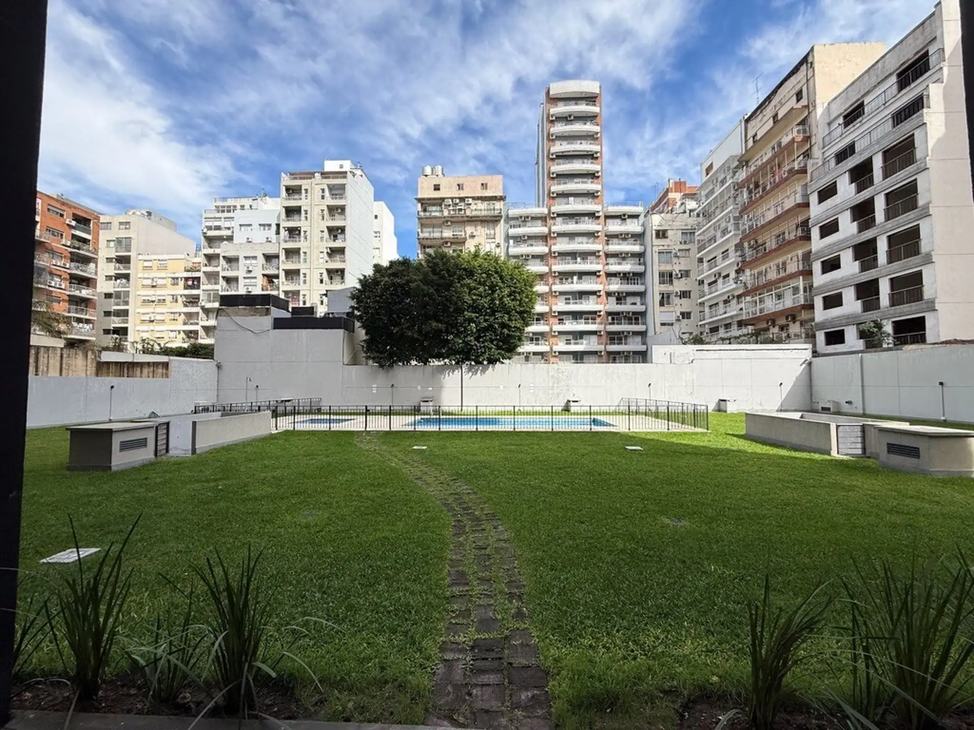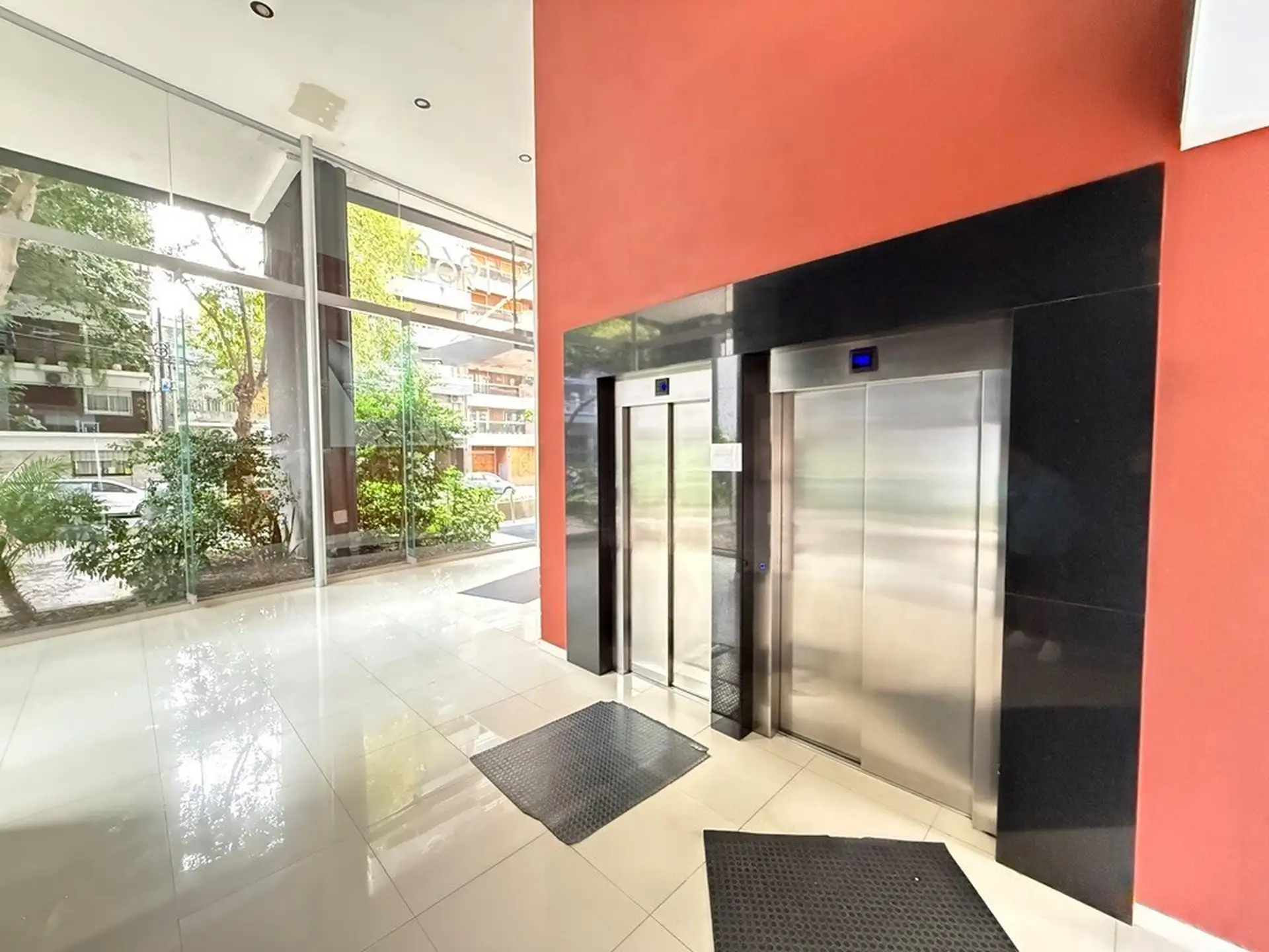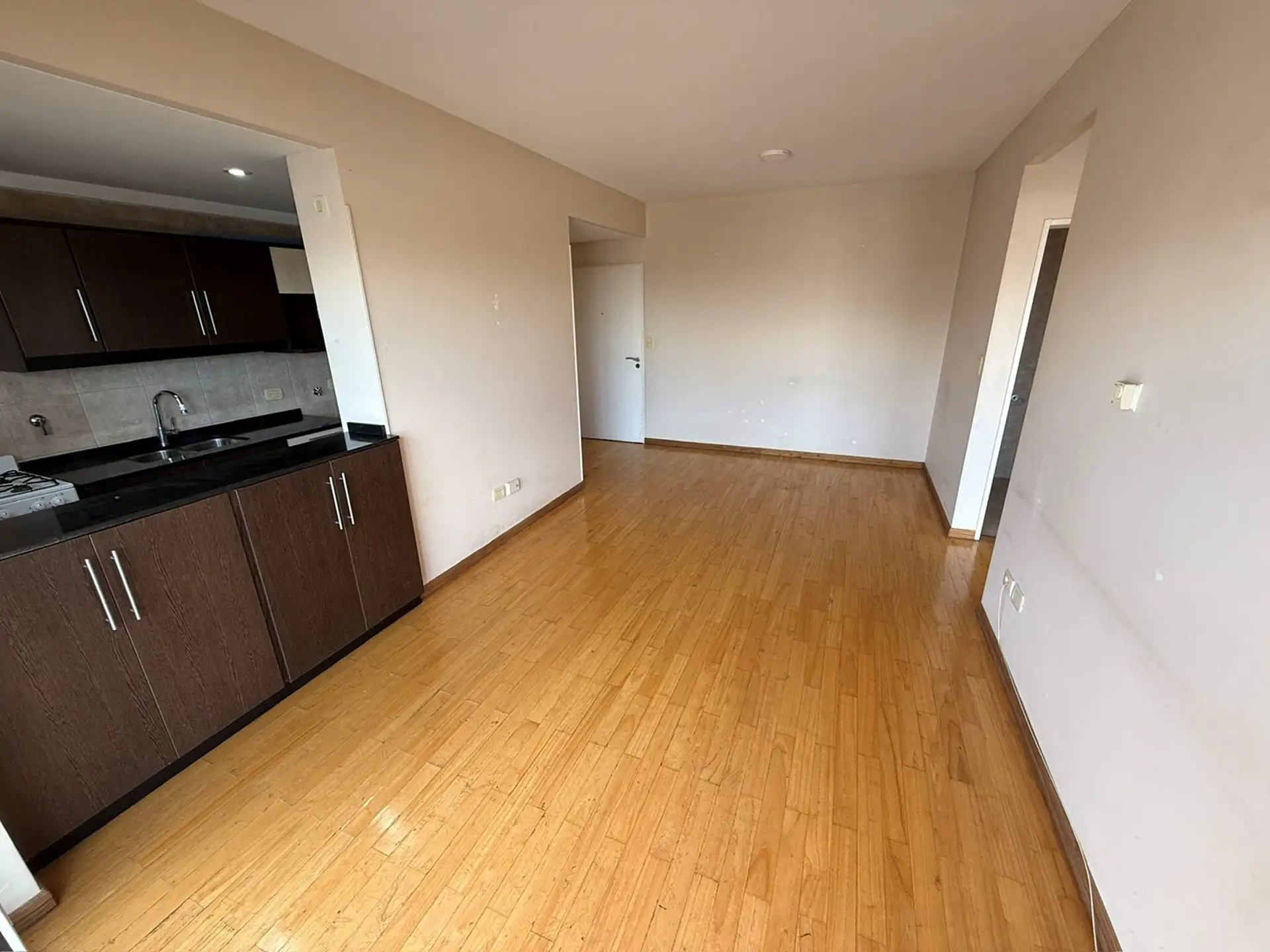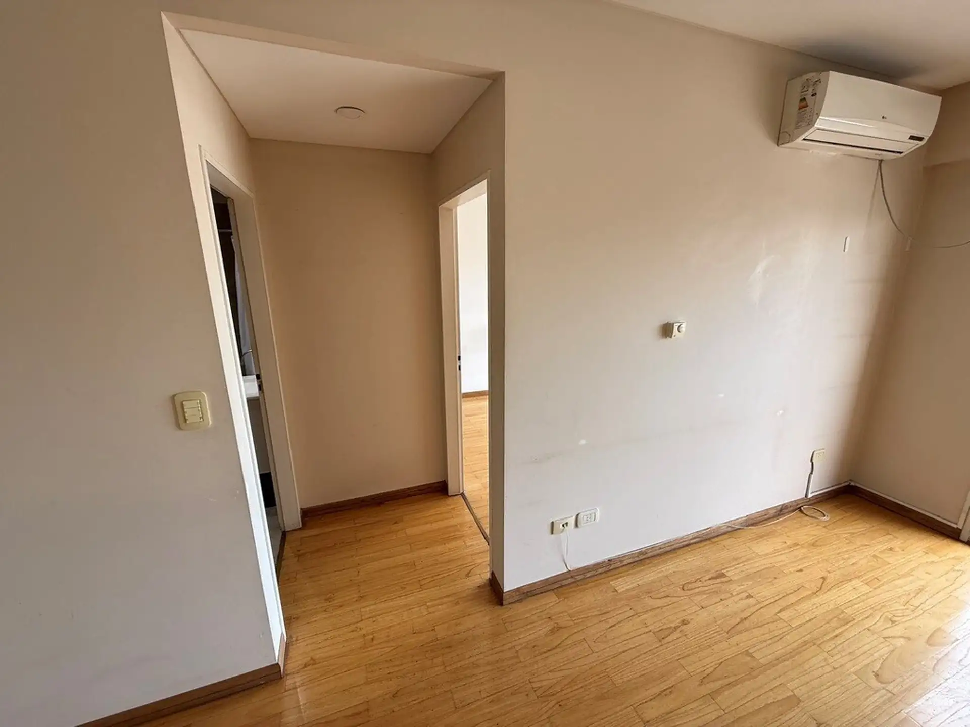 Квартира-«две комнаты» площадью с 1 спальней и закреплённым (закрытым) парковочным местом в Villa Urquiza. Окна во двор (contrafrente), западная ориентация; есть балкон, коридорная лоджия выходит на двор. В гостиной-столовой установлен сплит-кондиционер LG (холод/тепло) и есть выход на балкон; отдельная кухня с газовой плитой Orbis и предусмотрено подключение для стиральной машины, предусмотрено место для завтраков. В спальне встроенный шкаф и выход на балкон; полноценная ванная с зеркалом и тум