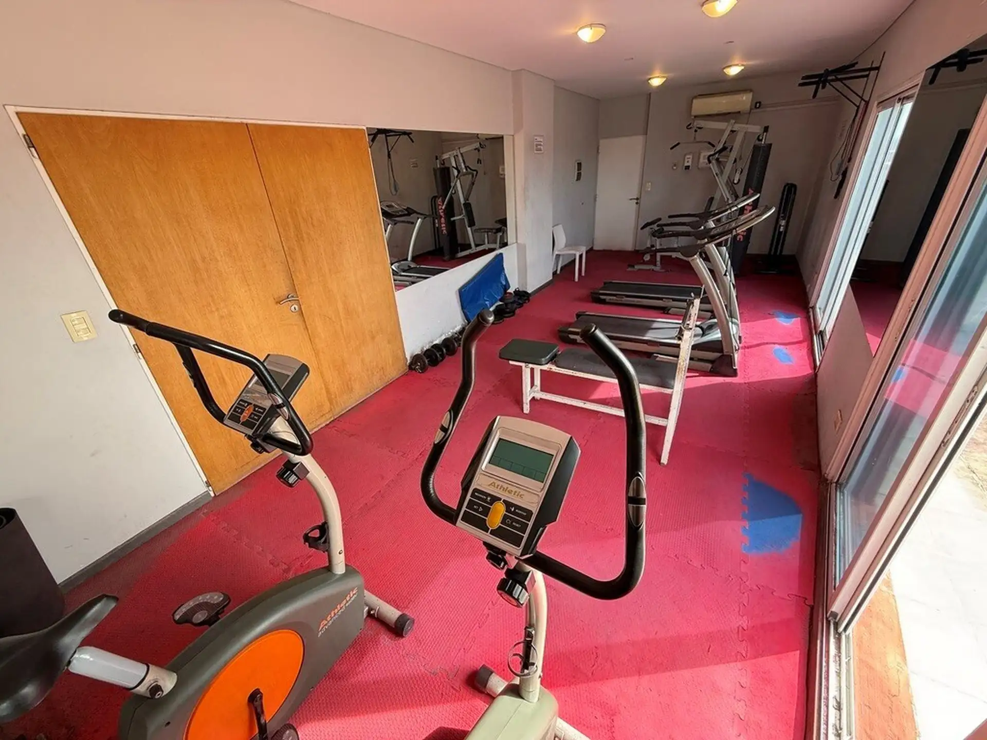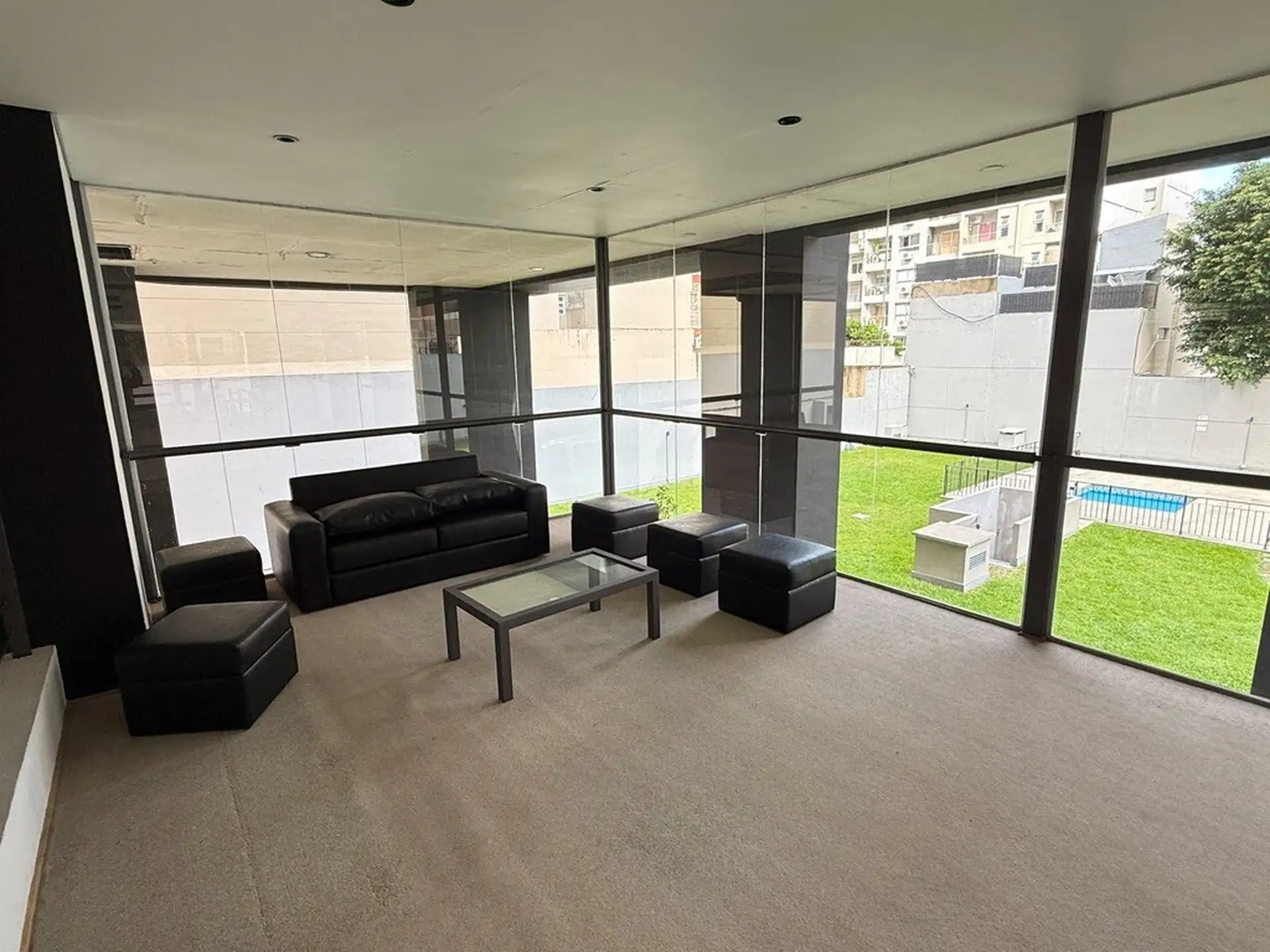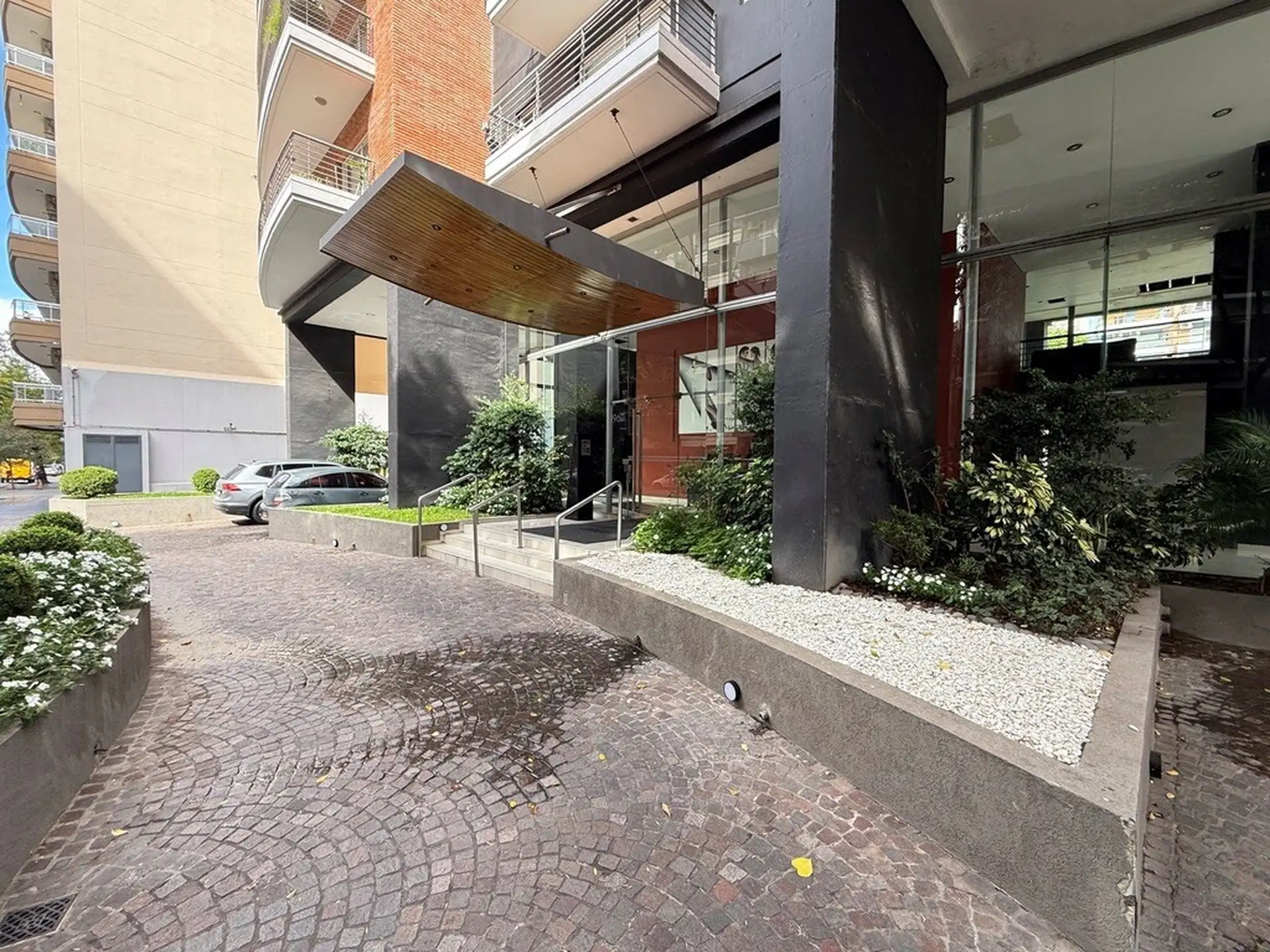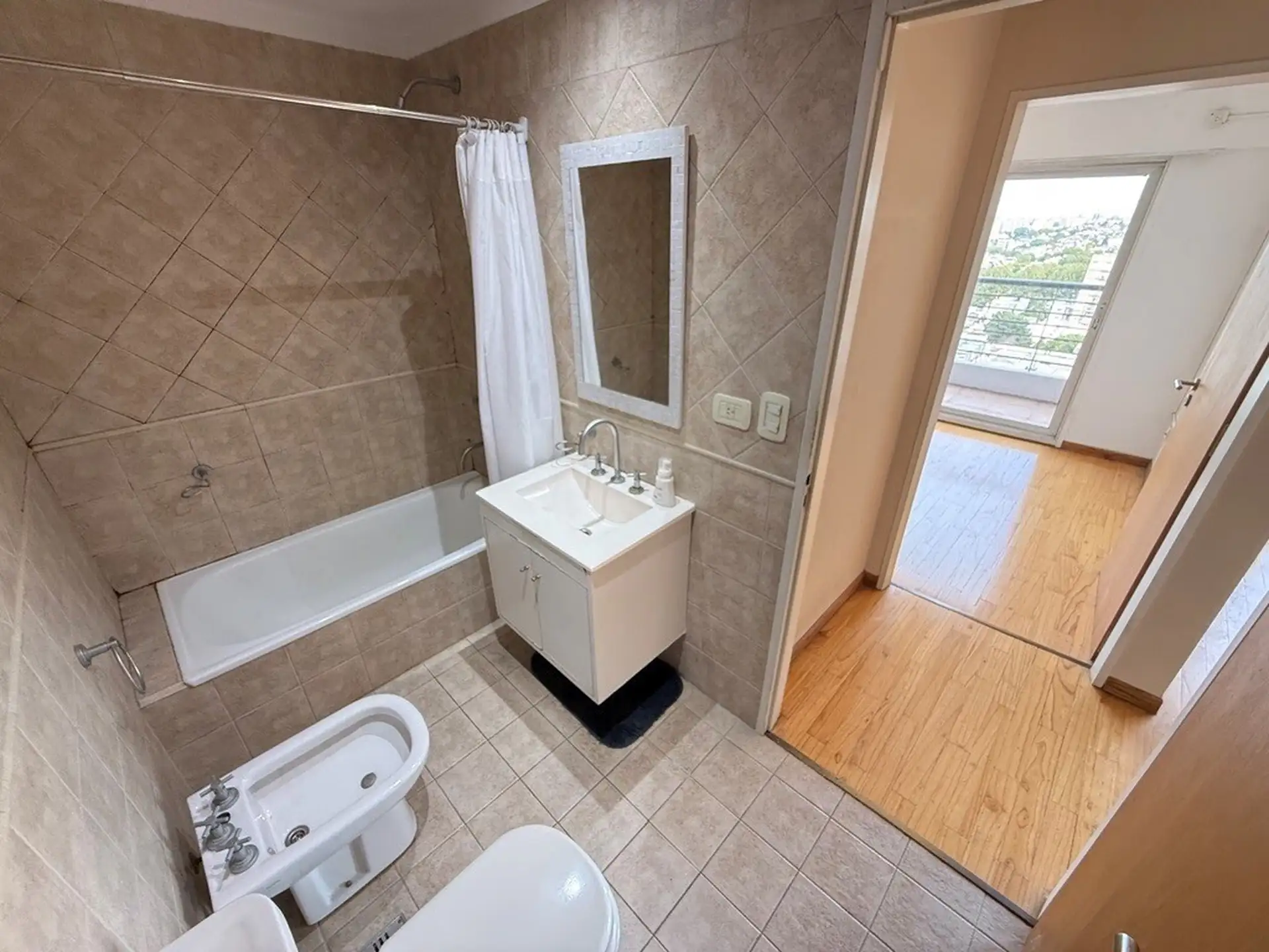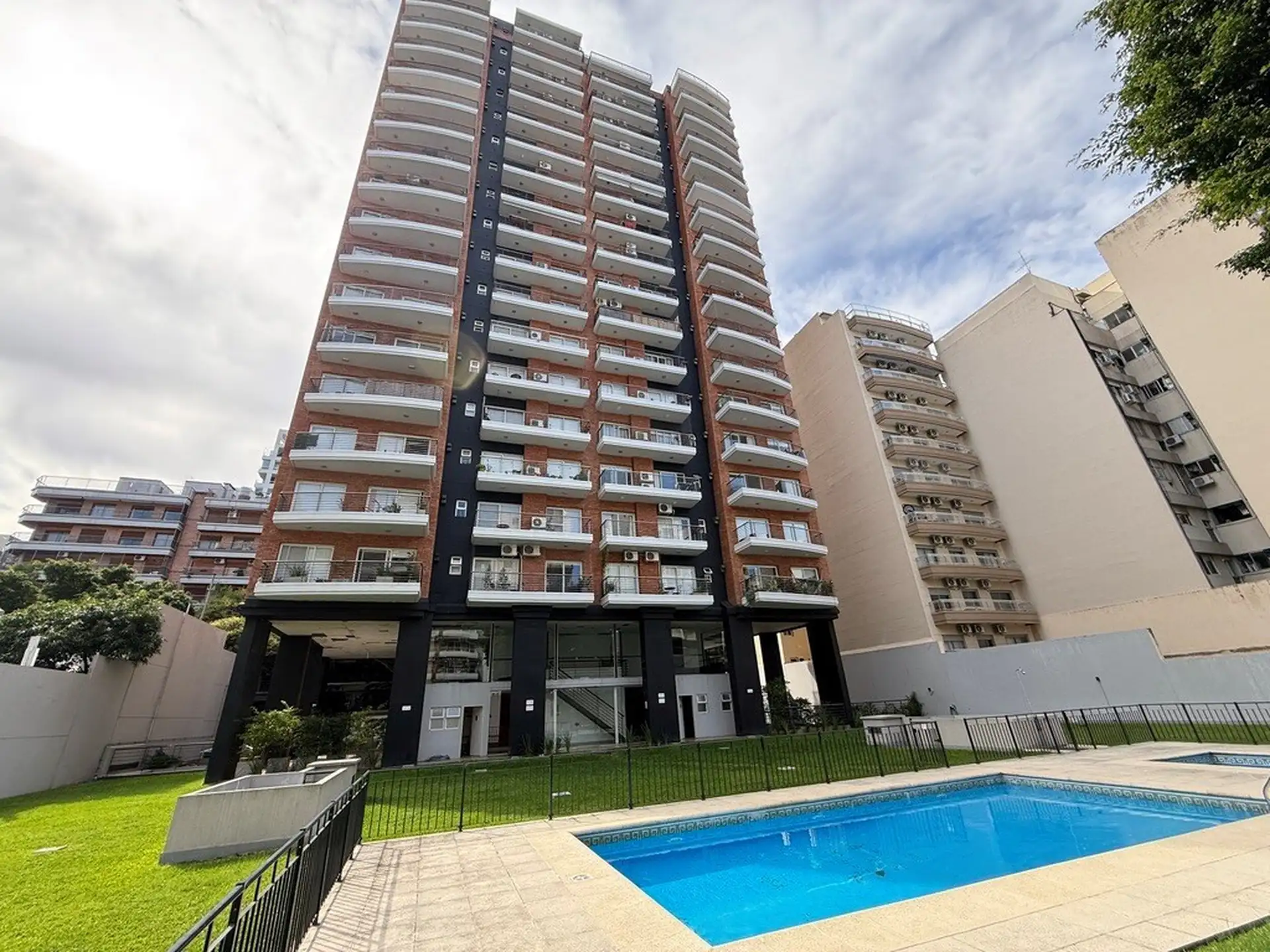 Квартира-«две комнаты» площадью с 1 спальней и закреплённым (закрытым) парковочным местом в Villa Urquiza. Окна во двор (contrafrente), западная ориентация; есть балкон, коридорная лоджия выходит на двор. В гостиной-столовой установлен сплит-кондиционер LG (холод/тепло) и есть выход на балкон; отдельная кухня с газовой плитой Orbis и предусмотрено подключение для стиральной машины, предусмотрено место для завтраков. В спальне встроенный шкаф и выход на балкон; полноценная ванная с зеркалом и тум