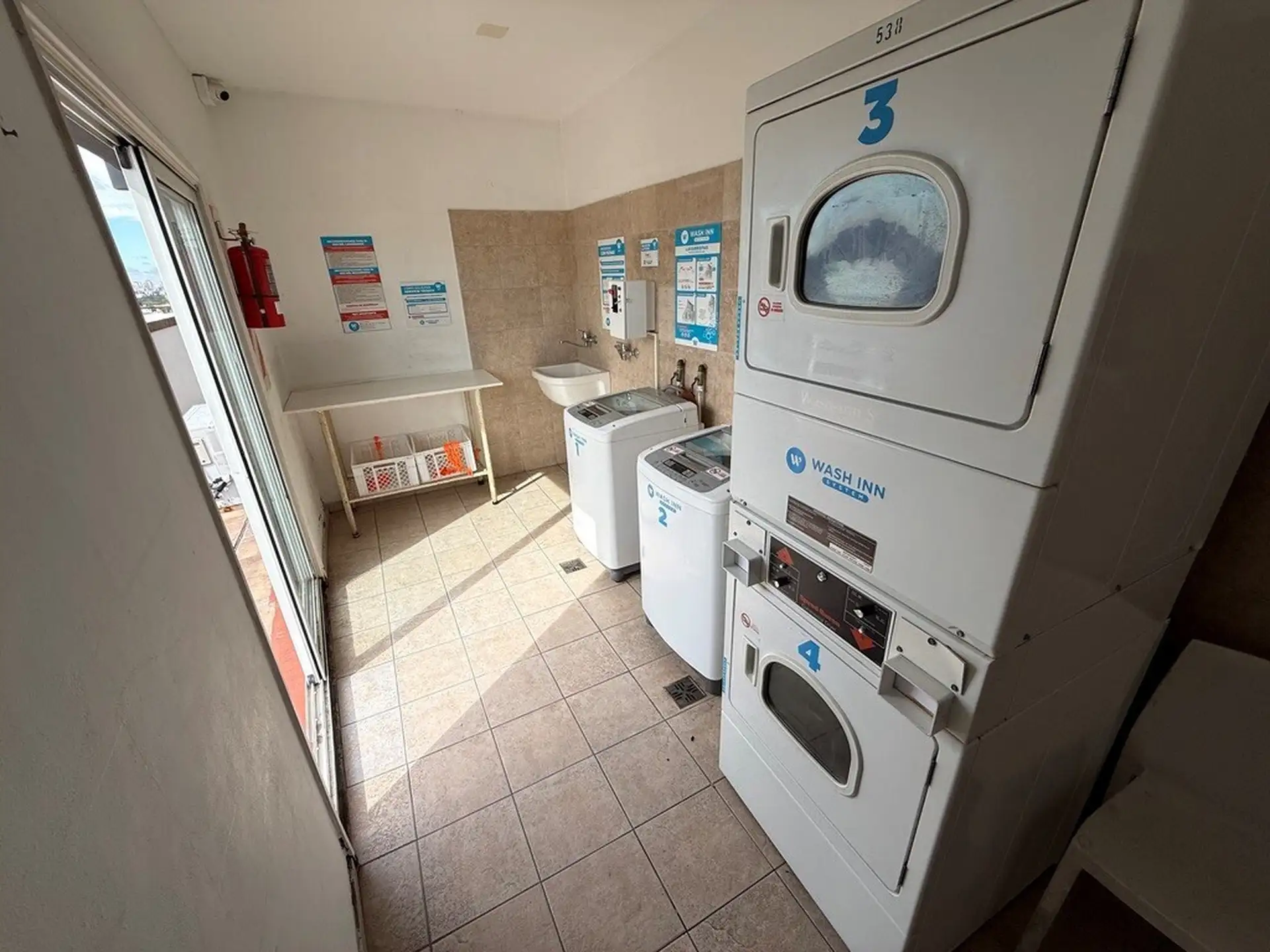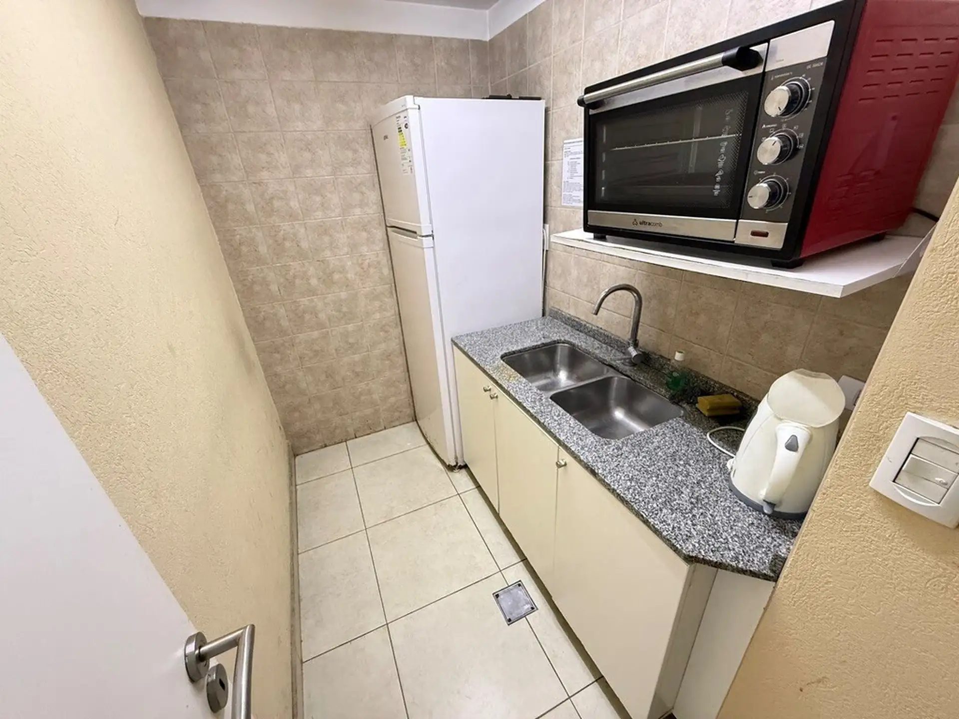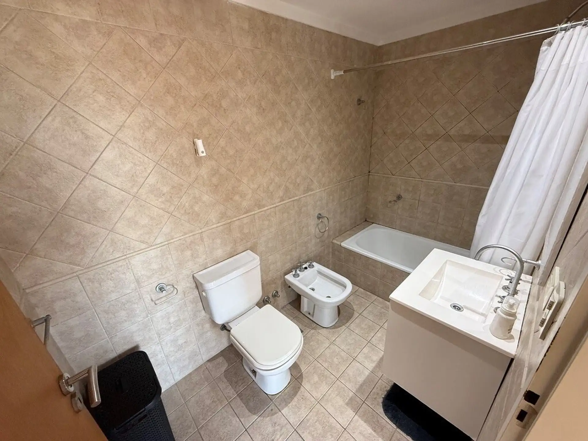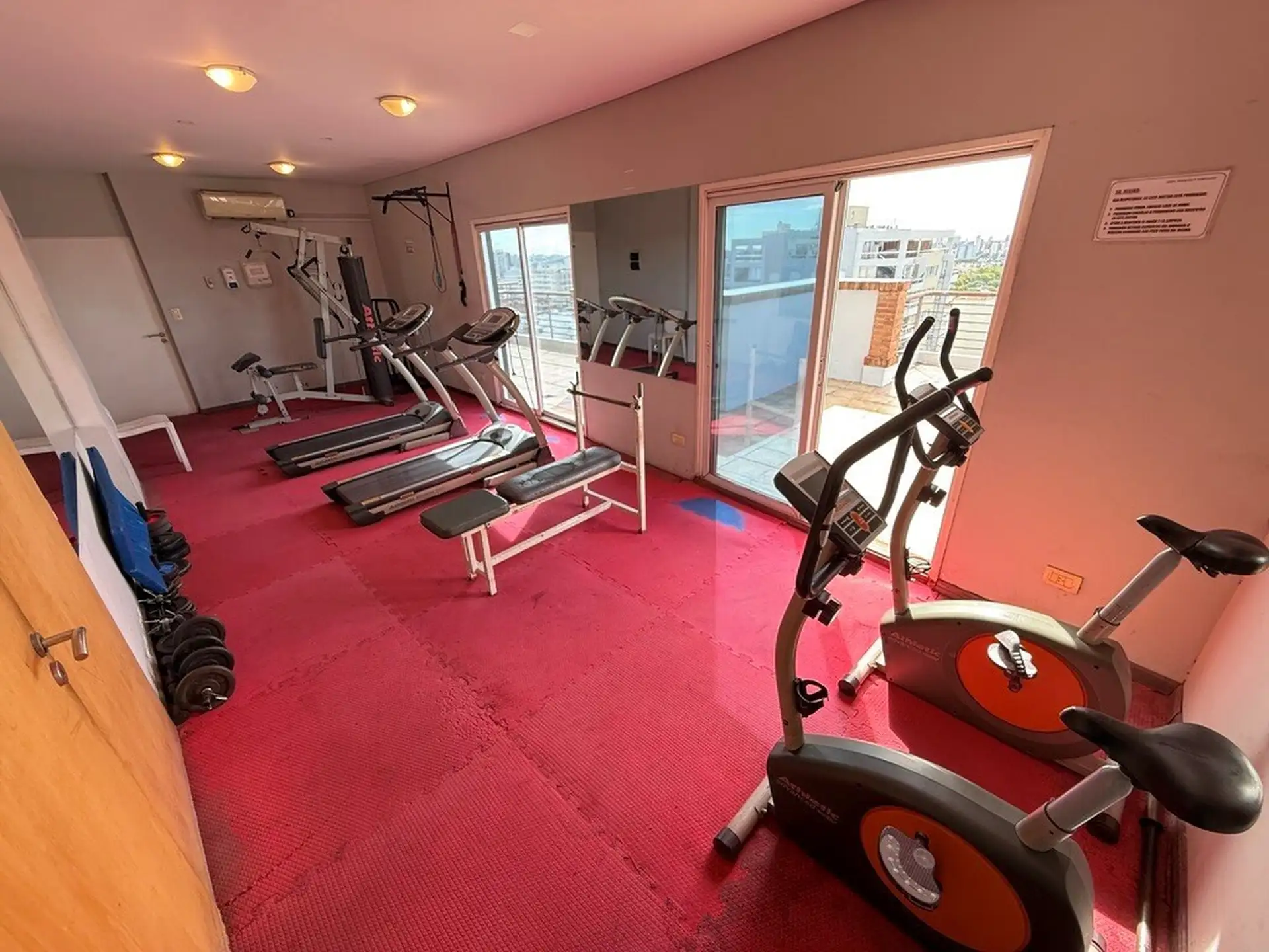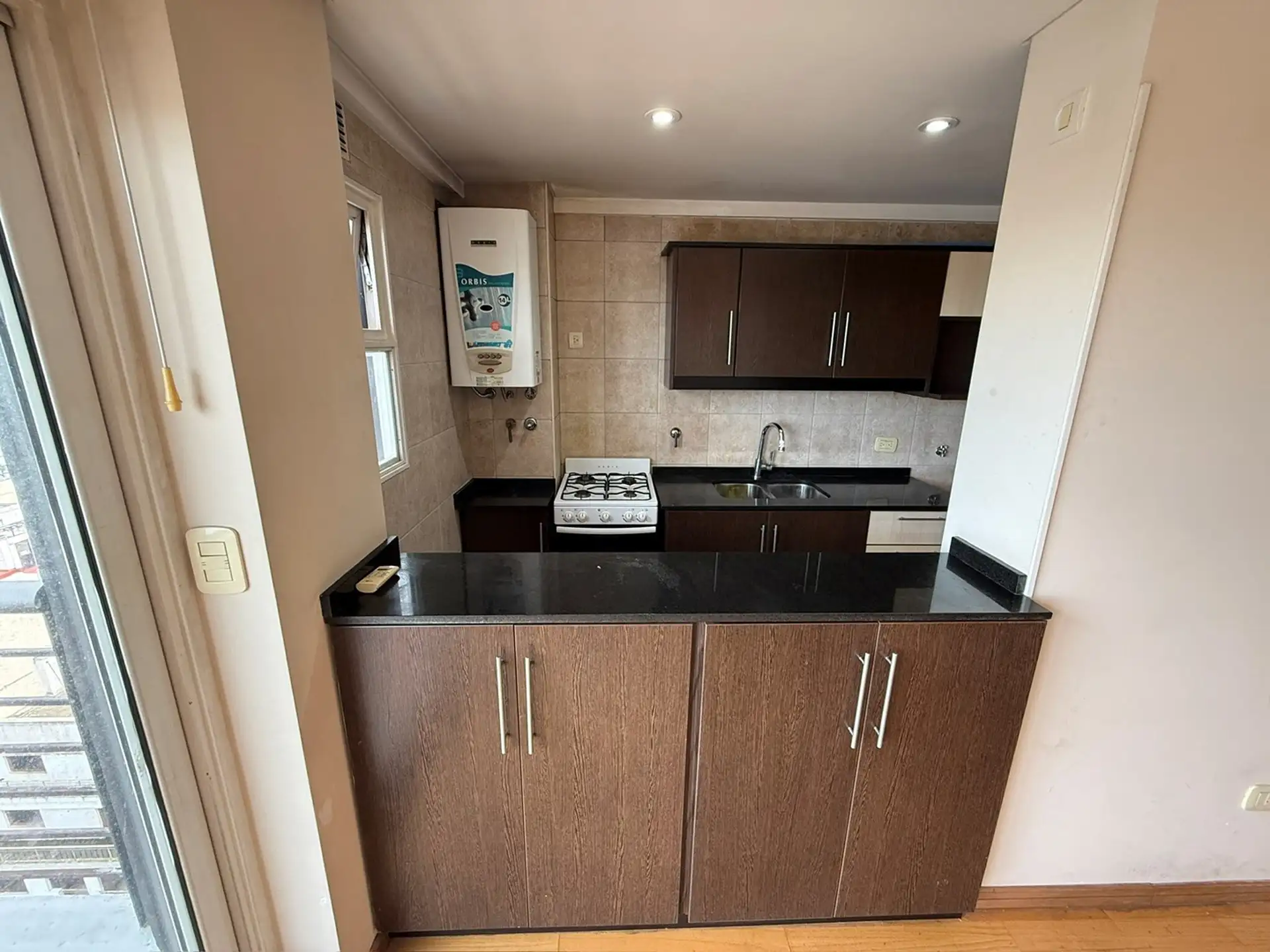 Квартира-«две комнаты» площадью с 1 спальней и закреплённым (закрытым) парковочным местом в Villa Urquiza. Окна во двор (contrafrente), западная ориентация; есть балкон, коридорная лоджия выходит на двор. В гостиной-столовой установлен сплит-кондиционер LG (холод/тепло) и есть выход на балкон; отдельная кухня с газовой плитой Orbis и предусмотрено подключение для стиральной машины, предусмотрено место для завтраков. В спальне встроенный шкаф и выход на балкон; полноценная ванная с зеркалом и тум