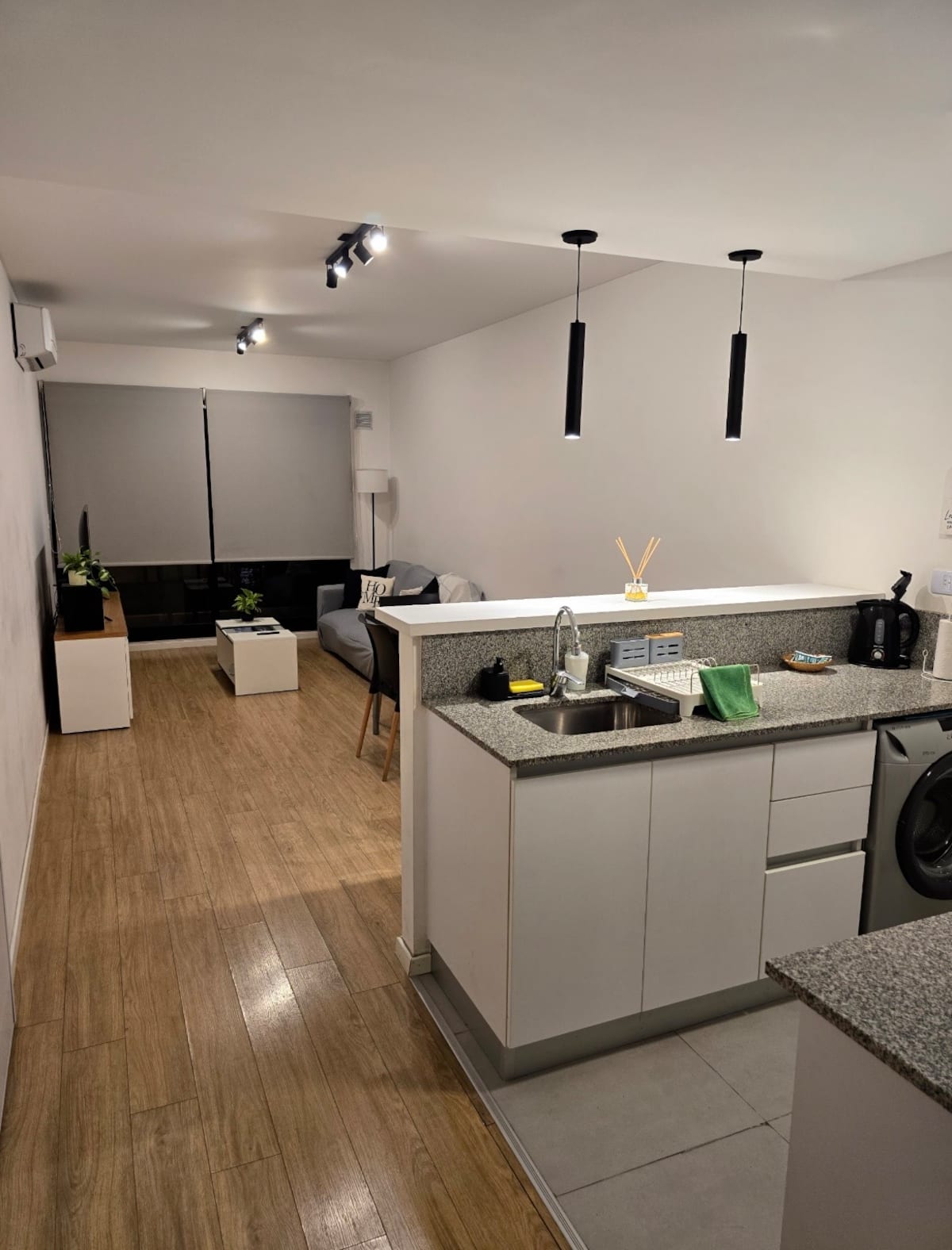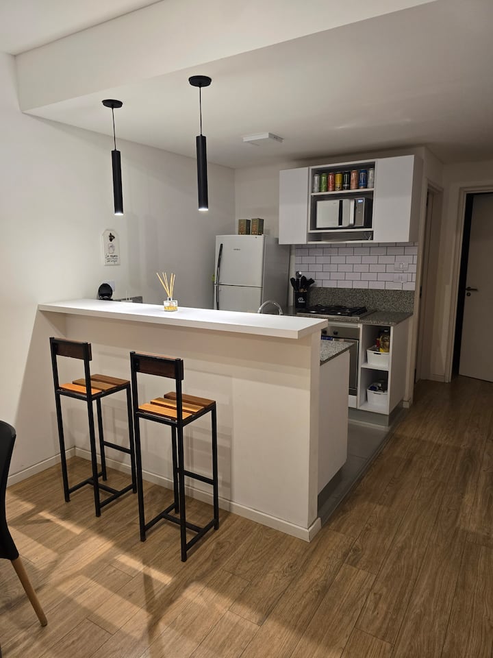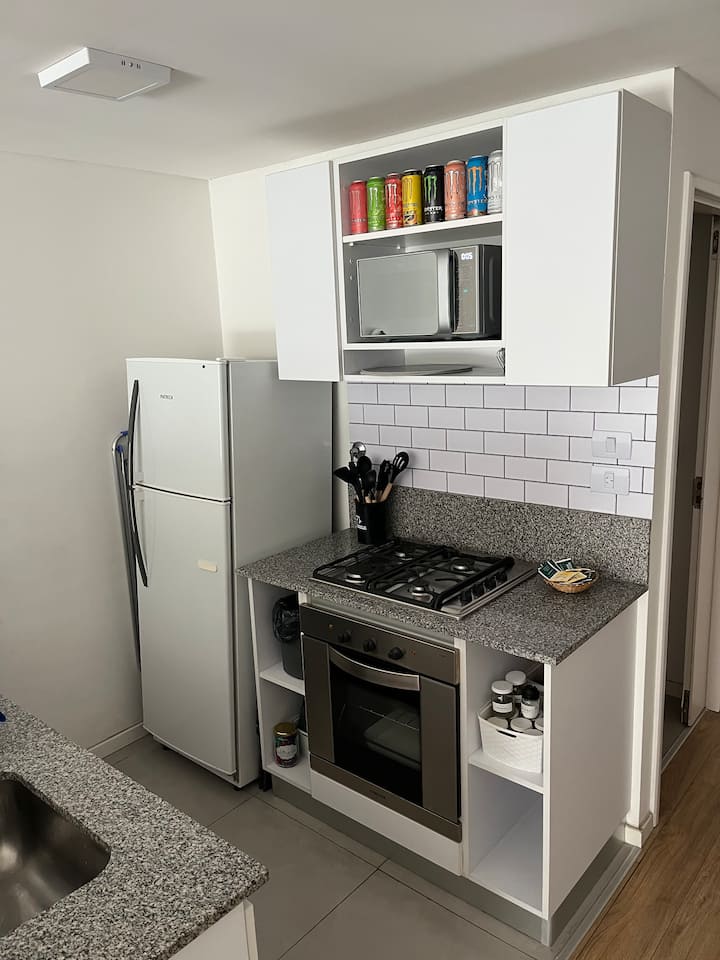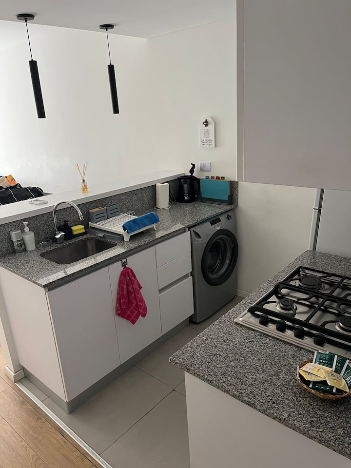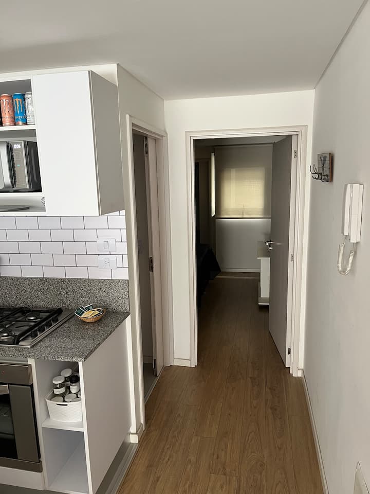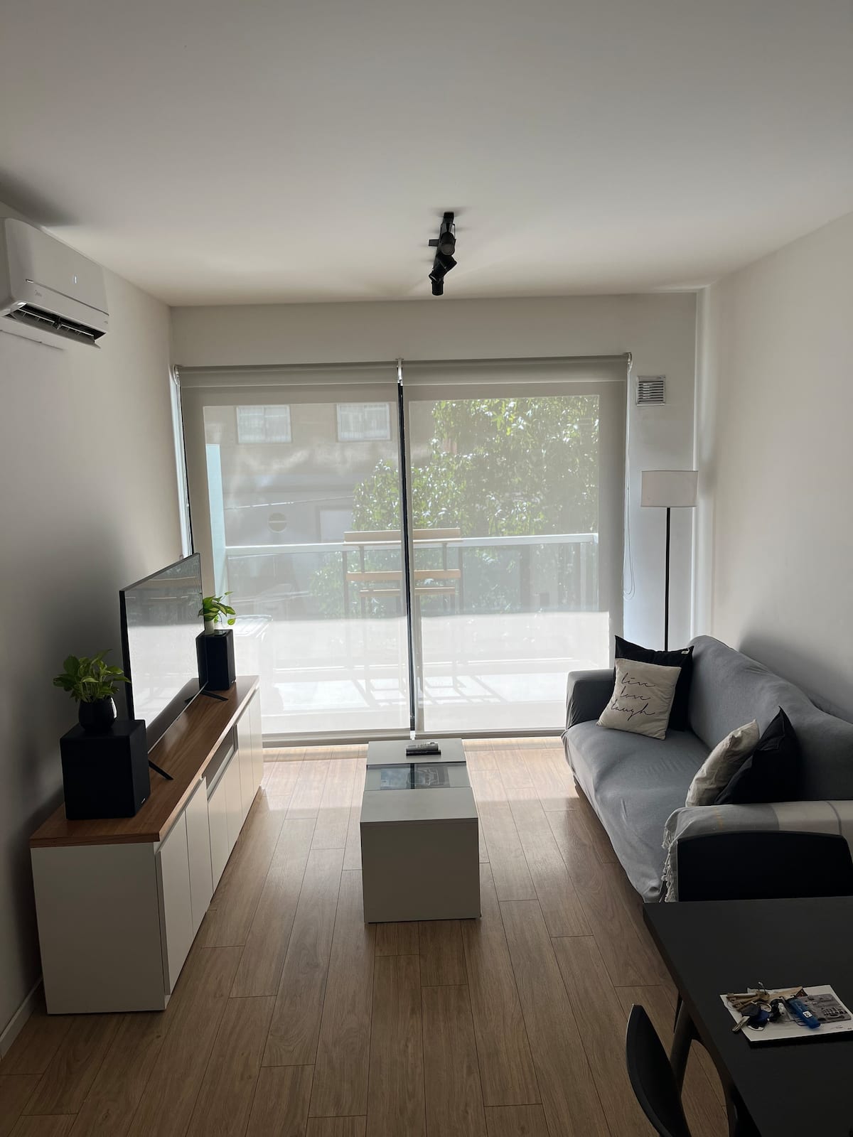 Квартира-две комнаты в Villa Urquiza. Спальня с собственной ванной комнатой и гардеробной, отдельный туалет. Кухня объединена с гостиной; есть балкон. На террасе с зоной гриля предусмотрены душевые. Установлены 2 кондиционера, в квартире есть Wi-Fi и телевизор, а также стиральная машина, холодильник и микроволновая печь.