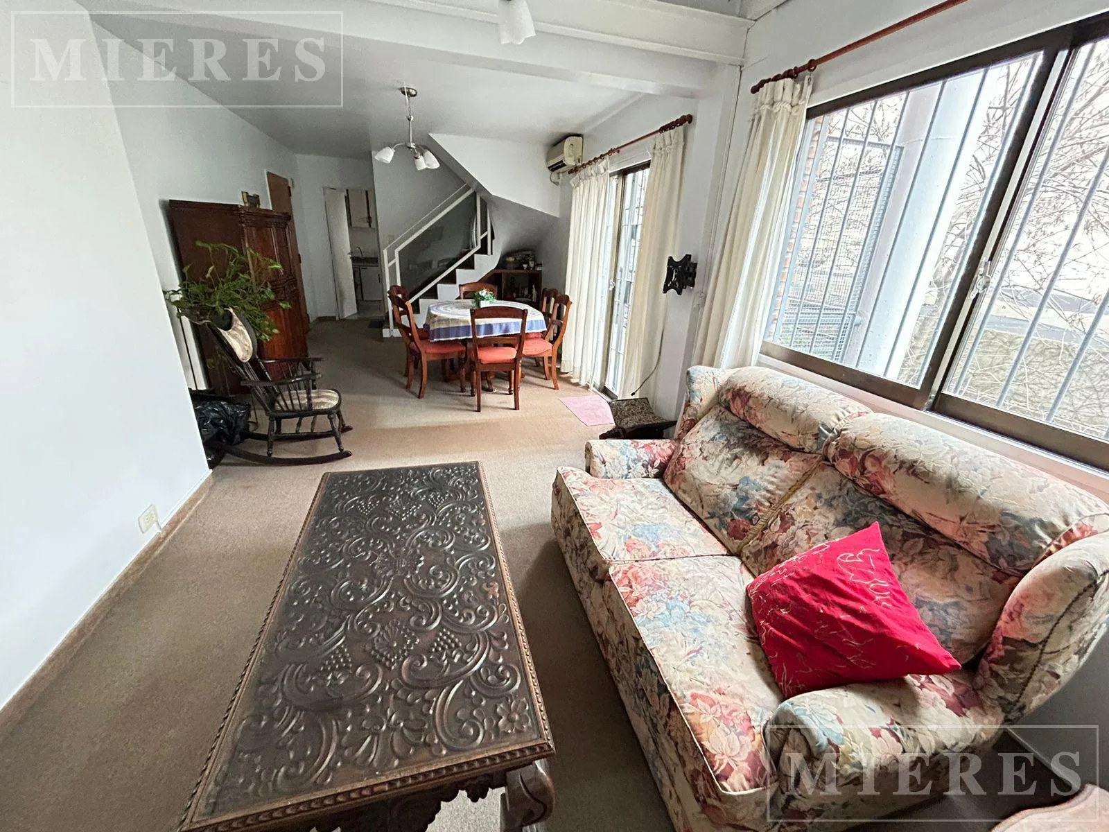 Квартира 3 ambientes в формате duplex в центре San Isidro, на 1-м этаже. На первом уровне: гостиная-столовая с выходом на балкон, гостевой туалет, отдельная кухня с нижними шкафами, навесными шкафами и местом для стиральной машины. На втором уровне: 2 спальни, главная со встроенной гардеробной, общая ванная комната. Есть (непокрытое) парковочное место на первом уровне. В квартире ковровое покрытие пола под настилом, отопление через печь с отводом наружу и кондиционеры: только холод в гостиной и