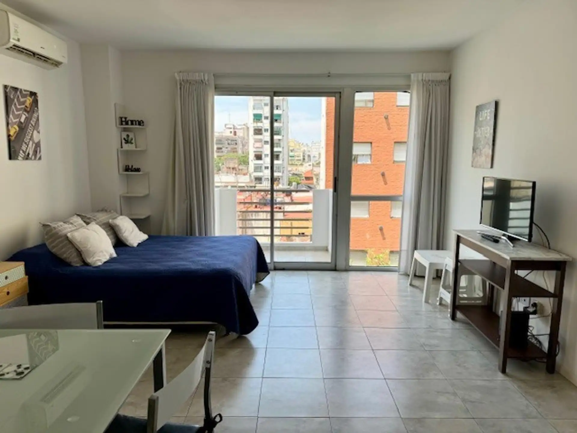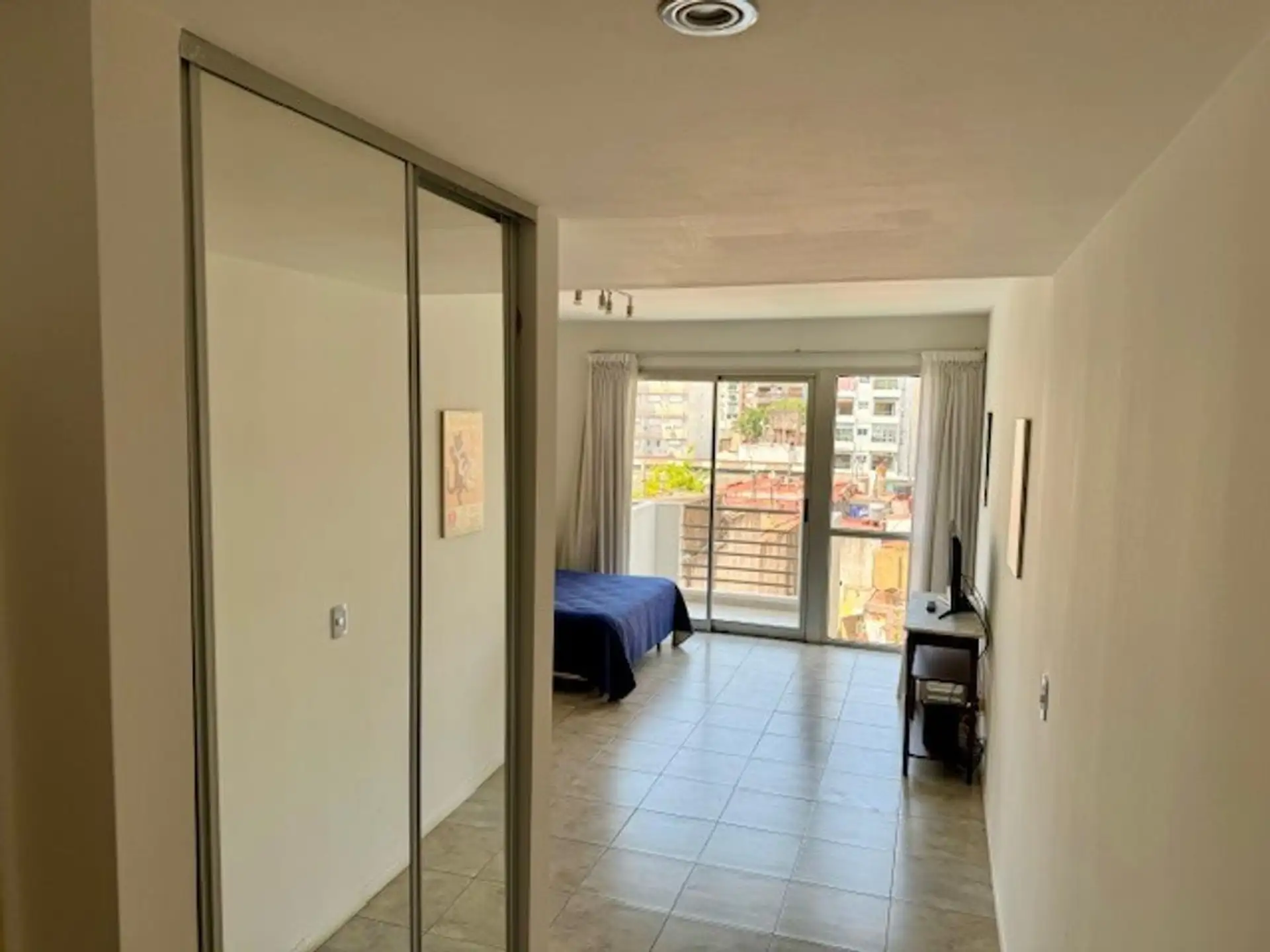 Квартира-студия в Almagro, рядом с Av. Diaz Vélez и Plaza Almagro. В квартире есть балкон с открытым видом, санузел с полной ванной, двуспальная кровать queen size, телевизор Smart HD 32", кабельное телевидение, Netflix, Prime Video и Wi‑Fi 100 мегабит. Кухня электрическая с микроволновой печью. Арендная плата составляет $690.000 в месяц плюс коммунальные платежи здания, электроэнергия и ABL. Договор на 24 месяца с квартальными увеличениями по индексу IPC, без домашних животных, только для взрос