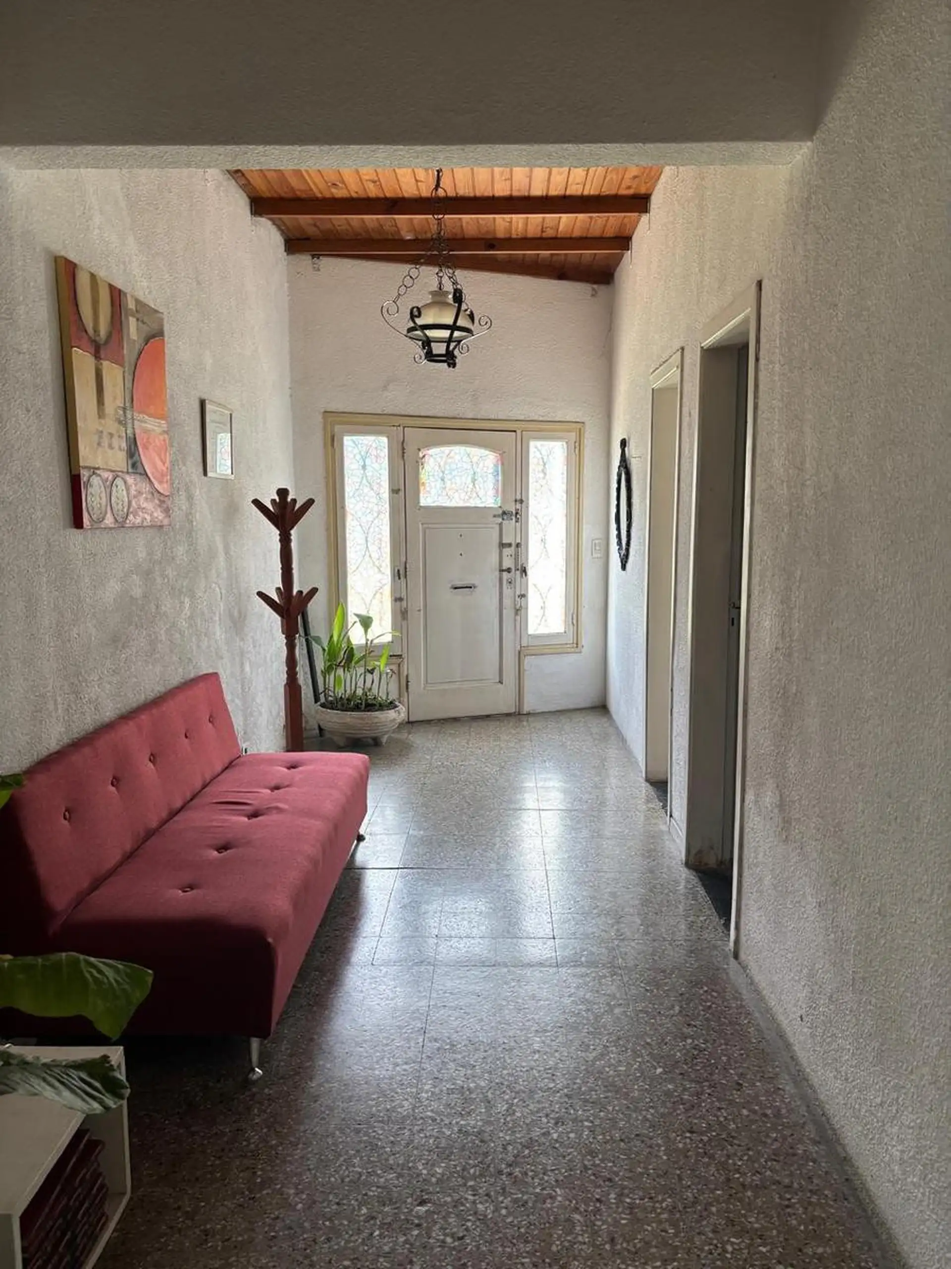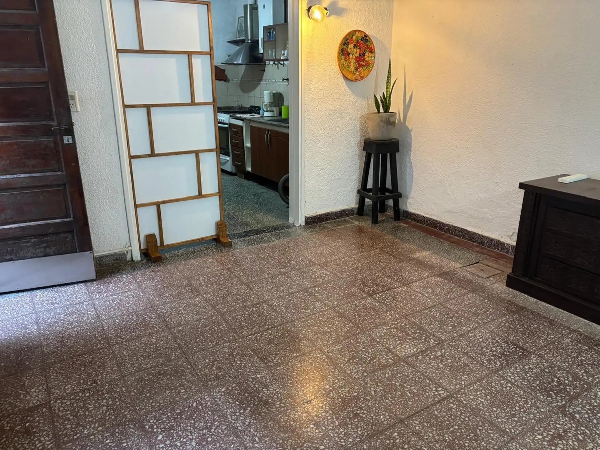 Дом на улицу в Wilde, Avellaneda. Планировка на одном этаже: гостиная, 2 спальни, кухня-гостиная. Есть небольшой внутренний двор с зоной для прачечной. В объявлении указана хорошая естественная освещённость. Коммунальные платежи здания (expensas) отсутствуют; расходы по услугам не включены. Площадь указана ориентировочно, изображения носят иллюстративный характер.