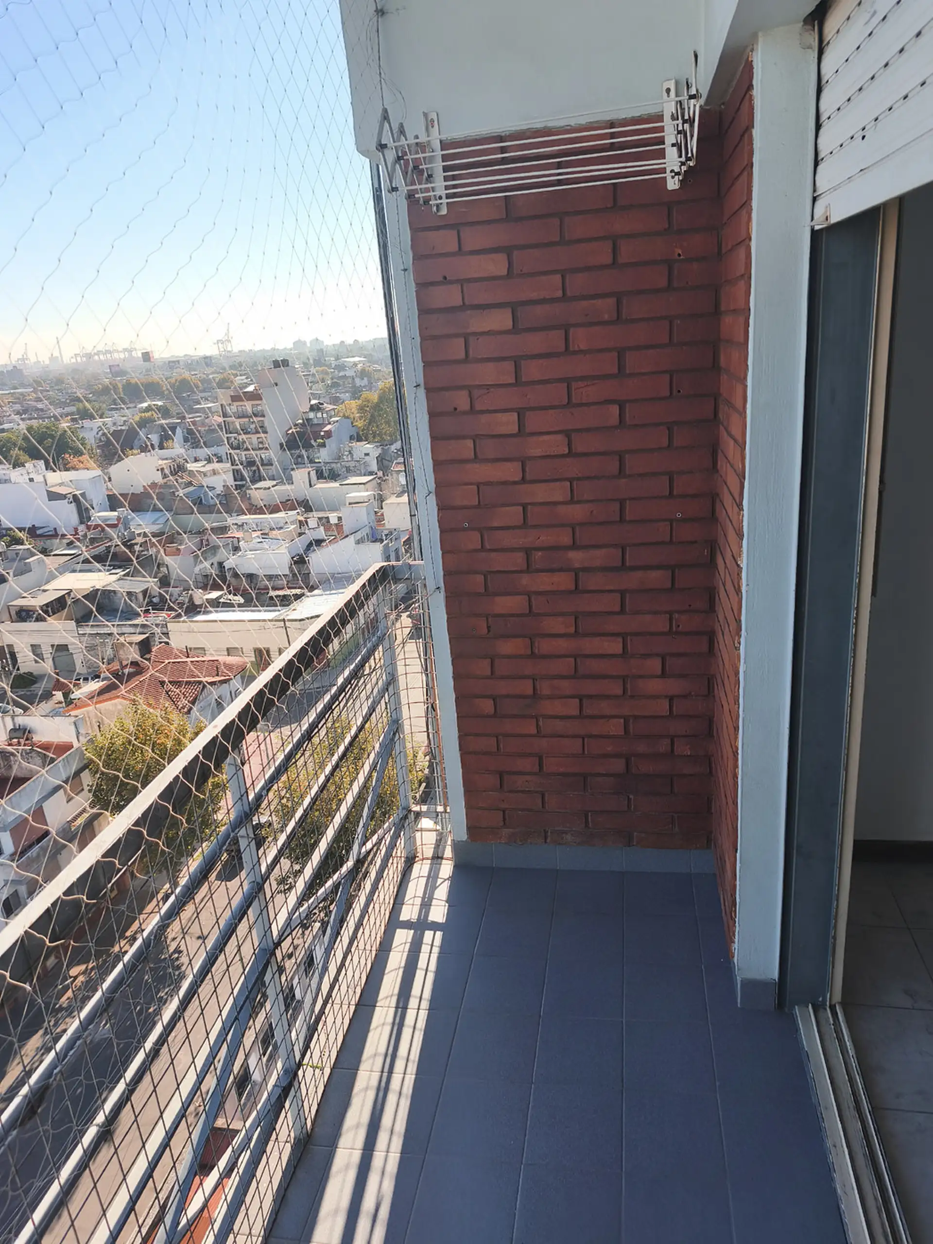 Квартира в Avellaneda, 3 комнаты, 9-й этаж (помещение 9 «A»), окна на улицу, с балконом и (закреплённым) парковочным местом. Гостиная-столовая 5,60 x 3 m с выходом на балкон; балкон 3 x 1,50 m. Кухня 4,10 x 1,50 m с встроенной прачечной, две спальни 3,60 x 3 m и 3,60 x 2,70 m с встроенными шкафами, ванная 1,50 x 2,50 m с ванной.
