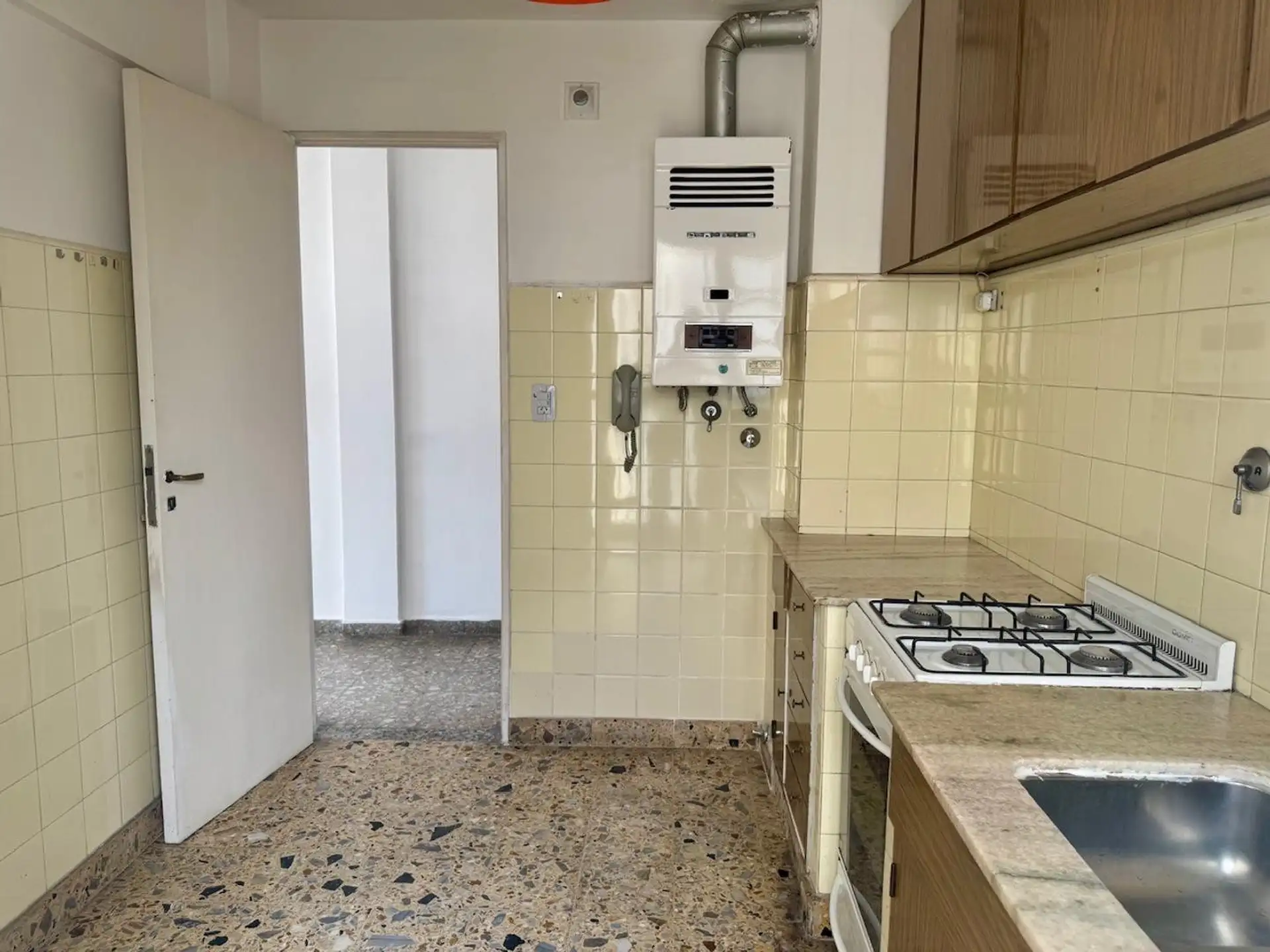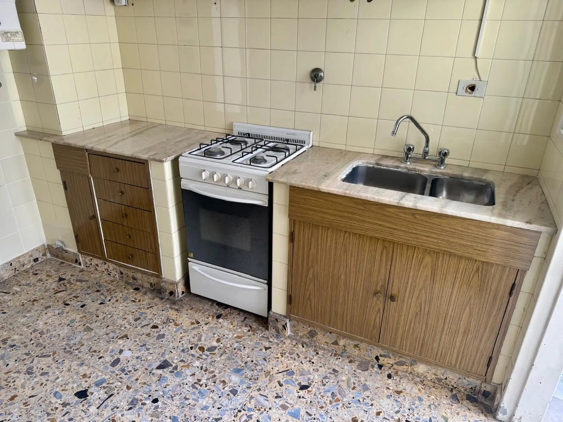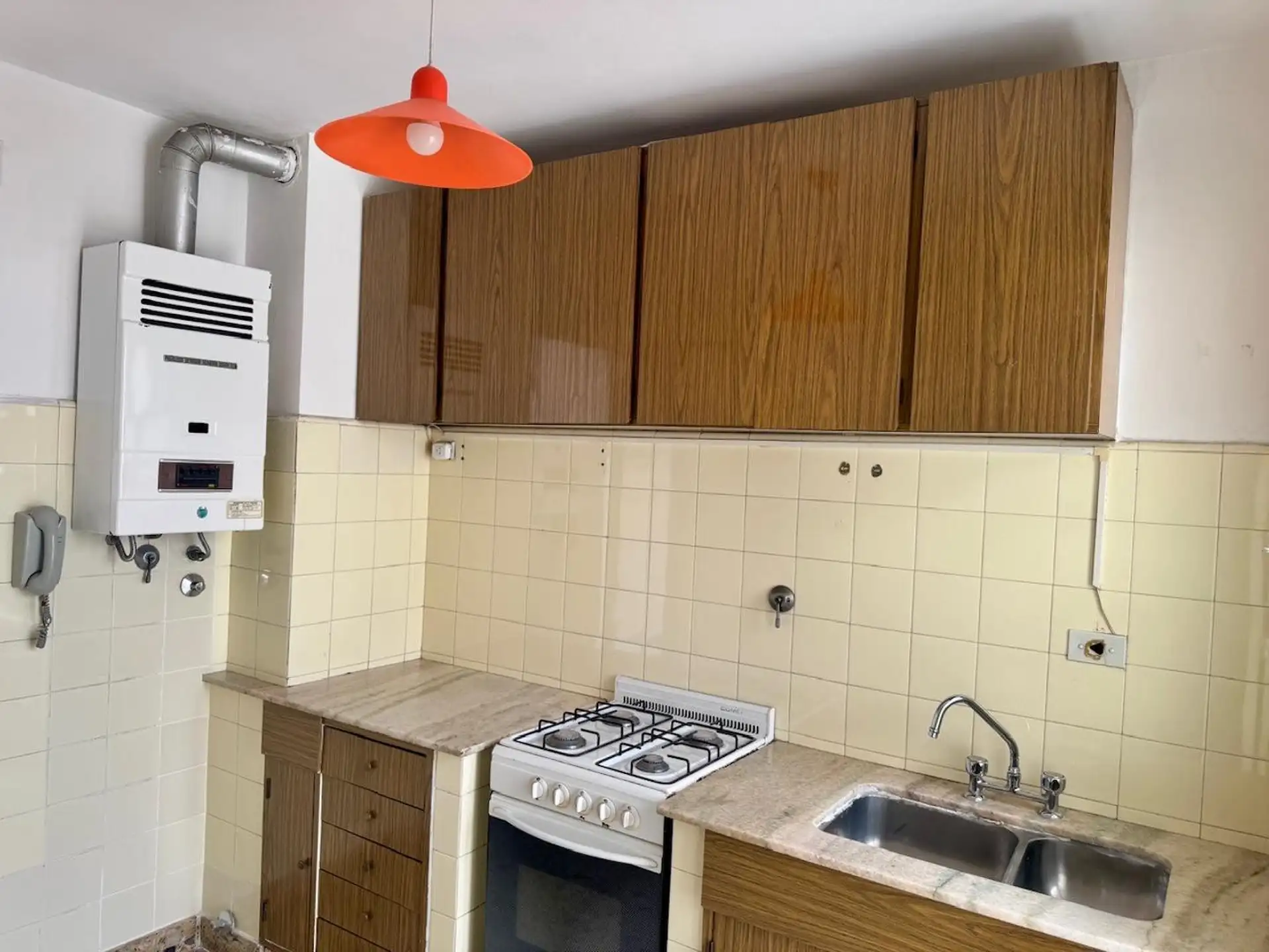 Квартира в Barracas с окнами на улицу (на фасад) и балконом corrido. Три комнаты: гостиная-столовая и кухня, 2 спальни; в квартире есть кладовая в кухне и встроенные шкафы. Отделка: мрамор и паркет, входной холл, раздельный холл-проход к спальням. Кухня оборудована газовой плитой, есть нижние тумбы и верхние шкафы, предусмотрено подключение для стиральной машины в зоне с крытым “lavadero” 1,50 x 1. Ванная комната 1,90 x 1,50 с естественным светом и вентиляцией. Условия аренды: контракт на 2 года