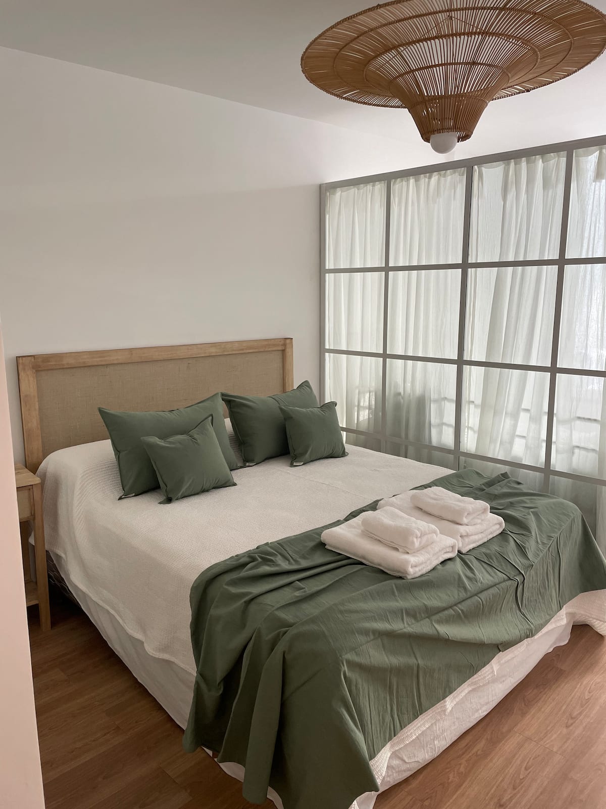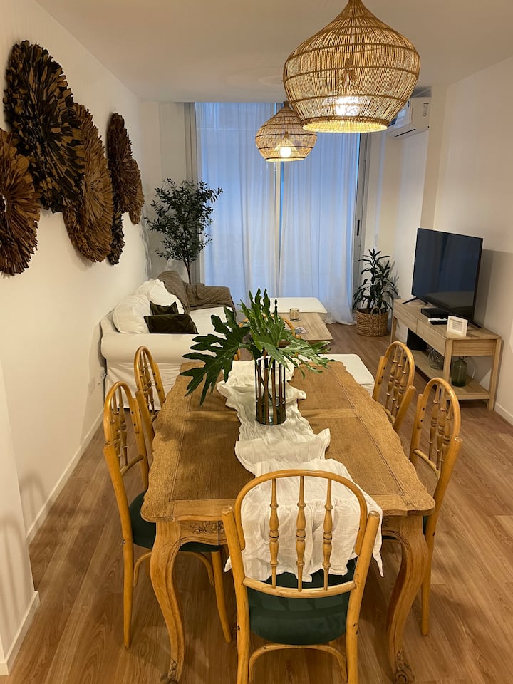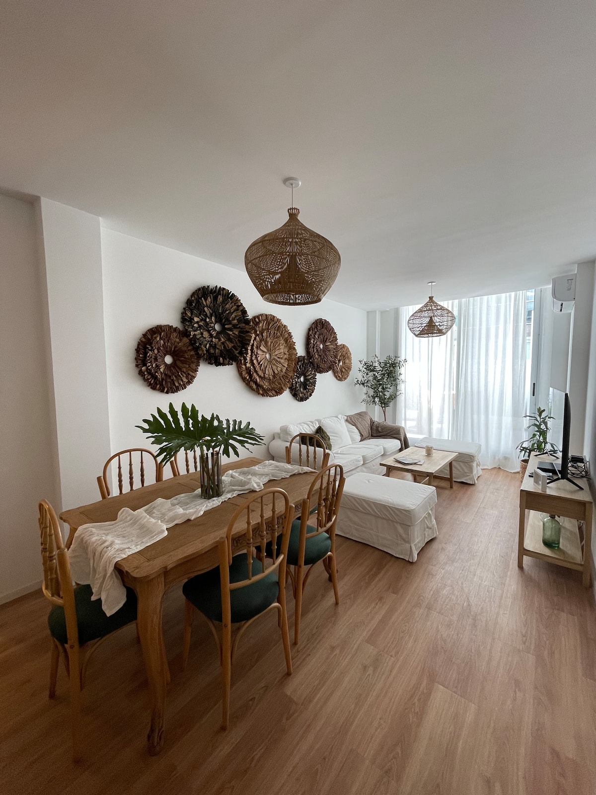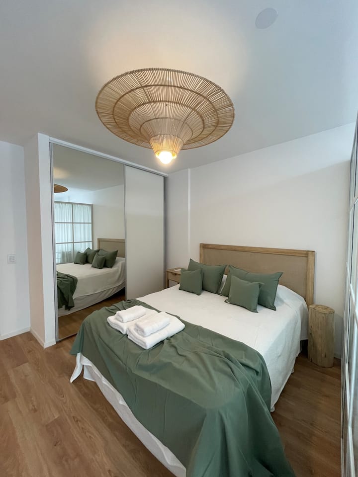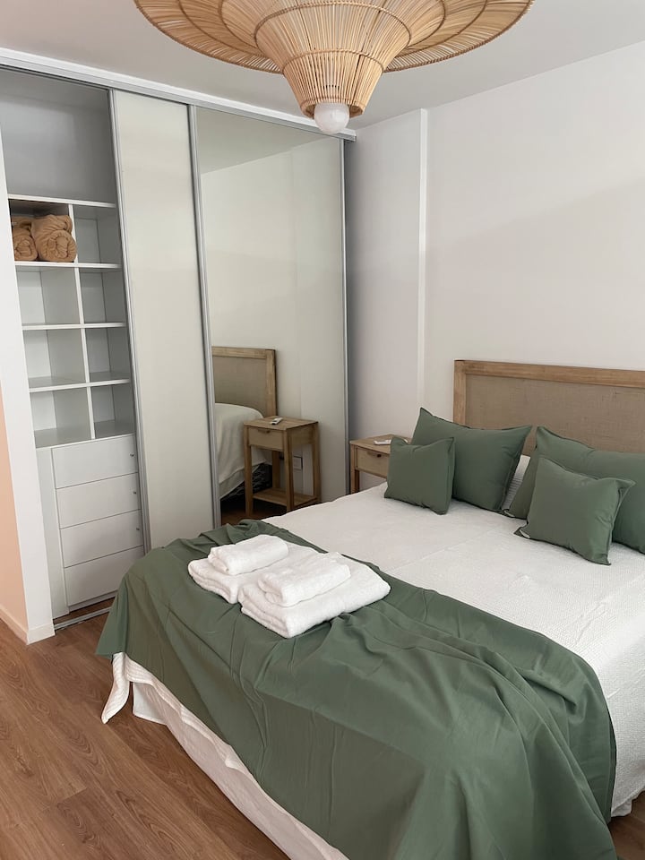 Квартира с 2 спальнями на первом этаже (Planta Baja) с электронным замком. Есть гостиная-столовая с большими окнами, а также отдельная кухня на 6 человек. Кухня укомплектована микроволновой печью, тостером, кофемашиной Nespresso, электрочайником, духовкой, электрической варочной панелью (анафе), холодильником с морозильной камерой и пылесосом, также есть стиральная машина/автомат (lavasecarropas). Главная спальня разделена на две зоны, в одной установлена кровать 1,60 × 2 м, в другой — 2 односпа