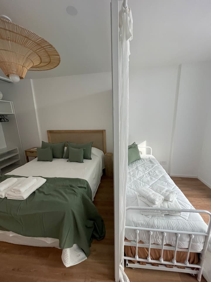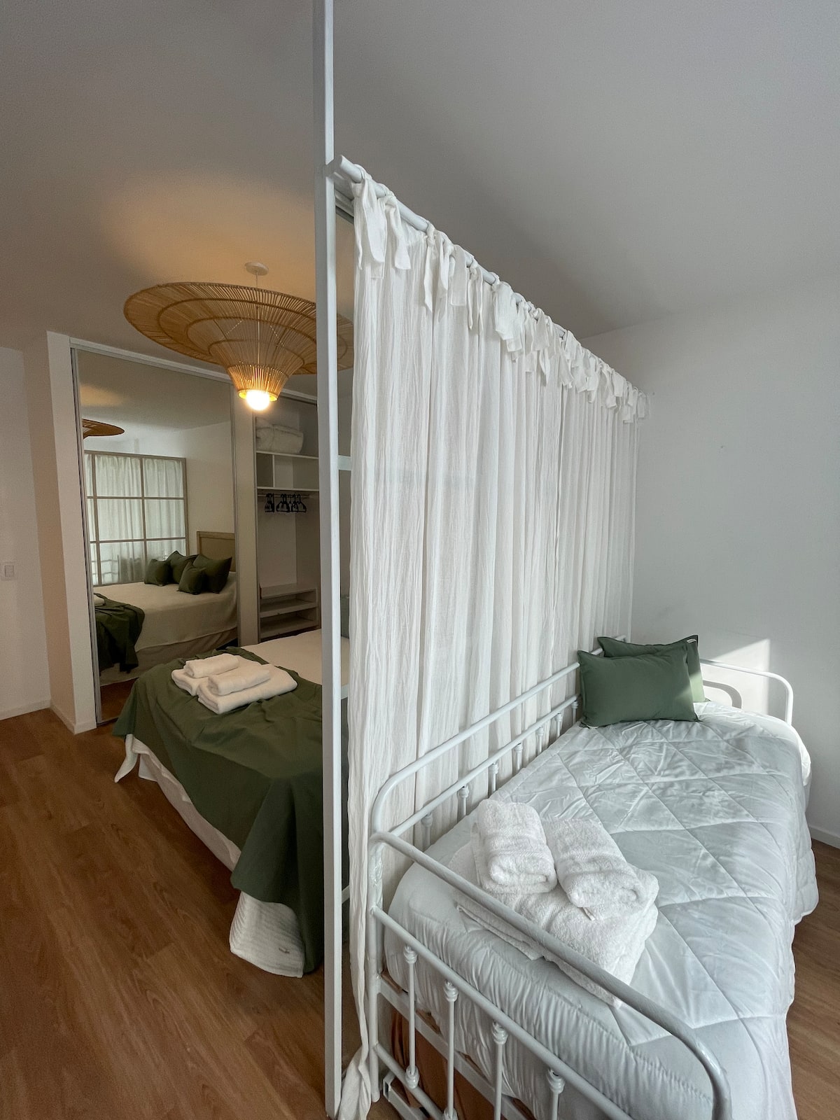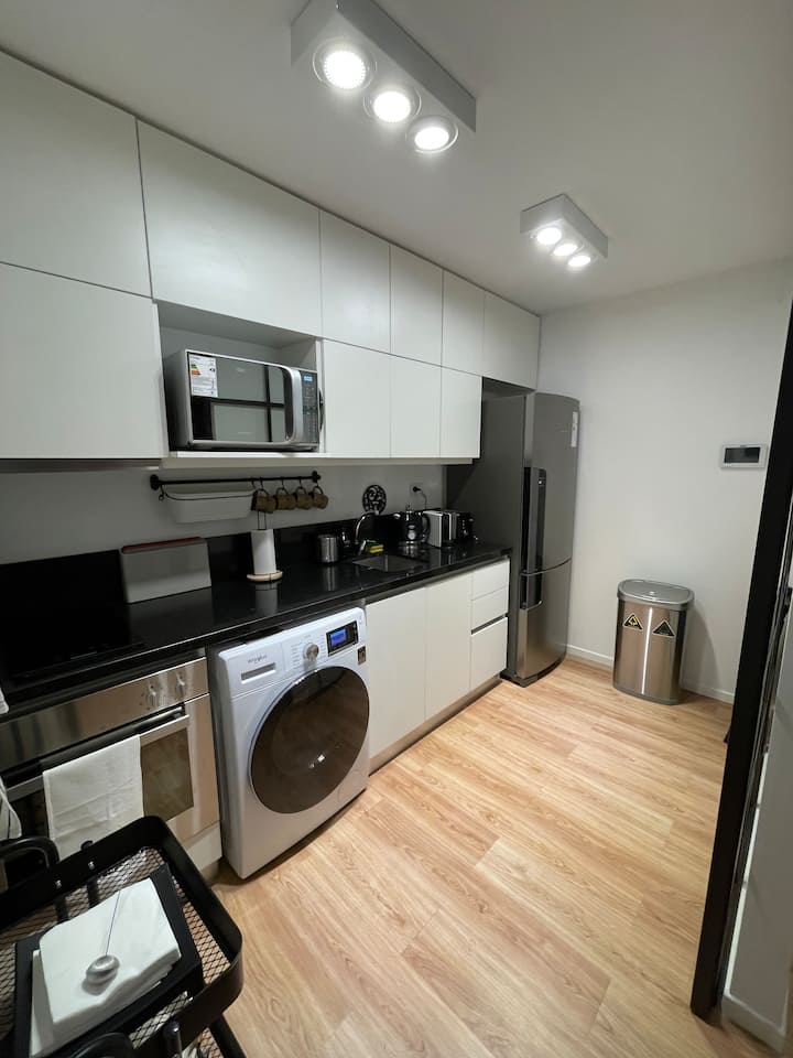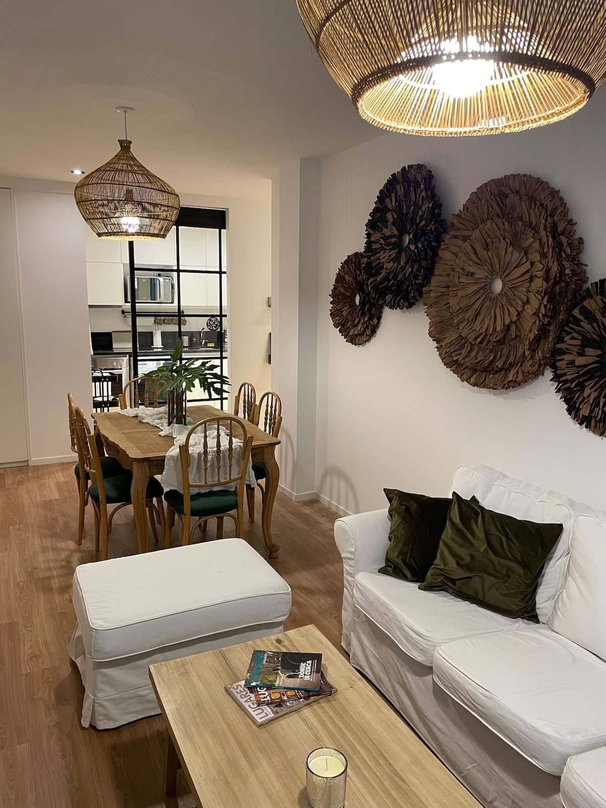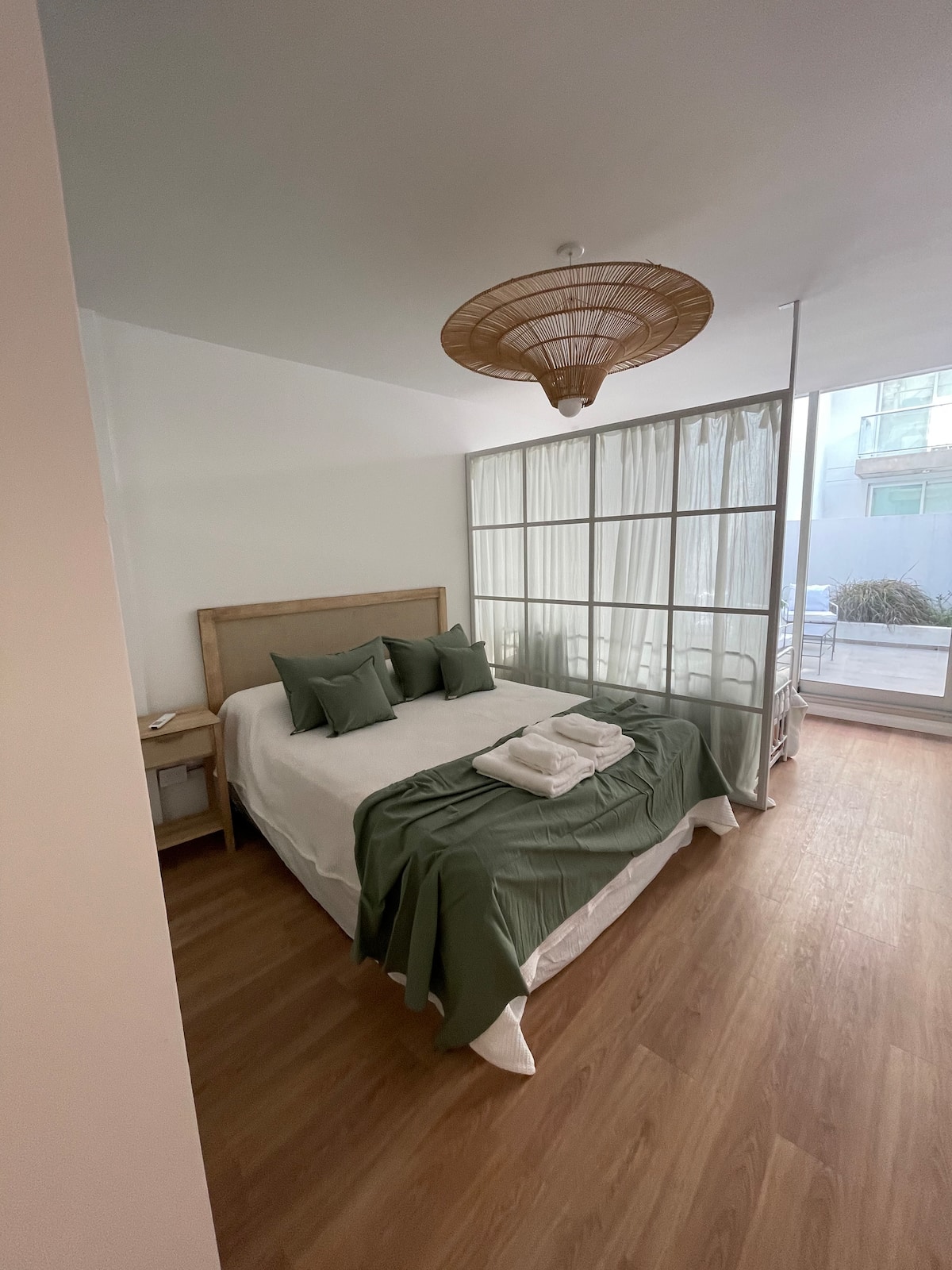 Квартира с 2 спальнями на первом этаже (Planta Baja) с электронным замком. Есть гостиная-столовая с большими окнами, а также отдельная кухня на 6 человек. Кухня укомплектована микроволновой печью, тостером, кофемашиной Nespresso, электрочайником, духовкой, электрической варочной панелью (анафе), холодильником с морозильной камерой и пылесосом, также есть стиральная машина/автомат (lavasecarropas). Главная спальня разделена на две зоны, в одной установлена кровать 1,60 × 2 м, в другой — 2 односпа
