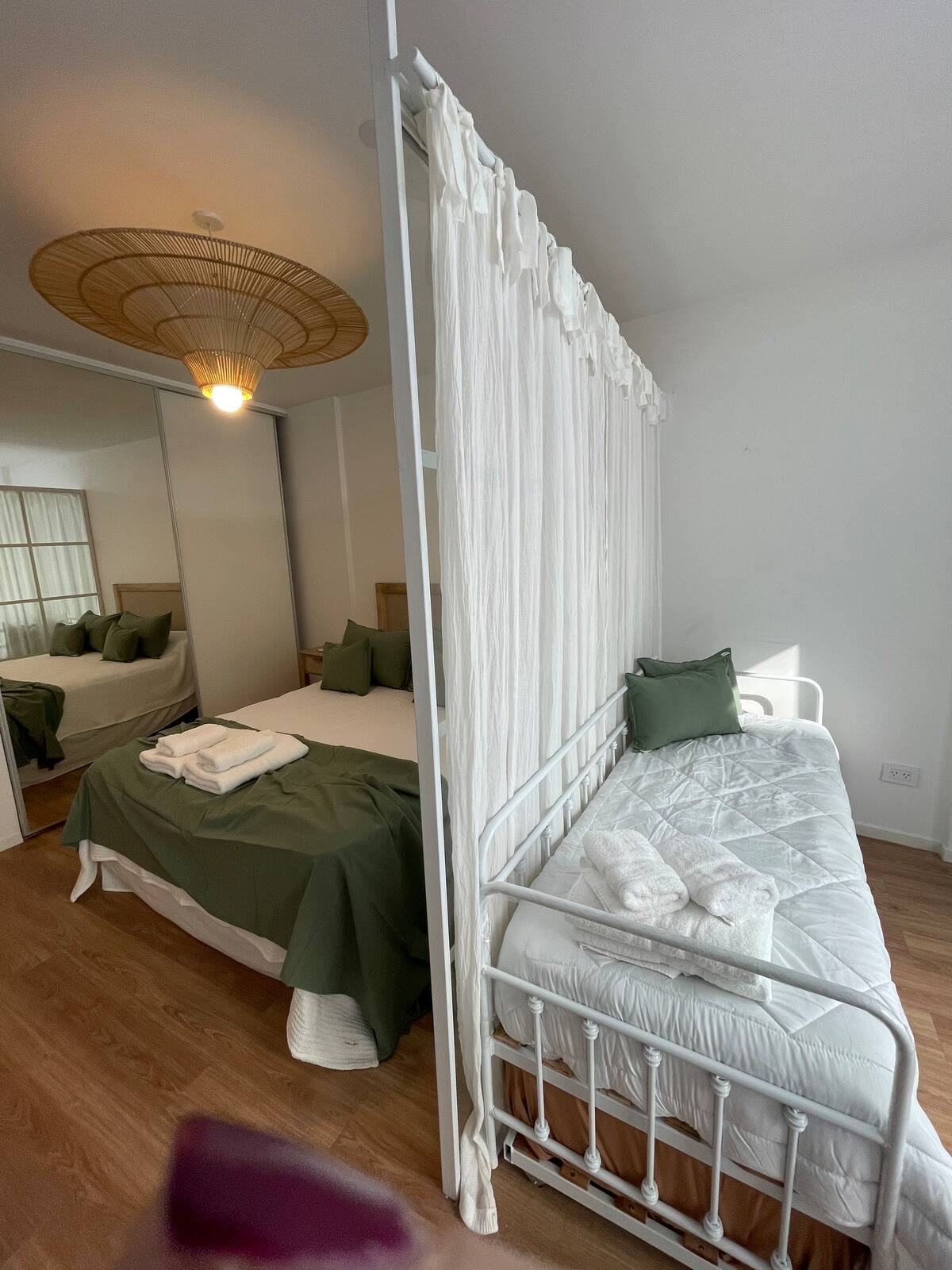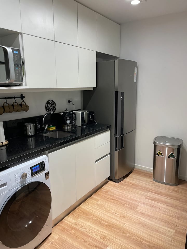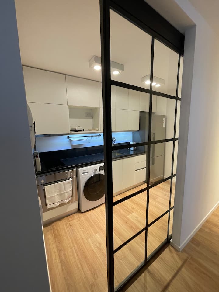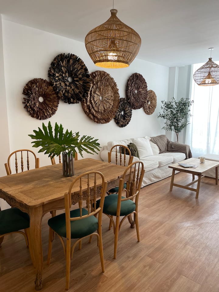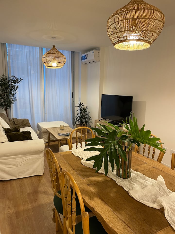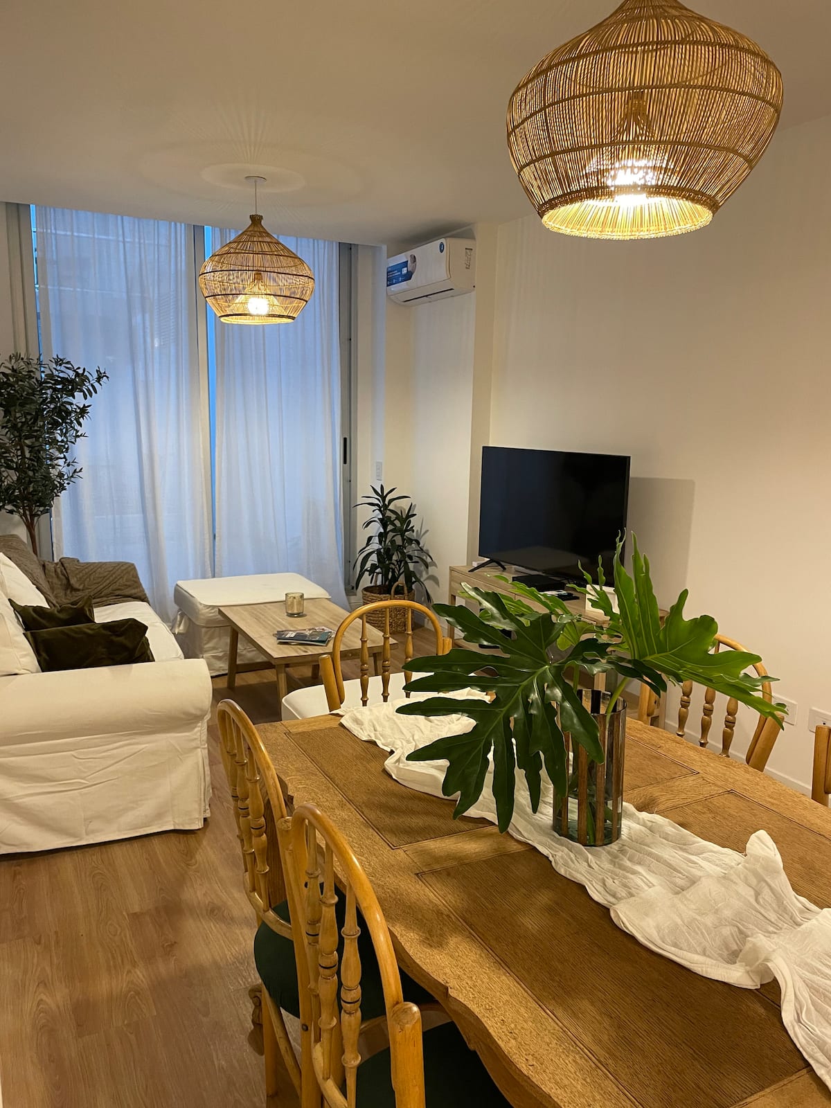 Квартира с 2 спальнями на первом этаже (Planta Baja) с электронным замком. Есть гостиная-столовая с большими окнами, а также отдельная кухня на 6 человек. Кухня укомплектована микроволновой печью, тостером, кофемашиной Nespresso, электрочайником, духовкой, электрической варочной панелью (анафе), холодильником с морозильной камерой и пылесосом, также есть стиральная машина/автомат (lavasecarropas). Главная спальня разделена на две зоны, в одной установлена кровать 1,60 × 2 м, в другой — 2 односпа