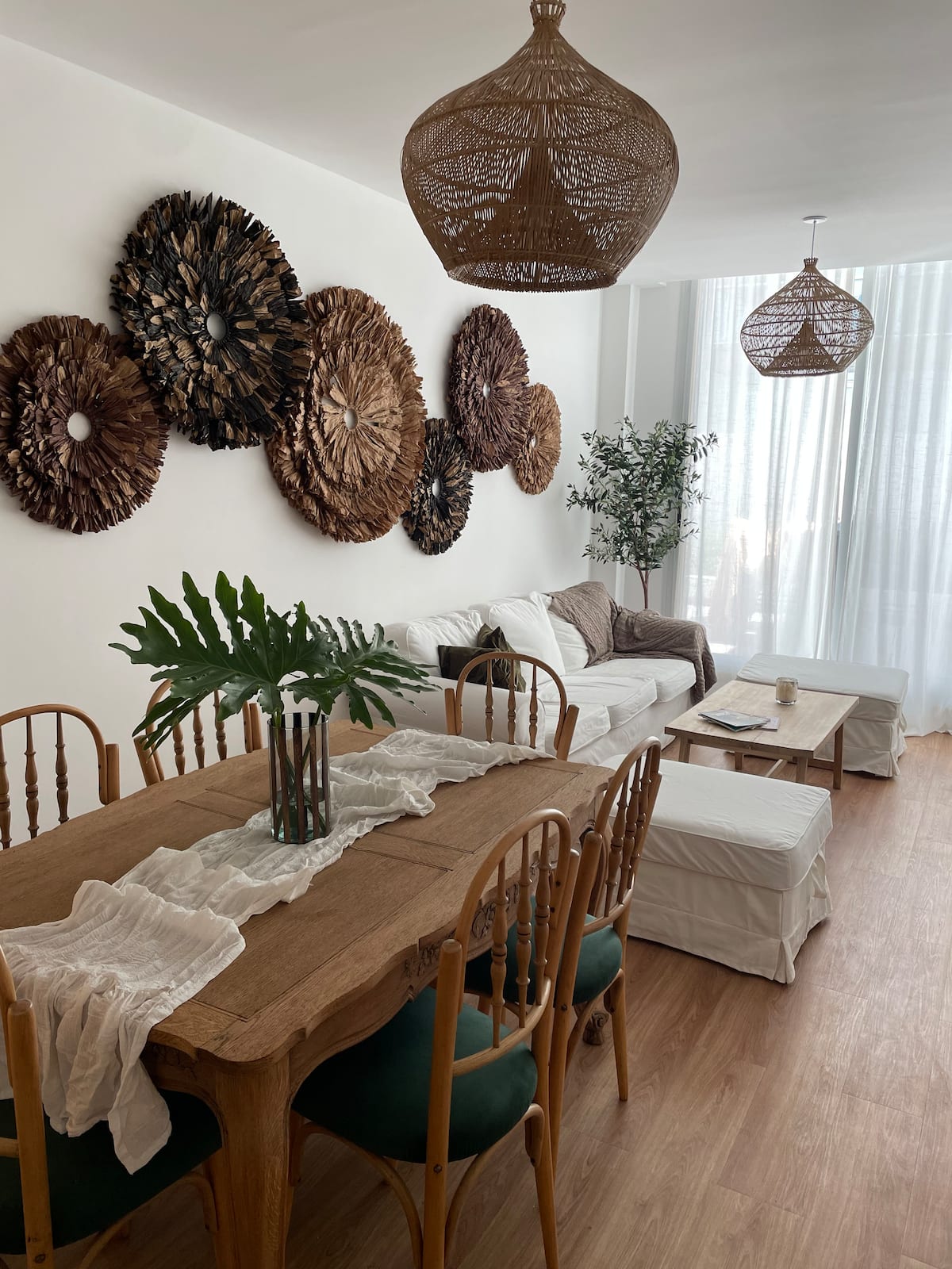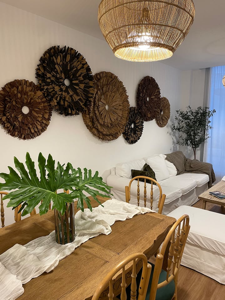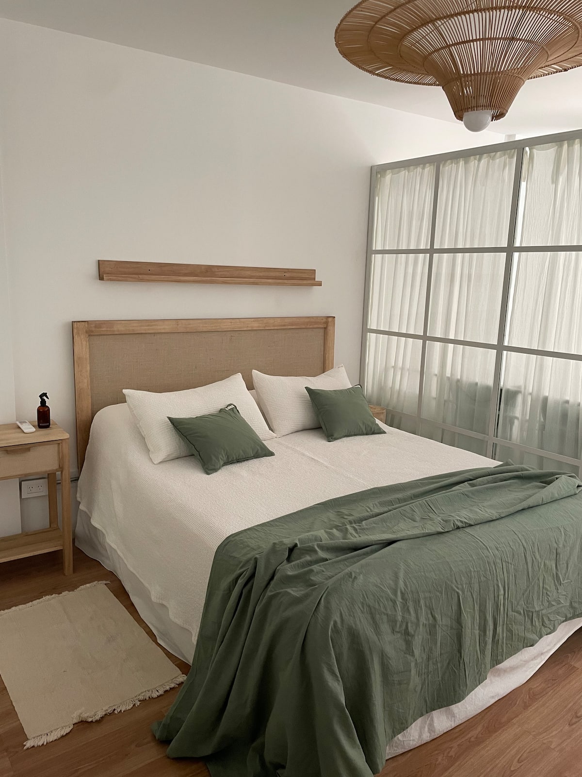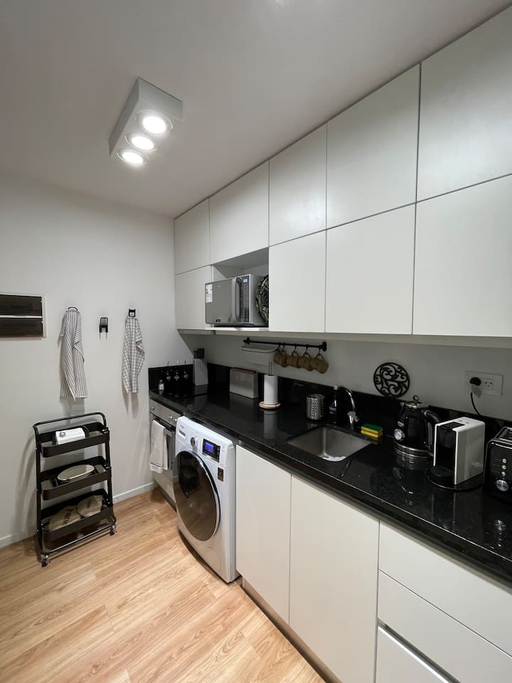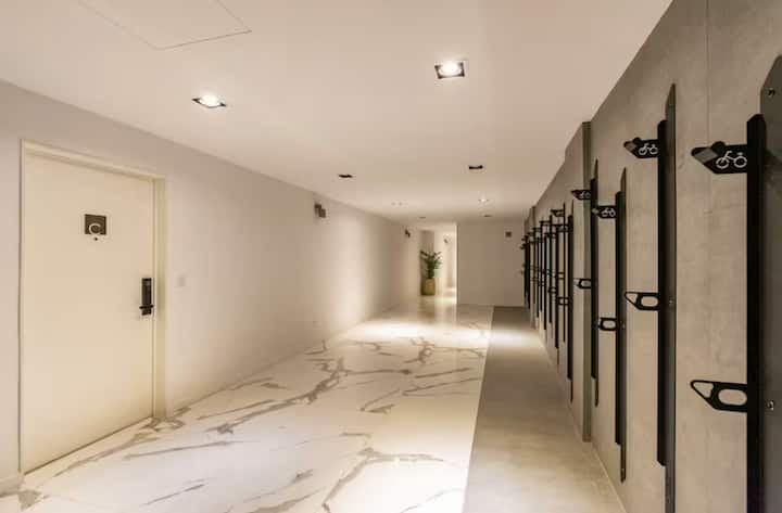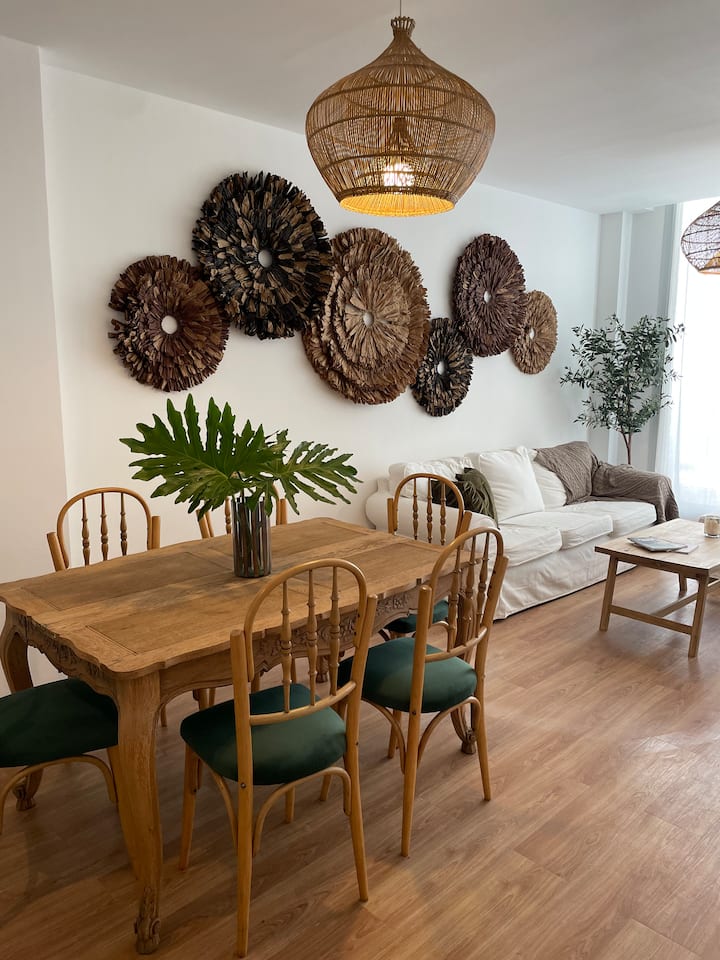 Квартира с 2 спальнями на первом этаже (Planta Baja) с электронным замком. Есть гостиная-столовая с большими окнами, а также отдельная кухня на 6 человек. Кухня укомплектована микроволновой печью, тостером, кофемашиной Nespresso, электрочайником, духовкой, электрической варочной панелью (анафе), холодильником с морозильной камерой и пылесосом, также есть стиральная машина/автомат (lavasecarropas). Главная спальня разделена на две зоны, в одной установлена кровать 1,60 × 2 м, в другой — 2 односпа