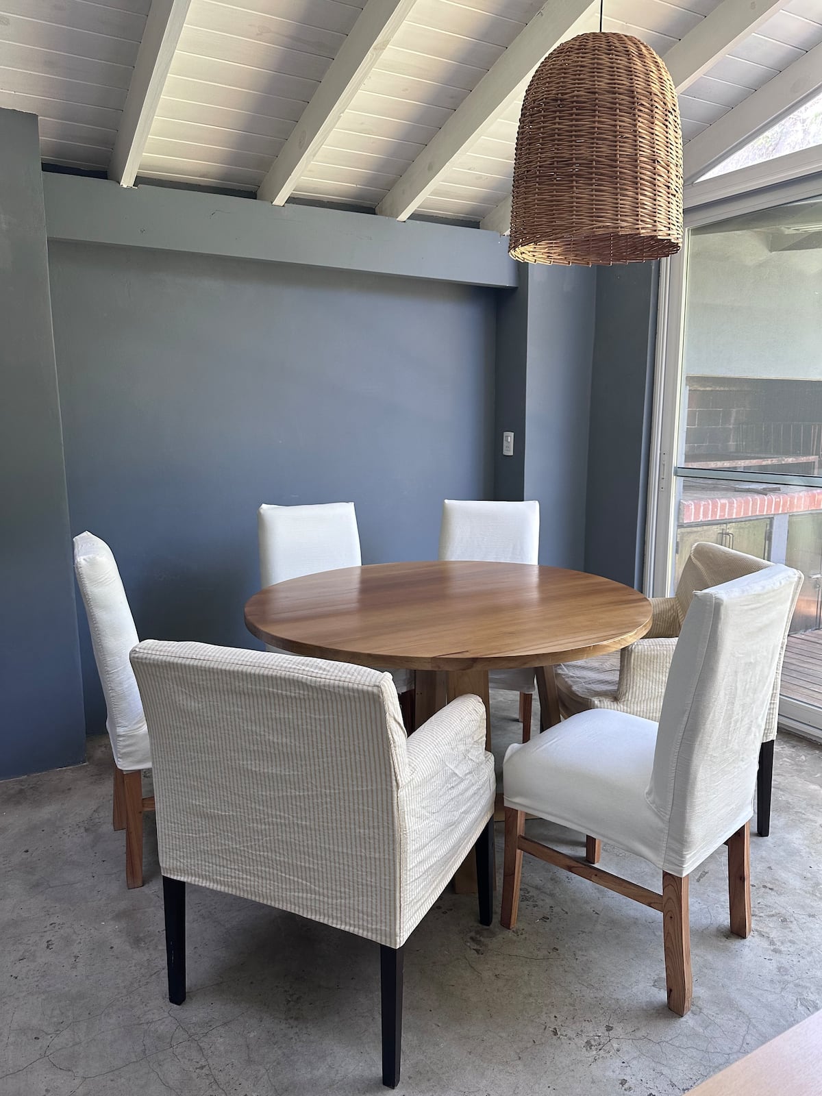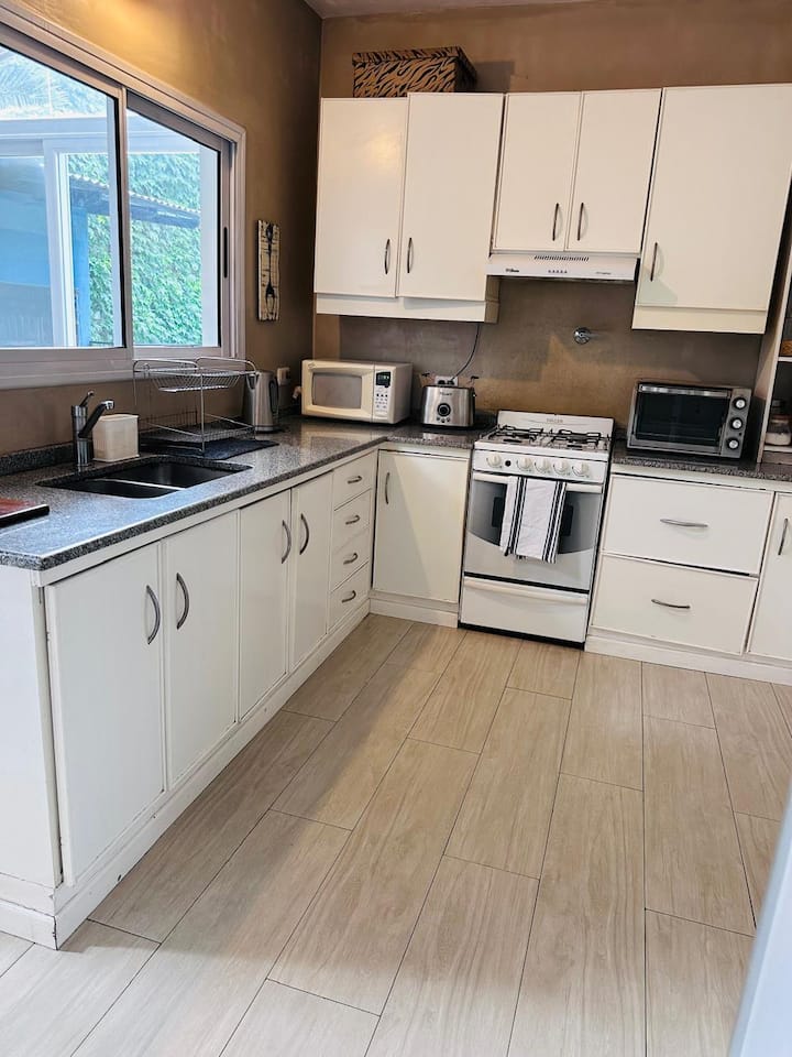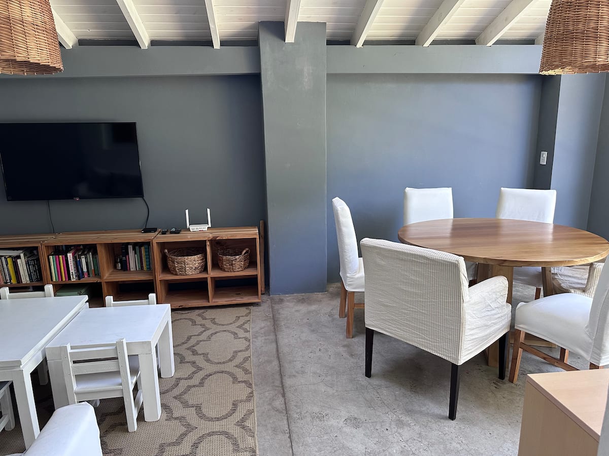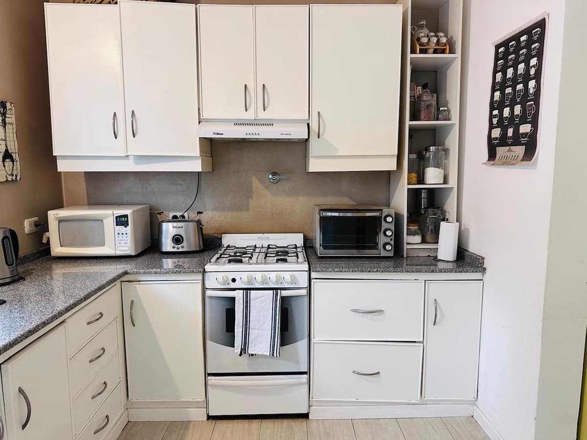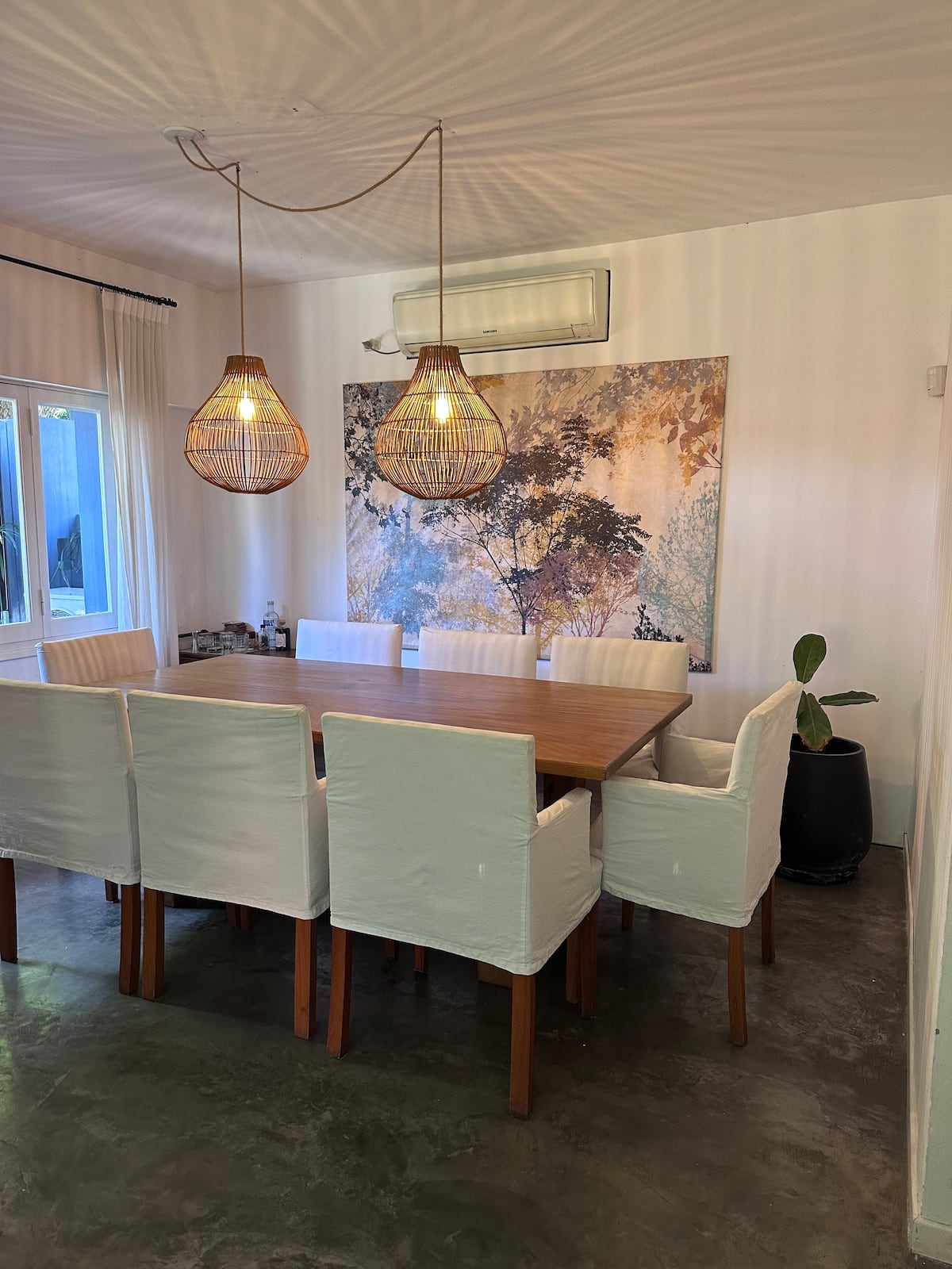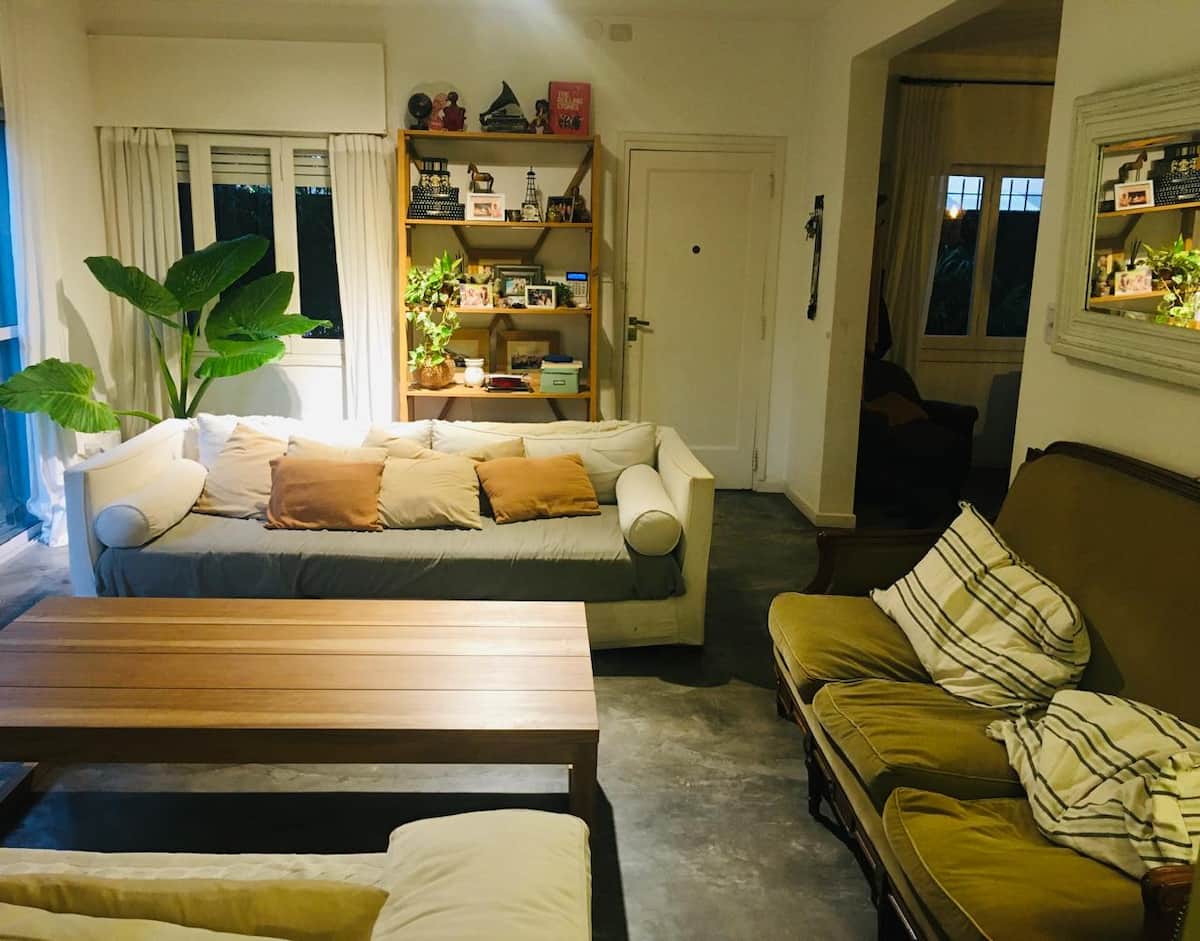 Квартира в Beccar с садом, бассейном и зоной гриля. На первом этаже: гостиная-столовая с видом на сад, игровая комната с прямым выходом к зоне гриля, полностью оборудованная кухня, ванная комната, прачечная. На втором этаже: спальня с двуспальной кроватью, телевизором и рабочим столом, вторая спальня с двумя односпальными кроватями, вторая ванная комната. Во всех помещениях установлены кондиционеры; указаны быстрый Wi‑Fi и сервисы для сада и бассейна, условия согласуются.