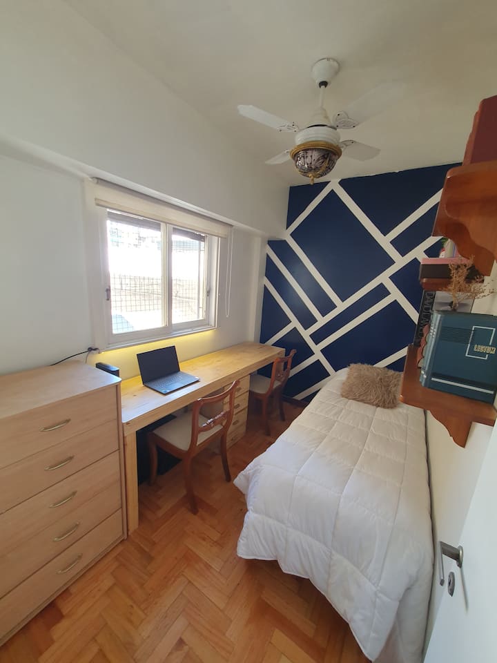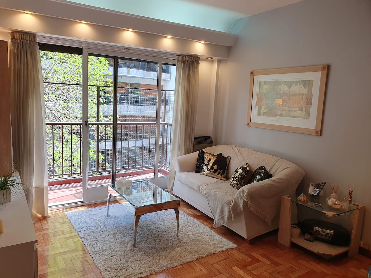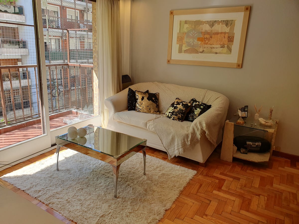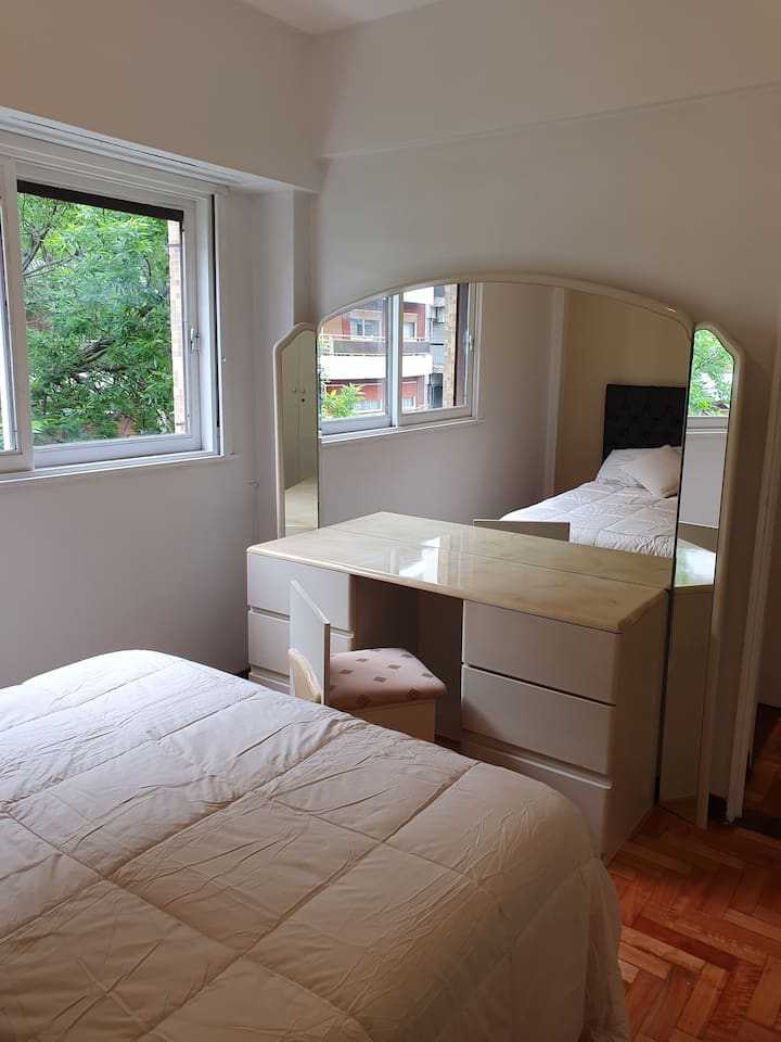 Квартира в Caballito, окна выходят на тихую улицу. Есть дополнительная комната с рабочим столом на 2 человека. В квартире установлены кондиционер и высокоскоростной WiFi. Рядом с Parque Rivadavia и транспортом.