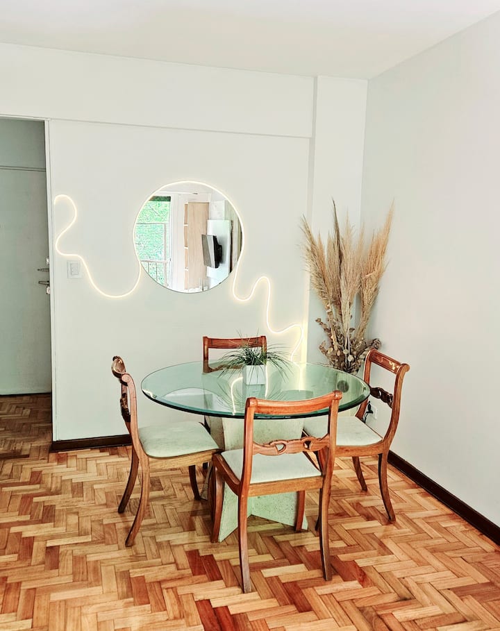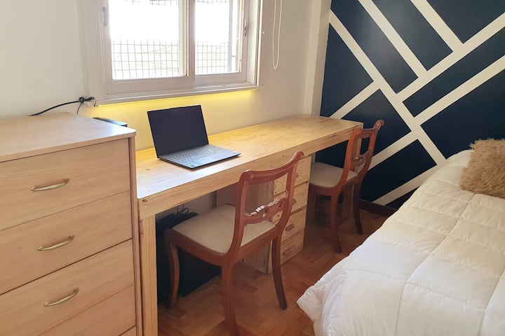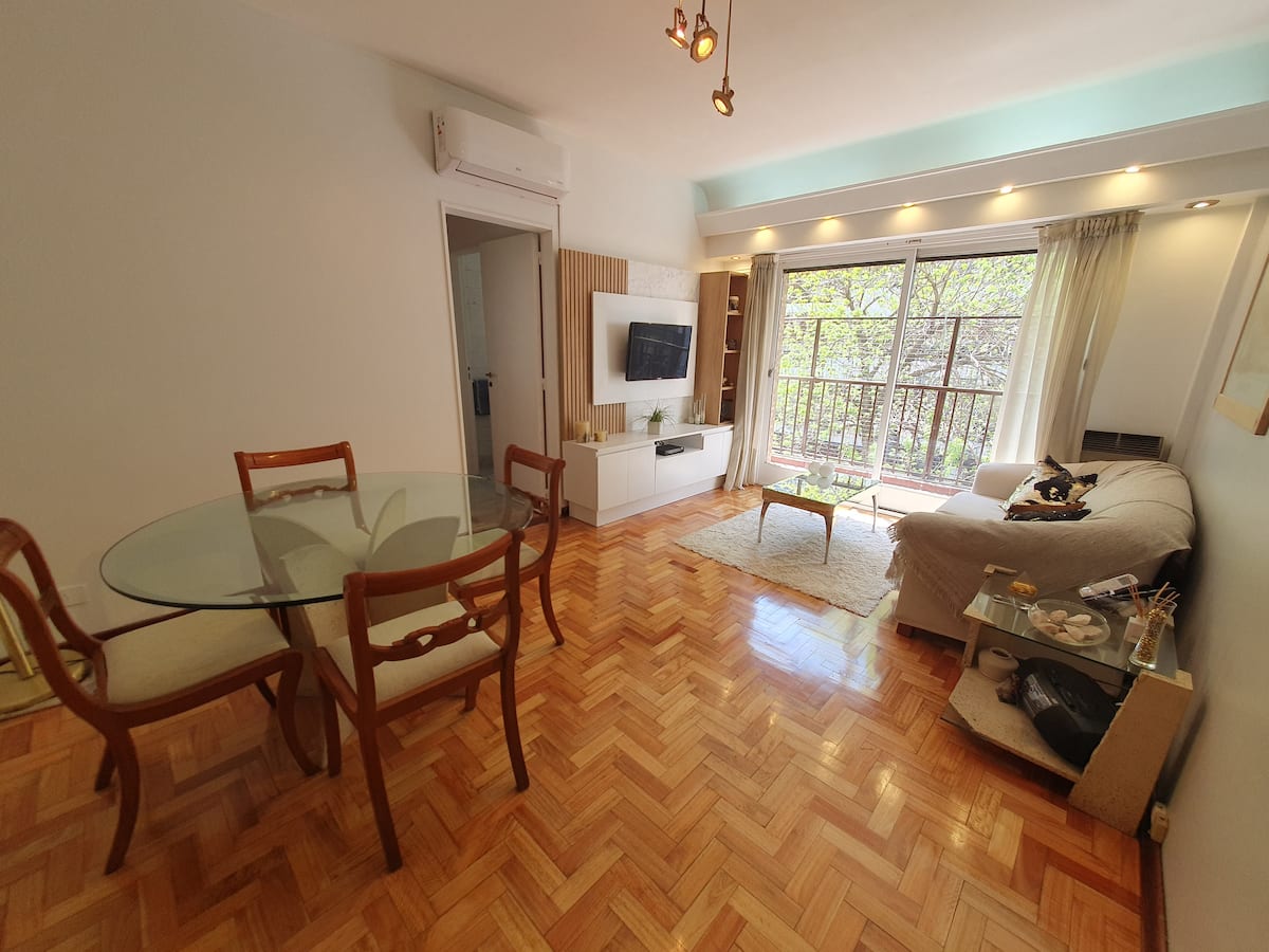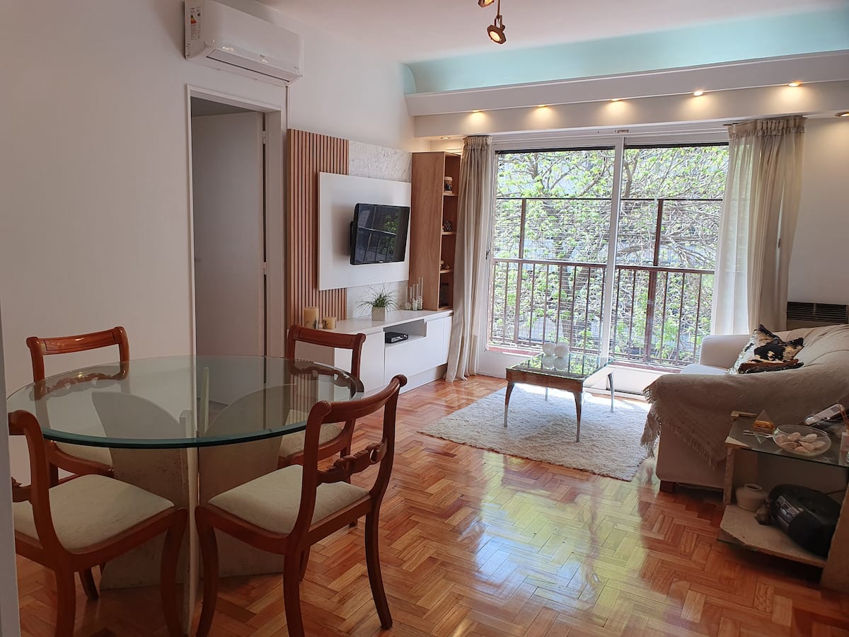 Квартира в Caballito, окна выходят на тихую улицу. Есть дополнительная комната с рабочим столом на 2 человека. В квартире установлены кондиционер и высокоскоростной WiFi. Рядом с Parque Rivadavia и транспортом.