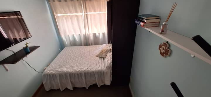 Квартира с 2 спальнями в Coghlan. Окна выходят в внутренний двор (pario). Указано, что район тихий. Ближайшие варианты общественного транспорта: Subte, поезд и автобусные линии.