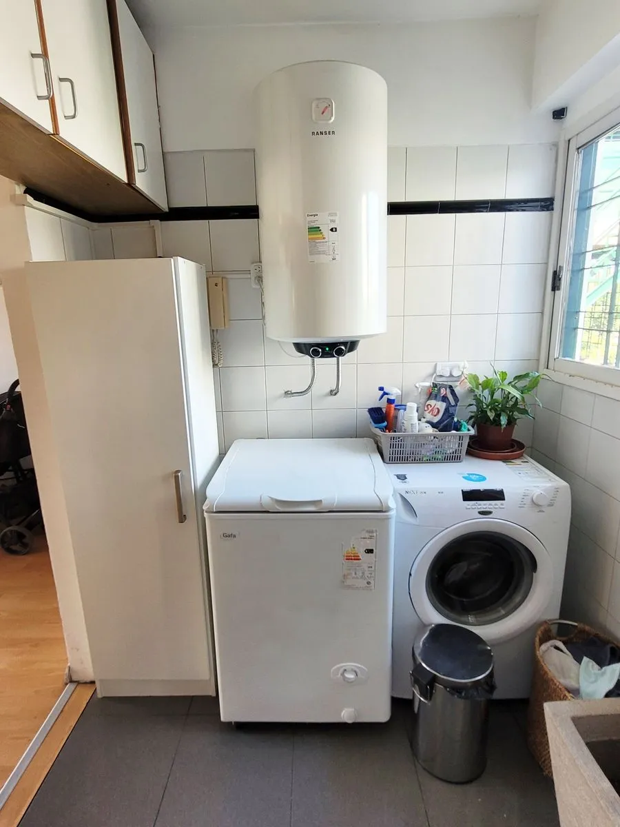 Квартира в Núñez общей площадью около 70 m² (по документам без учёта антресоли и туалета), 3-й этаж. Лифт работает с перебоями: сейчас доступ осуществляется по лестнице до момента возобновления работы лифта. Окна выходят на улицу и есть балкон; квартира полностью электрическая. Гостиная-столовая с выходом на балкон, 2 спальни с встроенными шкафами и ставнями на окнах. Полноценная кухня с мебелью нижнего яруса и навесными шкафами, полный санузел с ванной, биде/раковиной и окном. Антресоль с отде