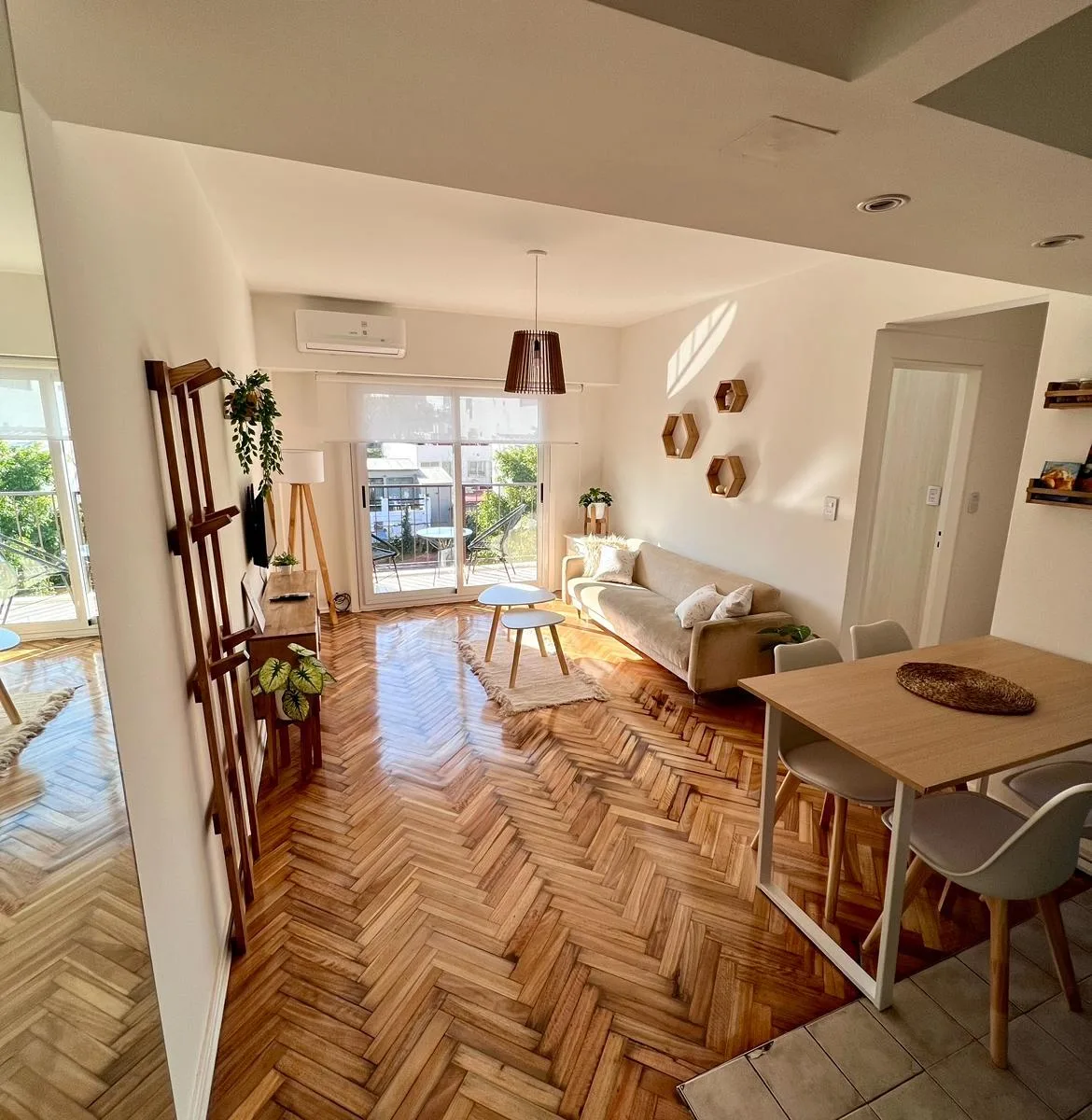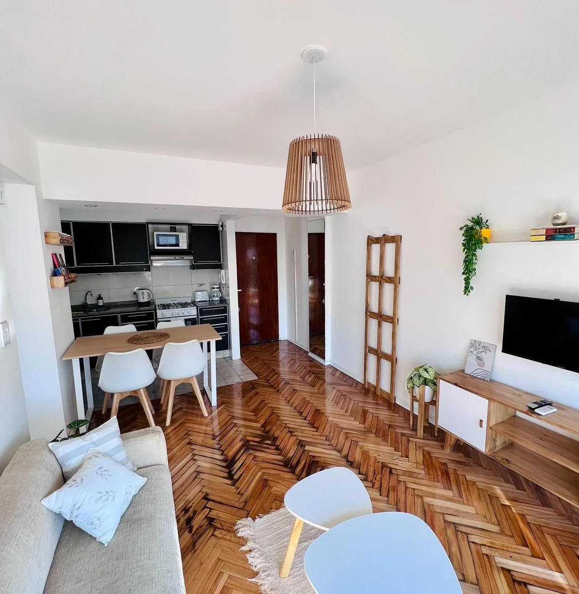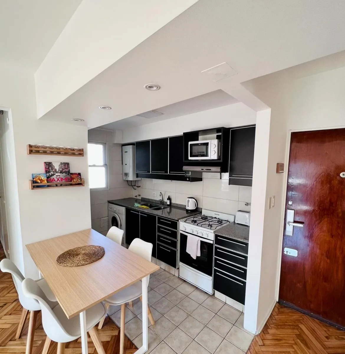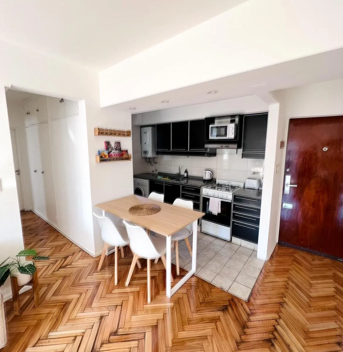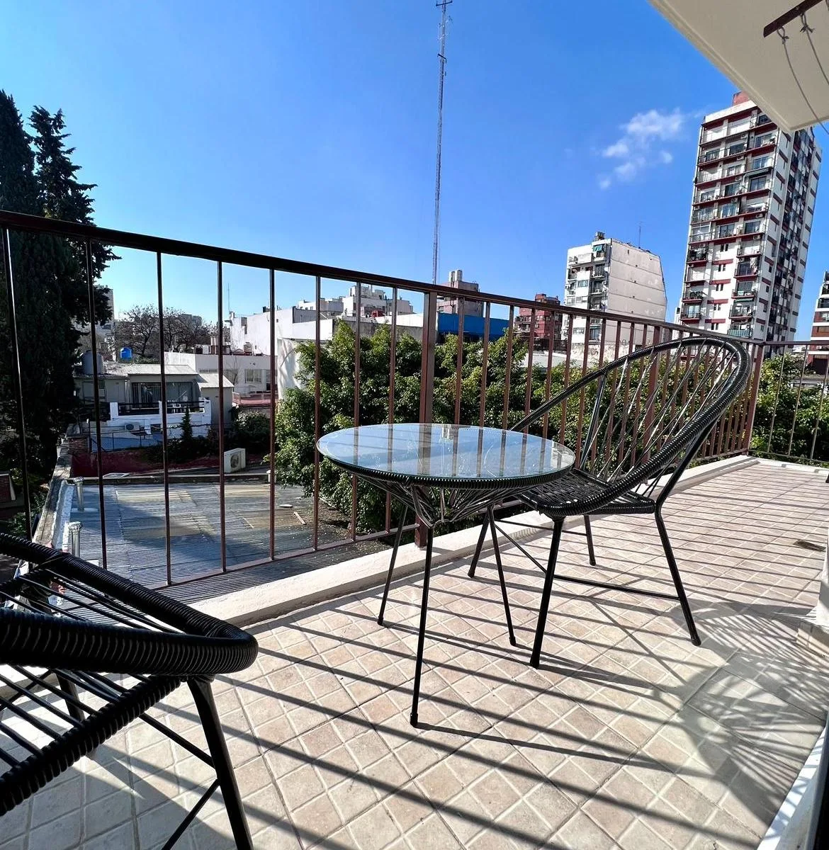 Квартира в Colegiales площадью 3 комнаты: 2 спальни и 1 полностью оборудованная ванная после ремонта. Передаётся с мебелью и полностью укомплектована для проживания: постельное бельё и полотенца. В числе оснащения 2 кондиционера, Wi‑Fi, 2 телевизора (в главной спальне и в гостиной), стиральная машина. Кухня оборудована, предусмотрены вешалки в шкафах. Коммунальные платежи и услуги оплачиваются арендатором. При заключении договора требуется депозит, аванс и комиссия; условия зависят от срока арен