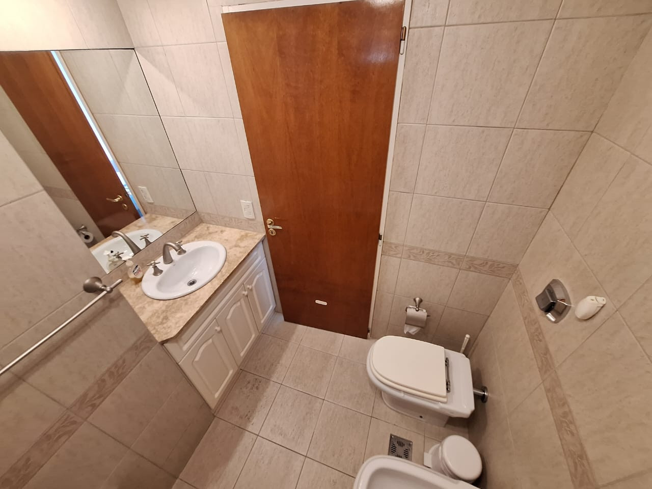 Квартира 3 комнаты площадью 78 m² на 8-м этаже в Belgrano, окна на улицу. В наличии большой балкон. Две спальни с собственными ванными: главная с двуспальной кроватью, вторая с односпальной; есть отдельный туалет для гостей. Кухня с газовой плитой и духовкой, микроволновой печью, холодильником с морозильной камерой, посудой и кухонными принадлежностями, зона для завтрака с столом и стульями. В отдельном помещении для стирки установлен стиральный автомат. Арендная плата: $1,100 в месяц в дополнен