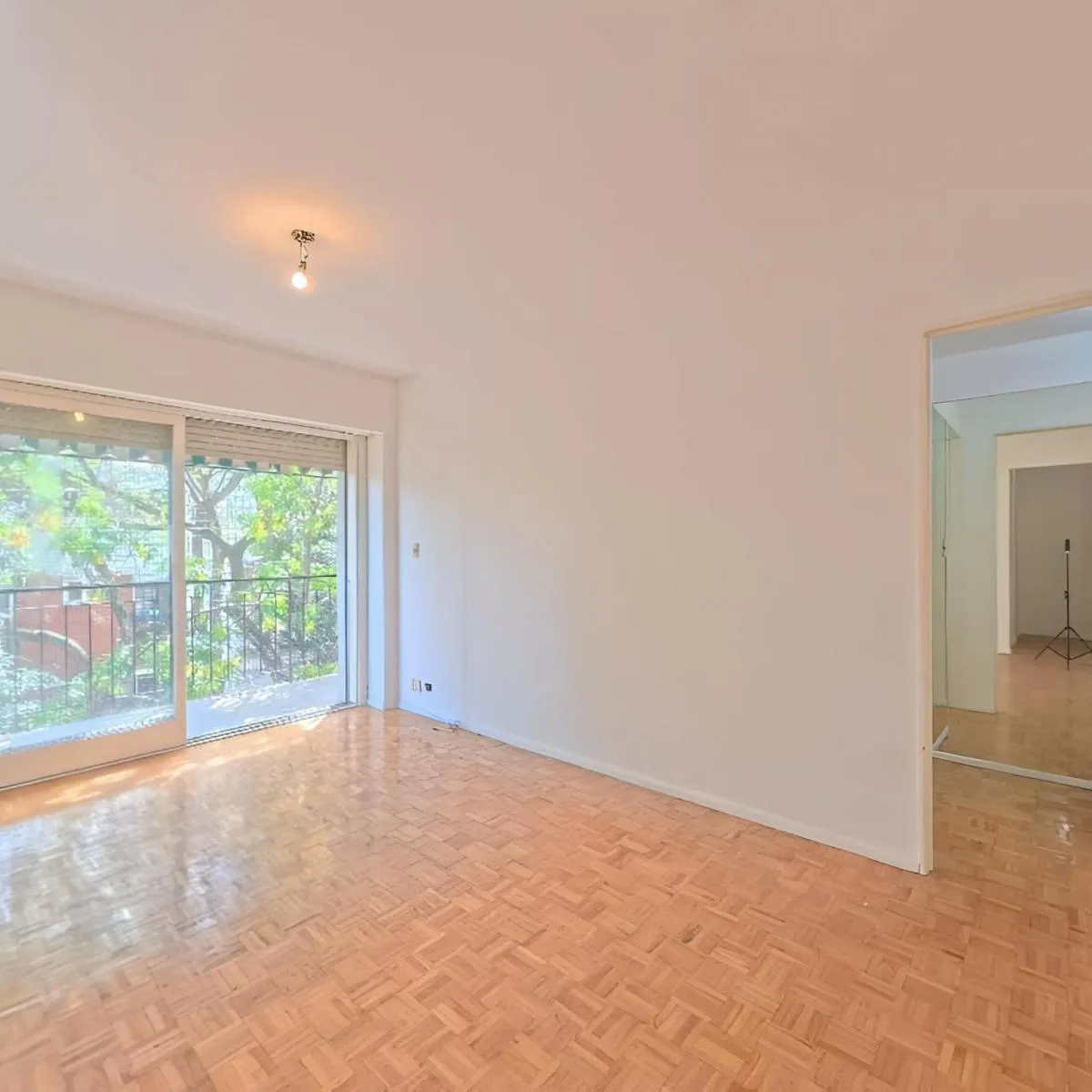 Квартира в Colegiales, три комнаты, 2 спальни, 3-й этаж, окна на улицу, ориентация NE. Площадь 56,65 m²: 49,26 m² крытых и 1,33 m² полукрытых, балкон 5,86 m². В квартире: кухня отдельно, гостиная-столовая 4,6 m x 3 m, спальни 3,1 m с гардеробом x 3 m и 3,4 m с гардеробом x 2,4 m, распределительный холл и полный санузел. Стены окрашены в белый цвет, полы паркет, встроенные шкафы, окна с жалюзи. Балконный ряд с тентом, открытый вид. Установлены индивидуальные приборы отопления и горячей воды: газо