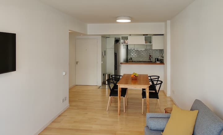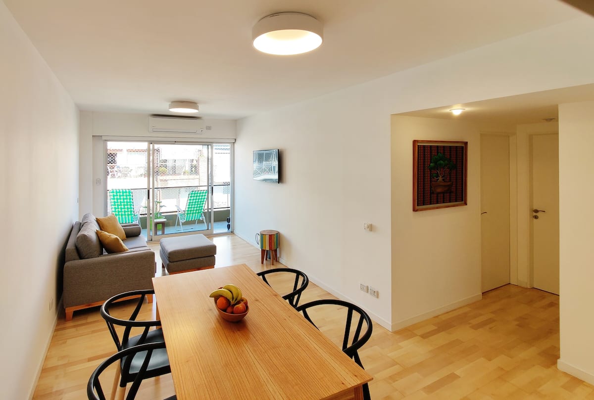 Квартира в Colegiales, в районе пересечения Palermo, Belgrano и Colegiales. 2 спальни и 2 ванных комнаты. Есть рабочее место, WiFi, кондиционер и отопление. Установлена техника для длительного проживания, включая стиральную машину. Парковка и клининговые услуги доступны по запросу.