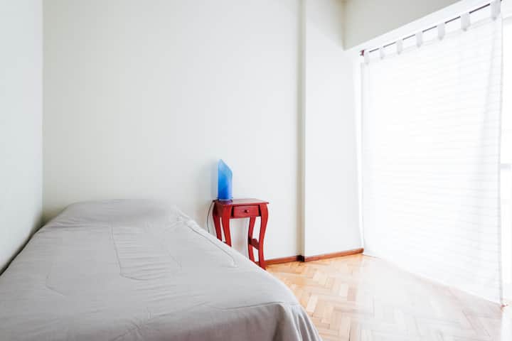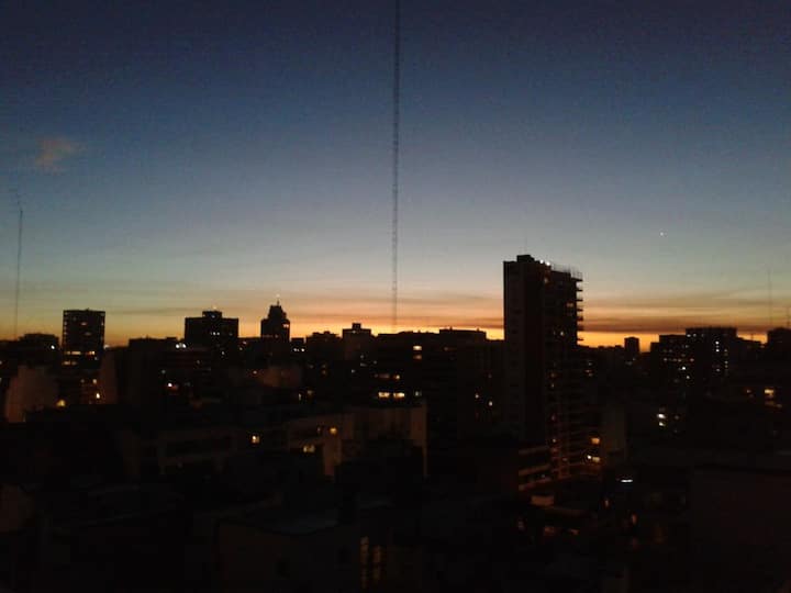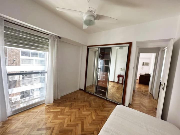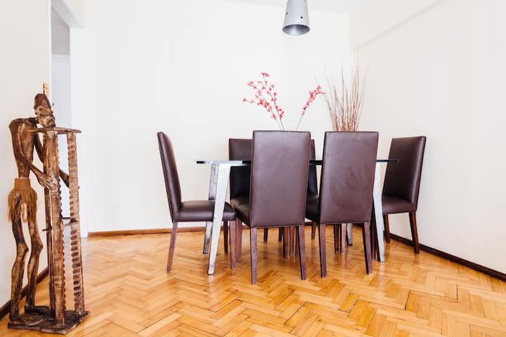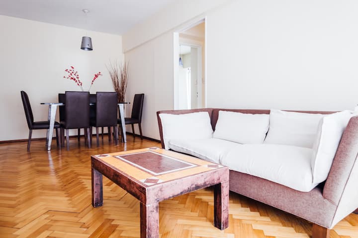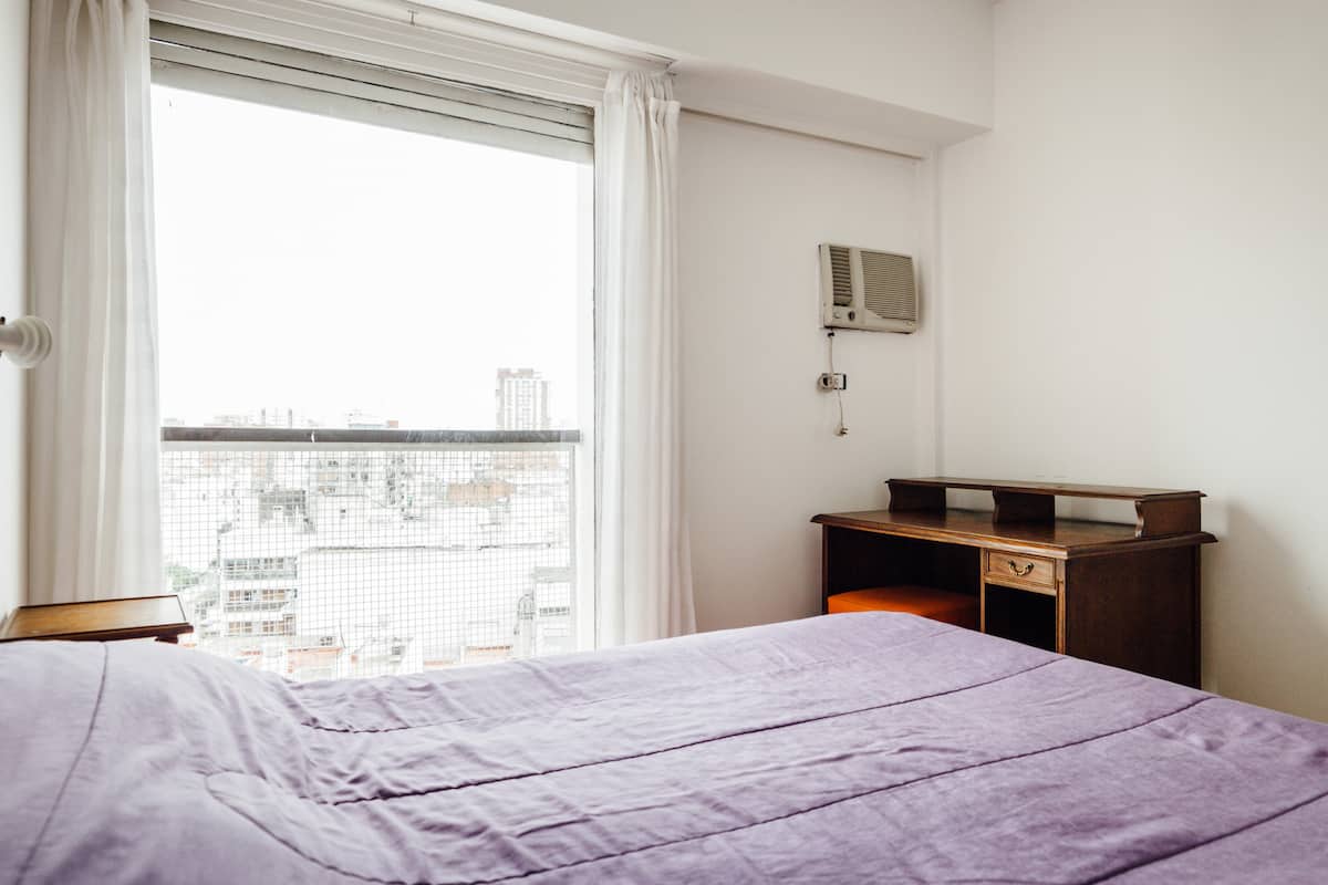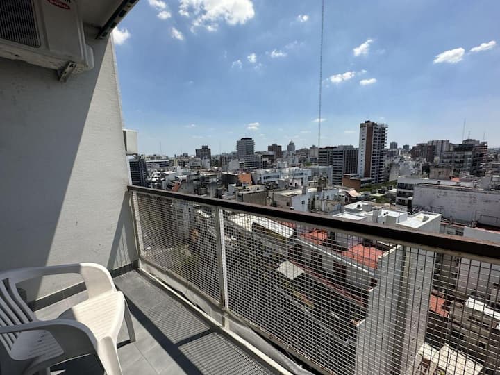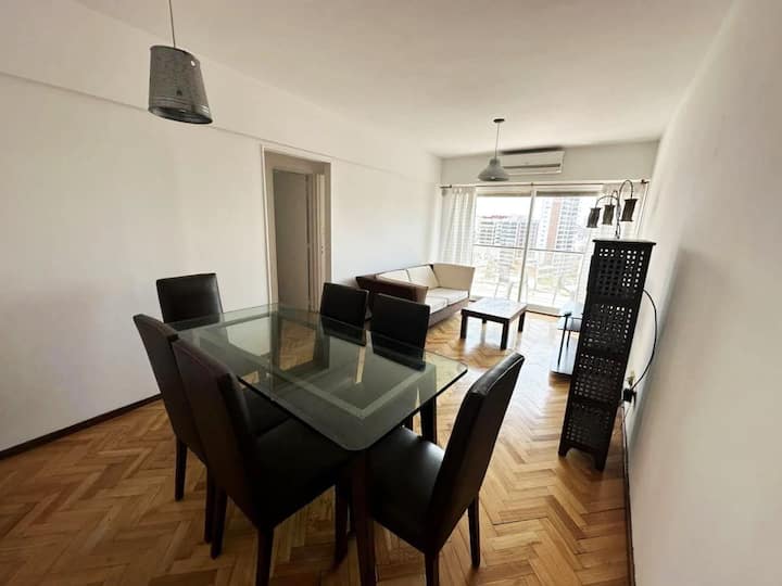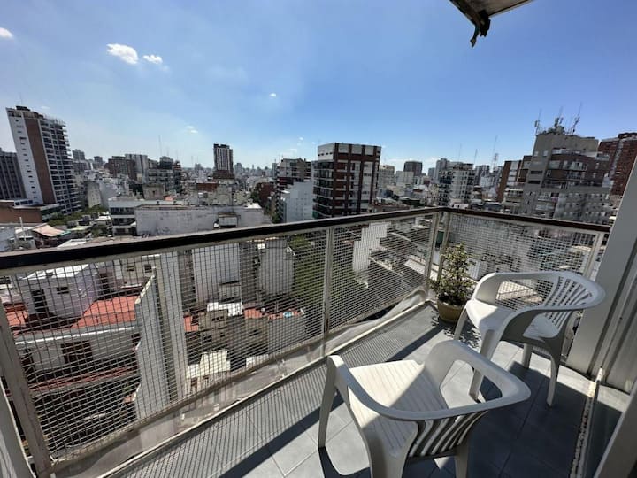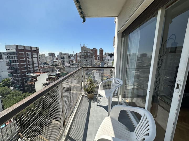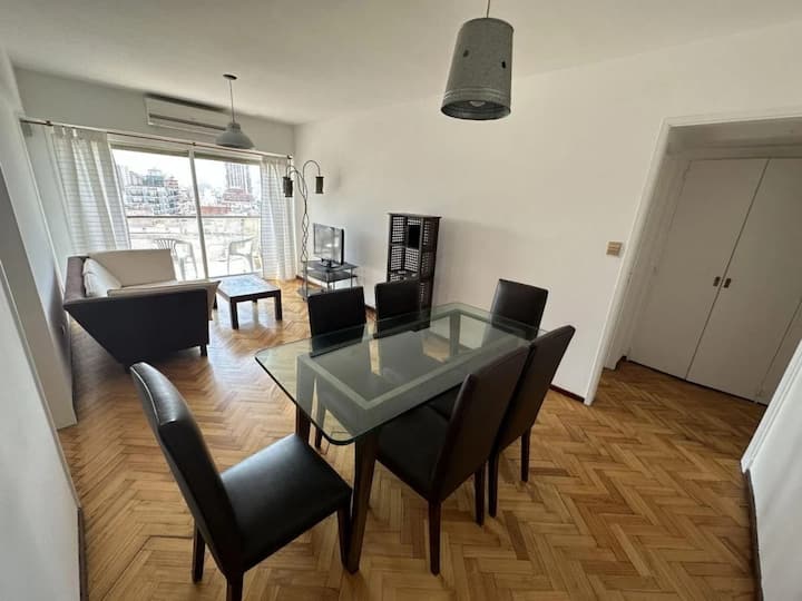 Квартира с 3 комнатами в Colegiales с балконом-террасой и панорамным видом. Полностью оборудована; в доме работает круглосуточное видеонаблюдение. Кондиционер и центральное отопление с подачей через тёплые панели, центральное горячее водоснабжение. В кухне есть духовка и микроволновая печь, также указана система No-Frost. Сообщается о включённом Wi‑Fi и кабельном телевидении на 70 каналов, а также об опциональной еженедельной уборке и смене полотенец и постельного белья.