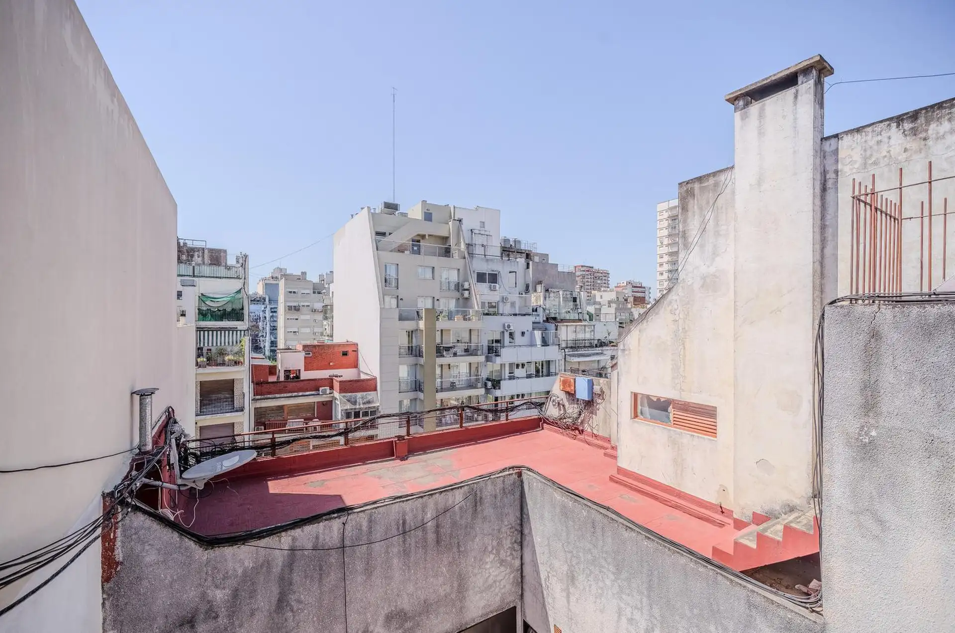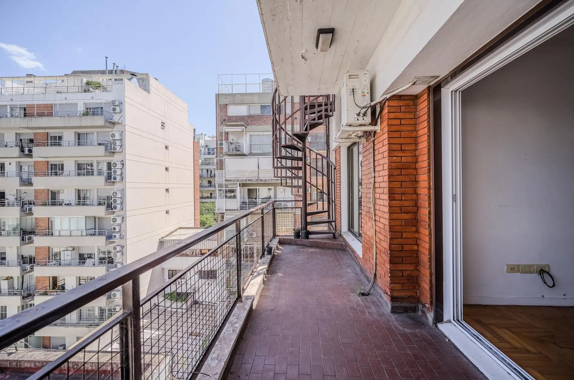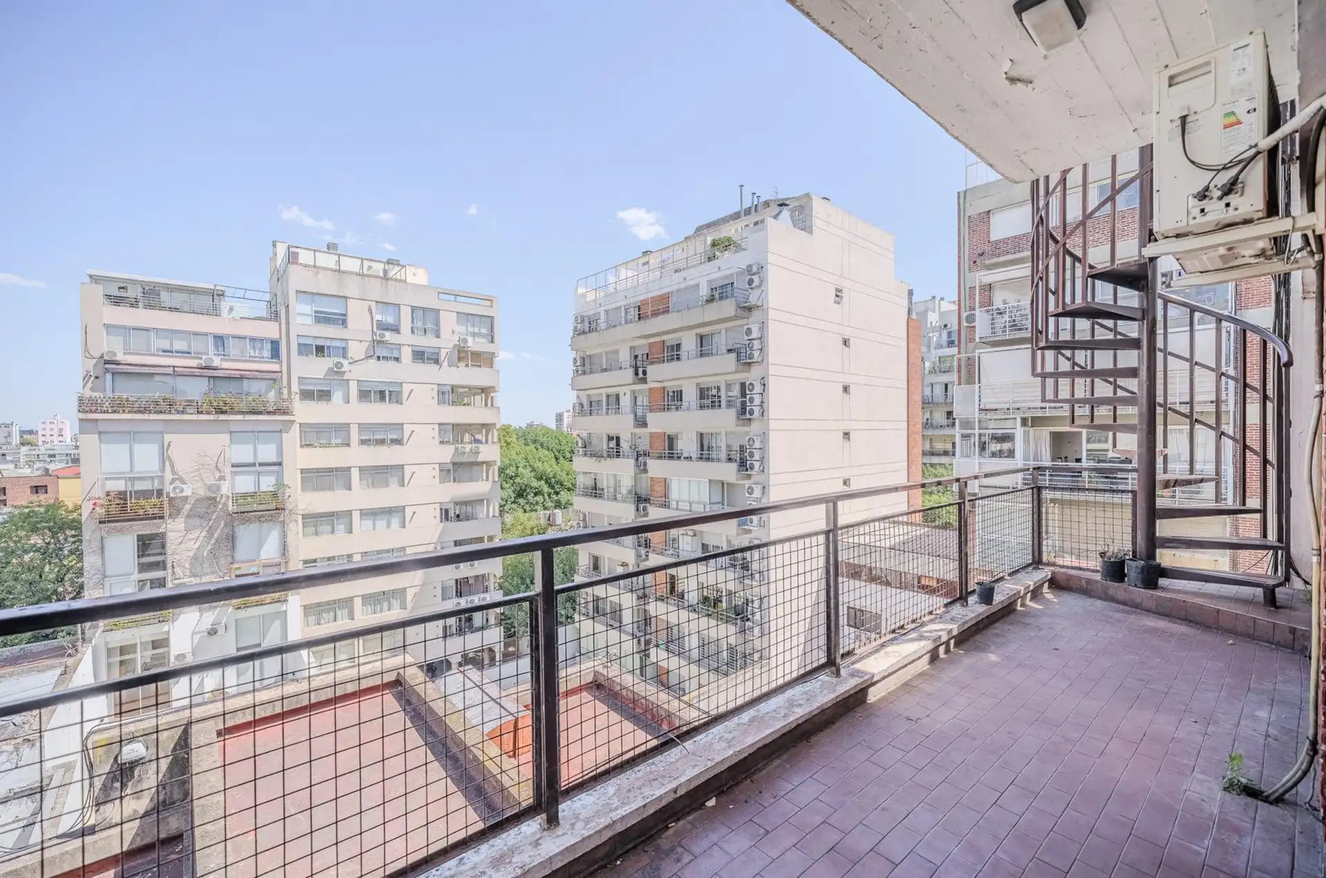 Квартира в Colegiales с 3 комнатами, 2 спальнями, балконом, террасой и (закреплённым) парковочным местом. В гостиной-столовой предусмотрен кондиционер. Кухня отдельная, есть место под стиральную машину; в главной спальне встроенные шкафы. Терраса доступна по винтовой лестнице и выходит с открытым видом. К проживанию с животными ограничения: в объявлении указано, что не принимаются. Коммунальные платежи здания составляют $500.000. Условия аренды: предоплата за 1 месяц, депозит-страховка в размере