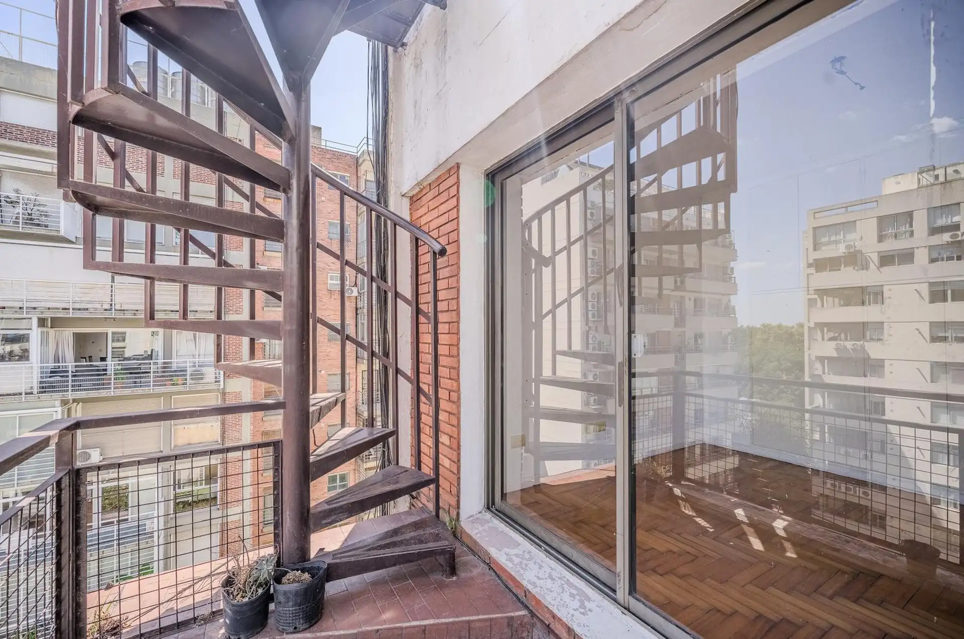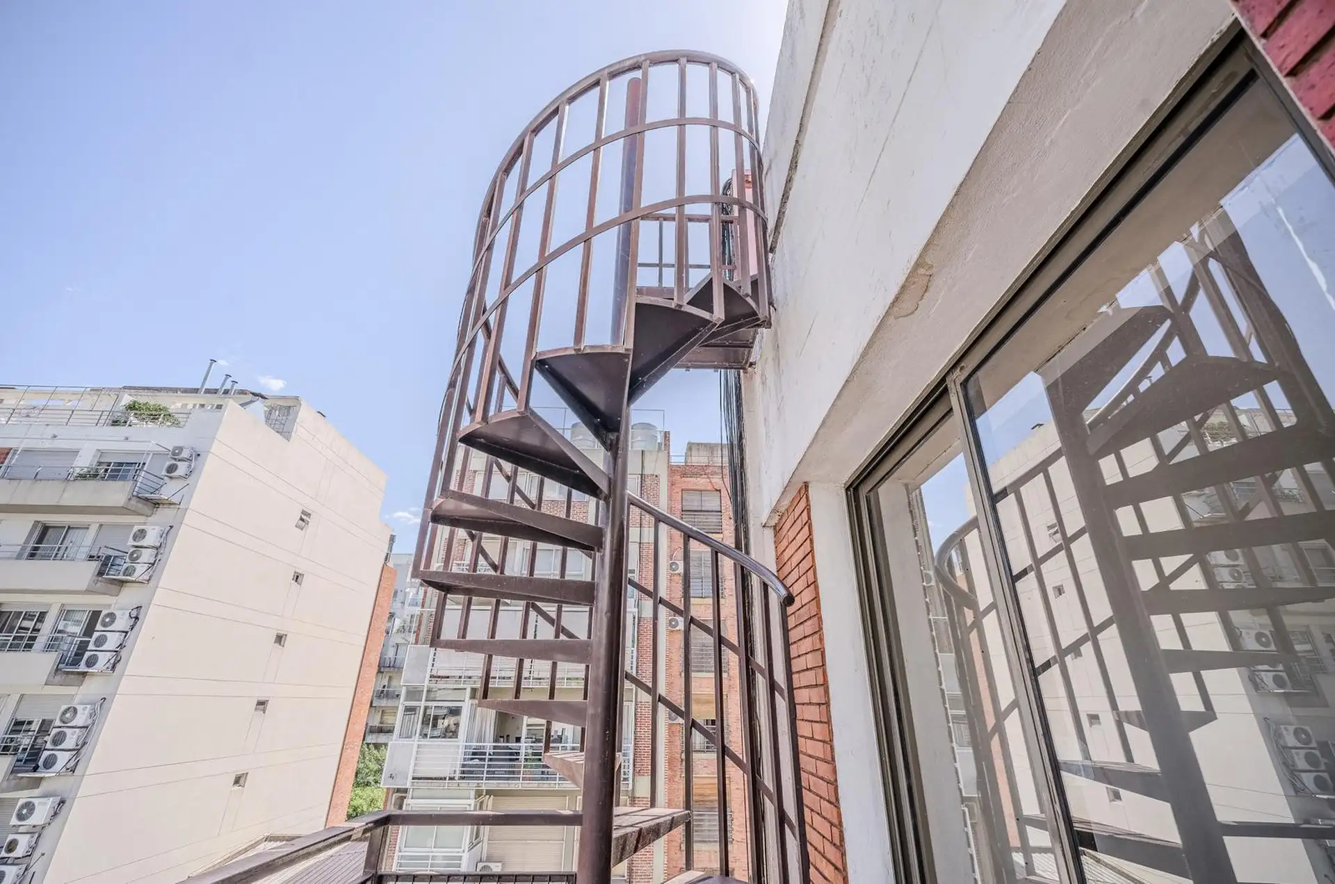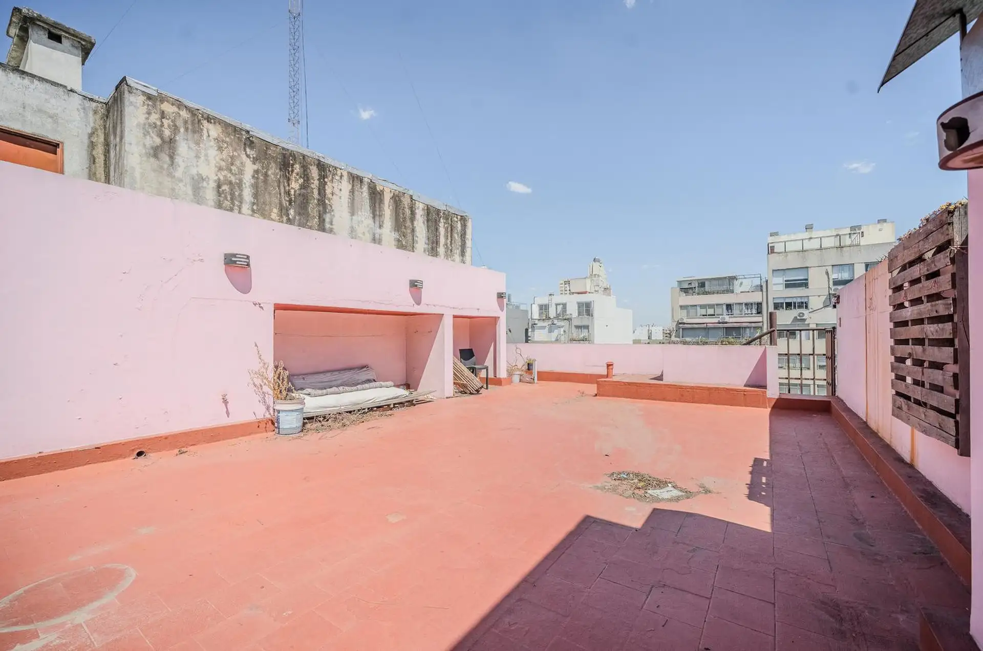 Квартира в Colegiales с 3 комнатами, 2 спальнями, балконом, террасой и (закреплённым) парковочным местом. В гостиной-столовой предусмотрен кондиционер. Кухня отдельная, есть место под стиральную машину; в главной спальне встроенные шкафы. Терраса доступна по винтовой лестнице и выходит с открытым видом. К проживанию с животными ограничения: в объявлении указано, что не принимаются. Коммунальные платежи здания составляют $500.000. Условия аренды: предоплата за 1 месяц, депозит-страховка в размере