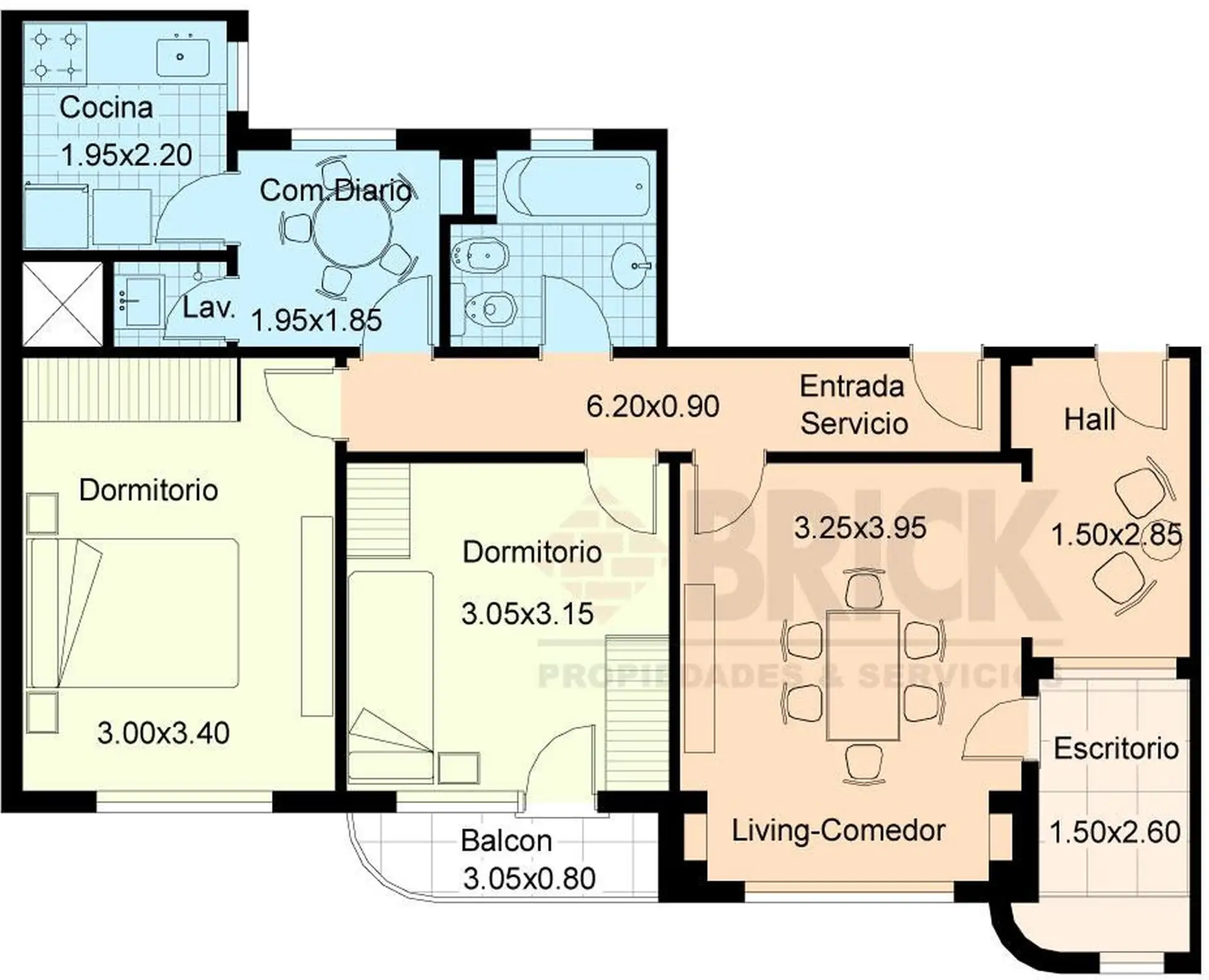 Полуэтажная квартира в Монсеррат, 3 комнаты + кабинет, 85 m². Расположена на 6 этажах, окна выходят на улицу (всё спереди), есть балкон, отопление — автономное; двусторонний вход. В квартире полноценная ванная, кухня с обеденной зоной, 3 встроенных шкафа, отдельная застеклённая зона для стирки. Паркетные полы, лифт в здании. Коммунальные платежи здания (expensas) — $ 179.056 в месяц, годовой ABL — $ 66.972. Между Humberto 1° и Carlos Calvo, в районе Monserrat, в 1 квартале от Av. Entre Ríos и в
