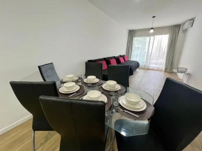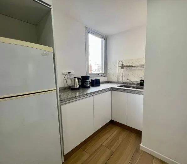 Квартира с 3 комнатами площадью не указана, с мебелью, на 4-м этаже, окна во двор. В гостиной предусмотрен широкий балкон с большим панорамным остеклением. Две спальни с встроенными шкафами, в одной из них есть ванная en suite. Отдельная кухня с мебелью нижнего яруса и навесными шкафами. В доме есть бассейн с солярием, тренажёрный зал, laundry, SUM, зона для коворкинга и детские/игровые зоны. В стоимость не включены налоги.