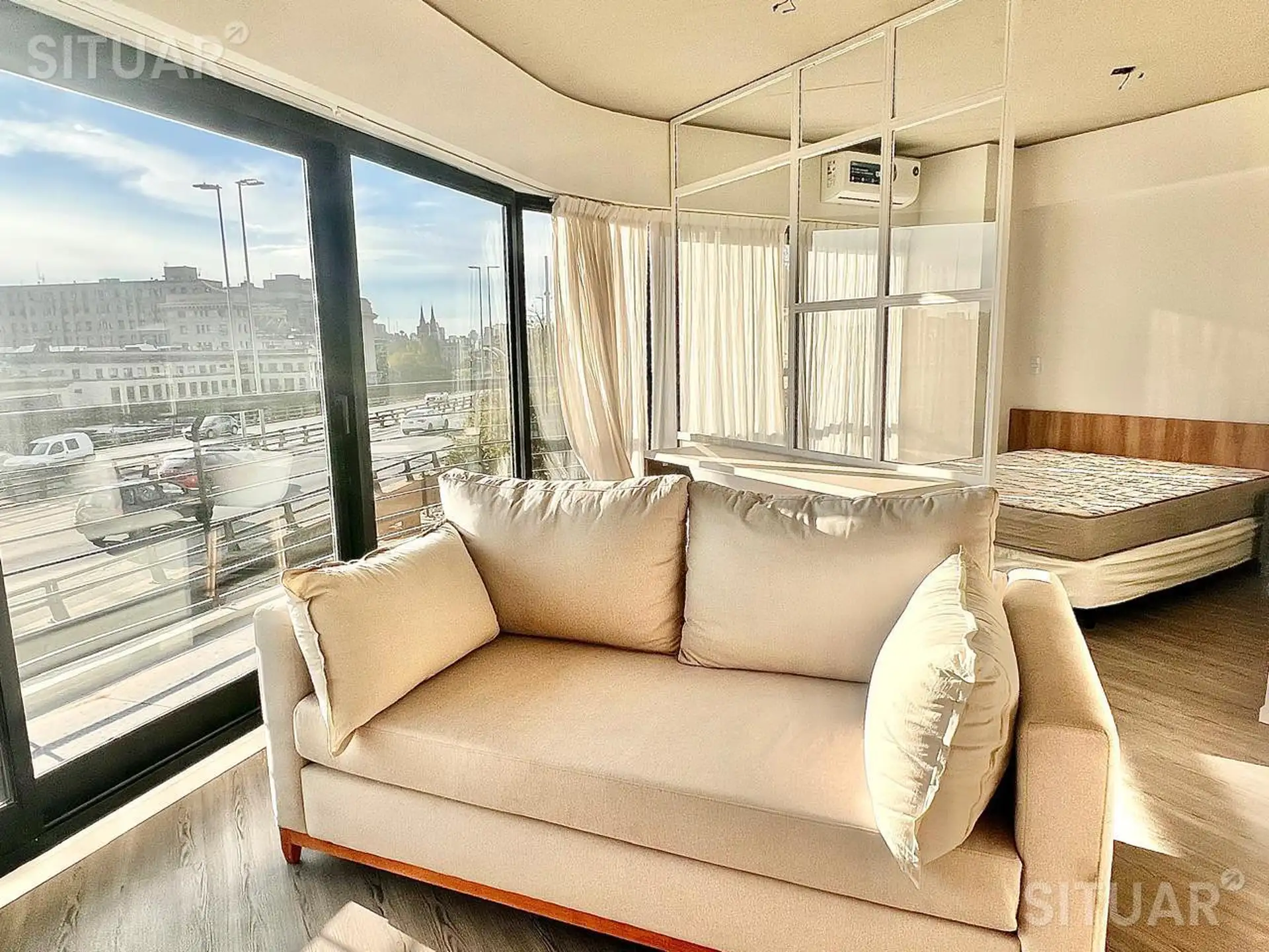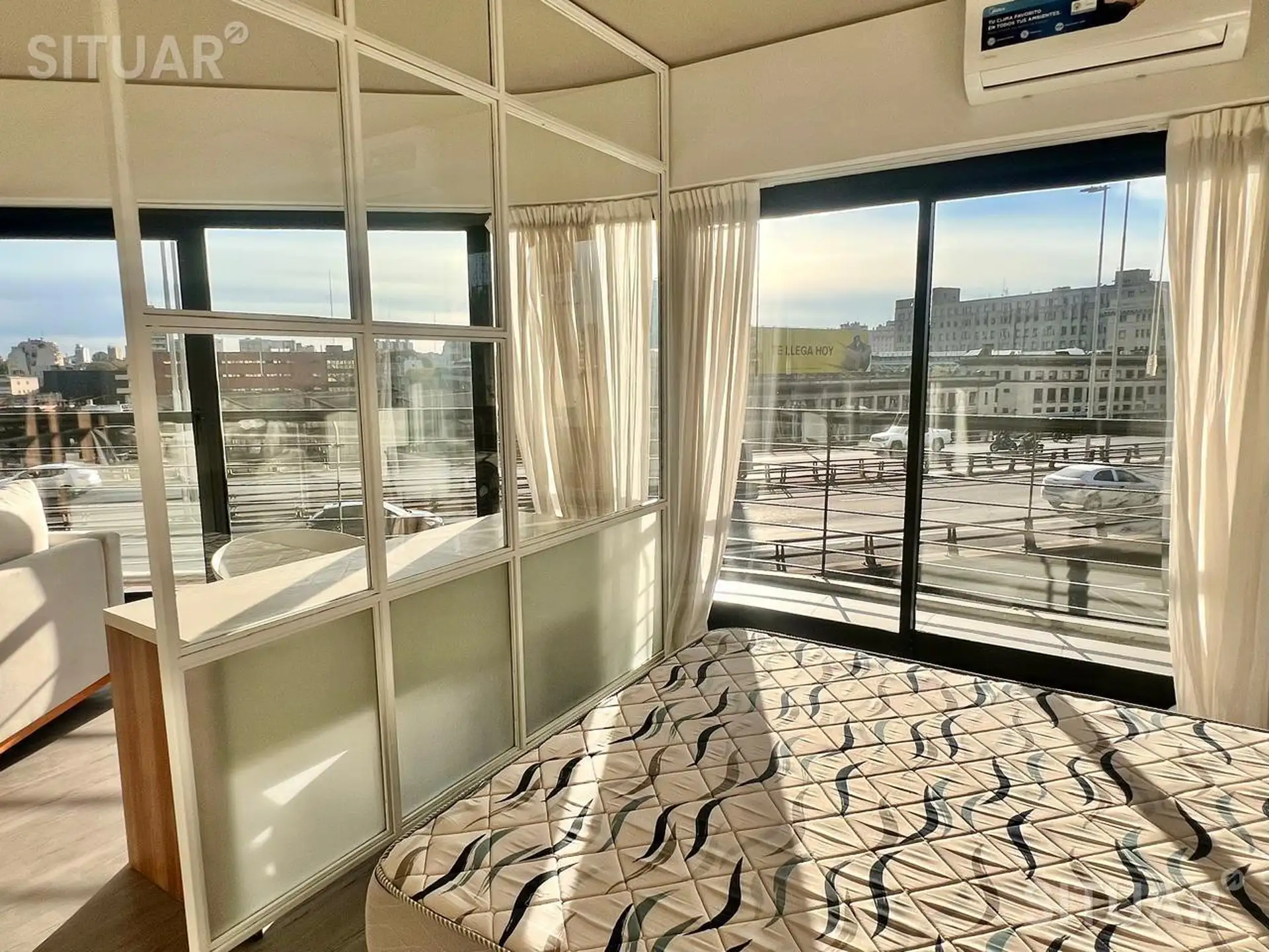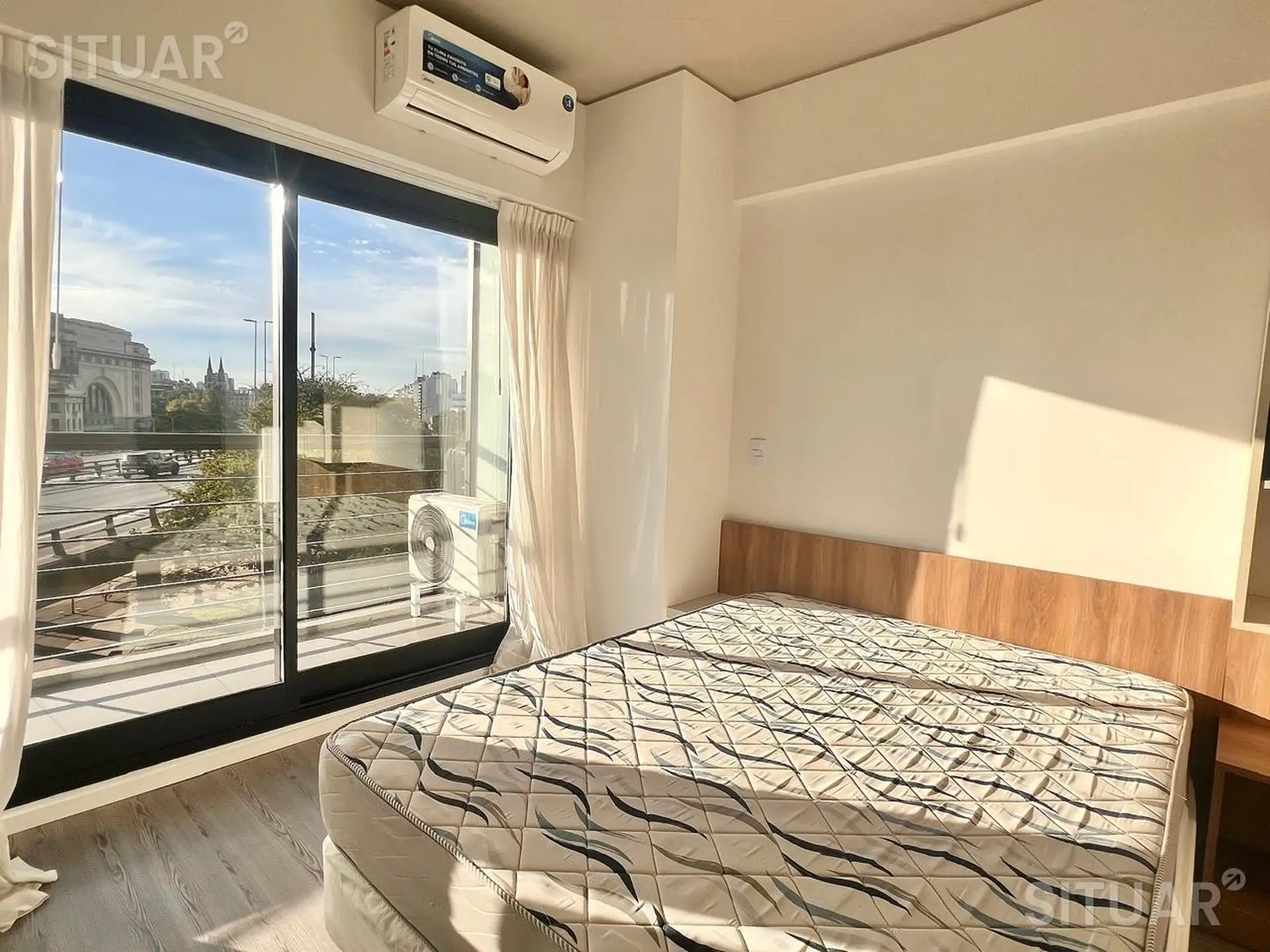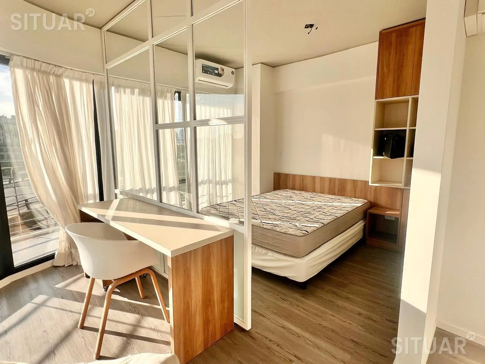Квартира-студия площадью почти 46 m² в Barracas, новая (никто не жил), с полунезависимой планировкой: зона гостиной-столовой, рабочее место, зона отдыха, интегрированная кухня и полноценная ванная. Окна выходят на открытый обзор; установлен удлинённый (короткий) балкон. С мебелью: диван, письменный стол, стол на 4 стула, кровать, встроенный шкаф и стеллажи. Также предусмотрены 2 сплит-кондиционера (холод/тепло). В здании работают охрана 24 часа и есть бассейн, солярий, общая гостиная для жильцов