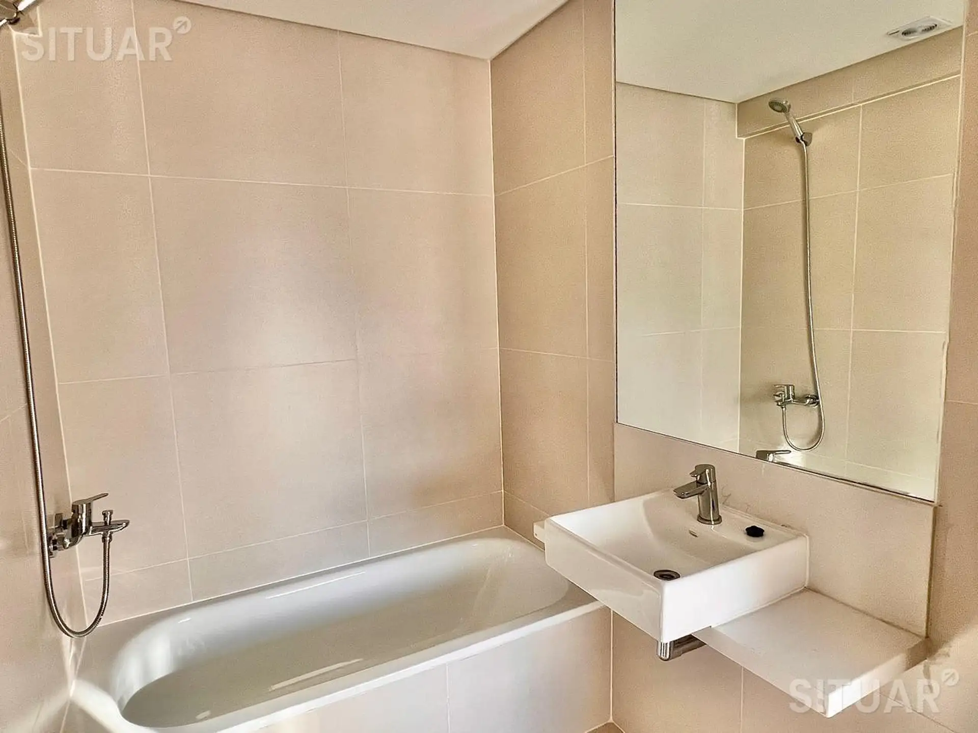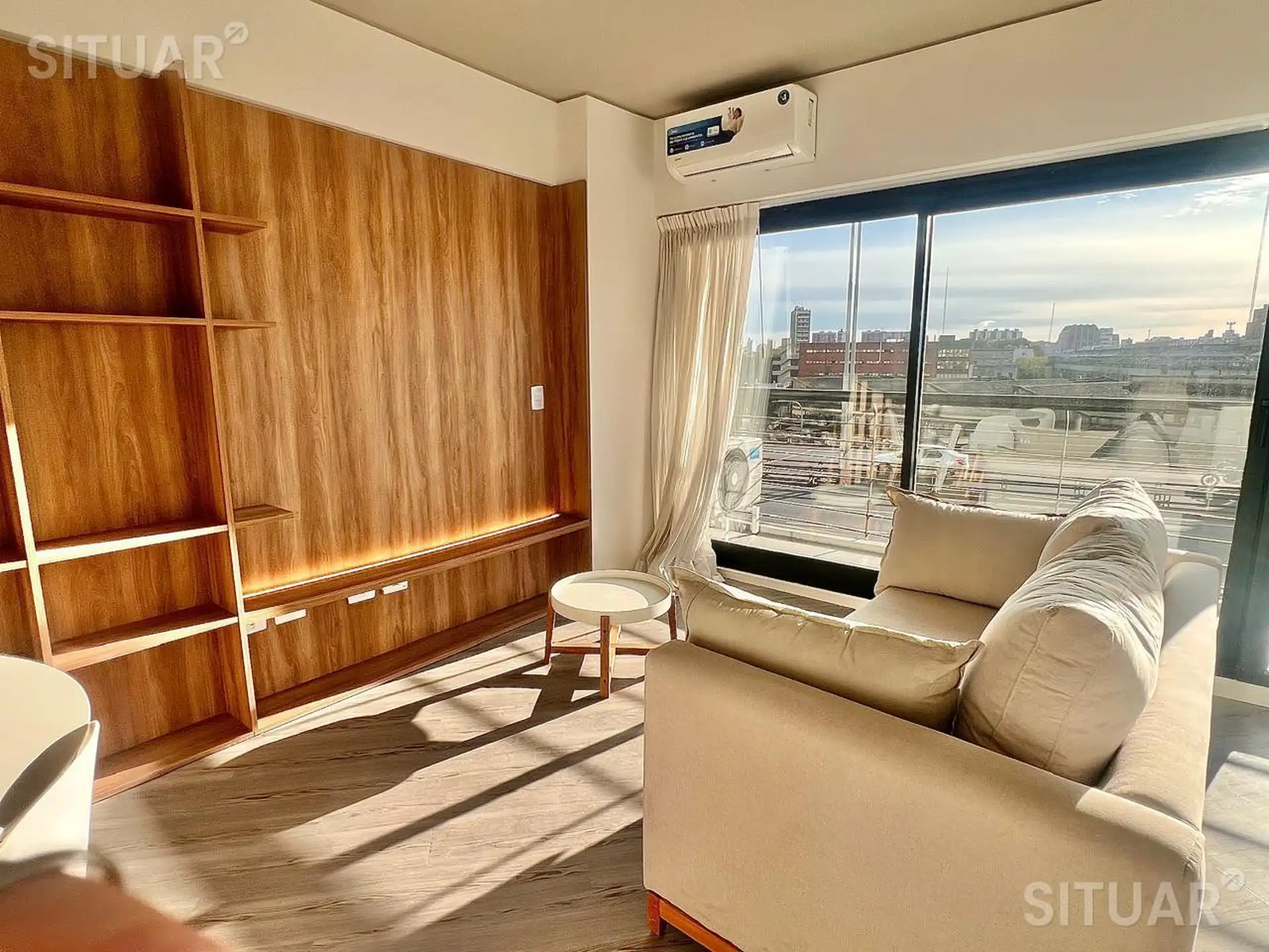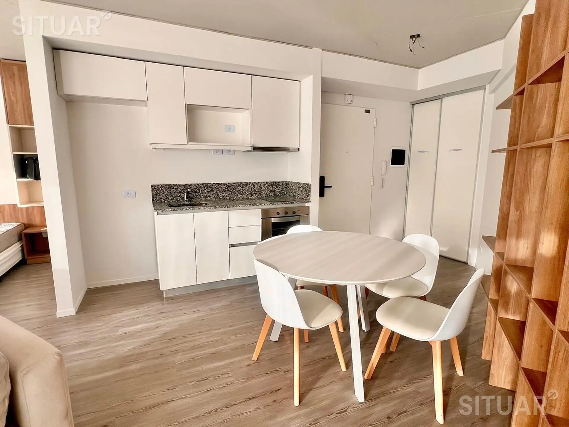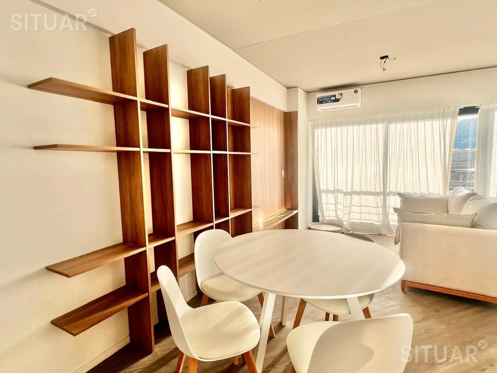 Квартира-студия площадью почти 46 m² в Barracas, новая (никто не жил), с полунезависимой планировкой: зона гостиной-столовой, рабочее место, зона отдыха, интегрированная кухня и полноценная ванная. Окна выходят на открытый обзор; установлен удлинённый (короткий) балкон. С мебелью: диван, письменный стол, стол на 4 стула, кровать, встроенный шкаф и стеллажи. Также предусмотрены 2 сплит-кондиционера (холод/тепло). В здании работают охрана 24 часа и есть бассейн, солярий, общая гостиная для жильцов