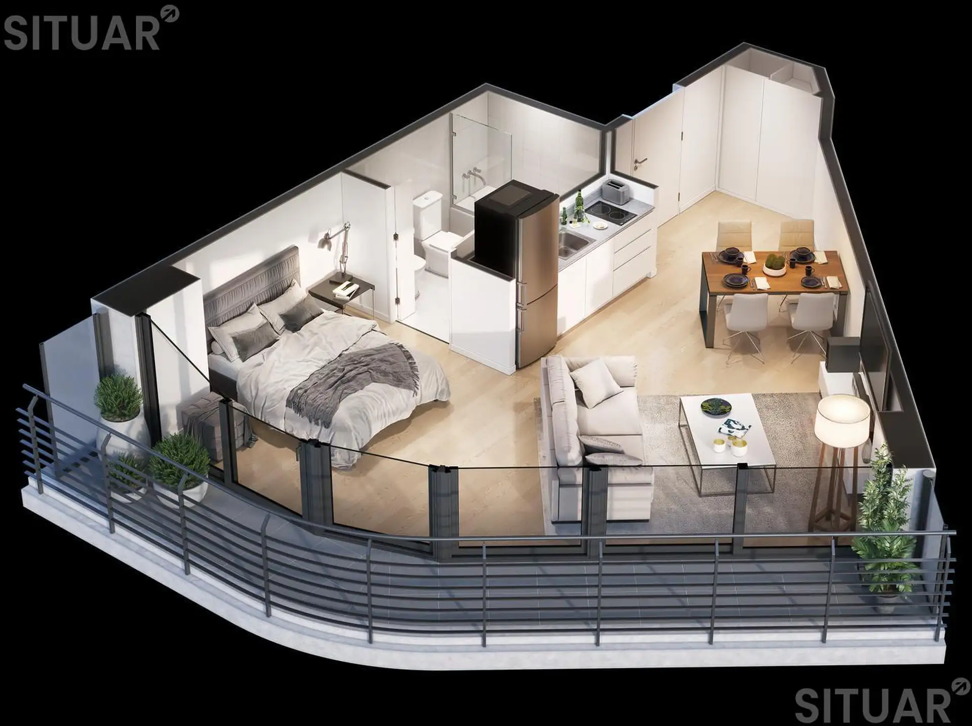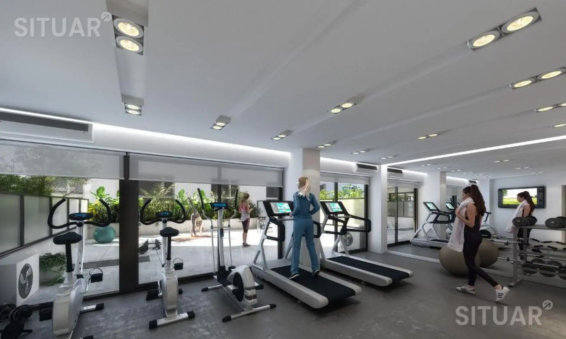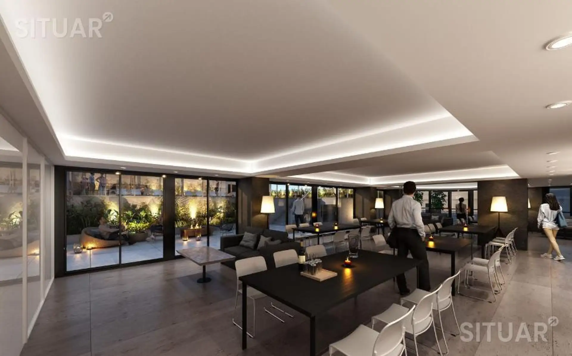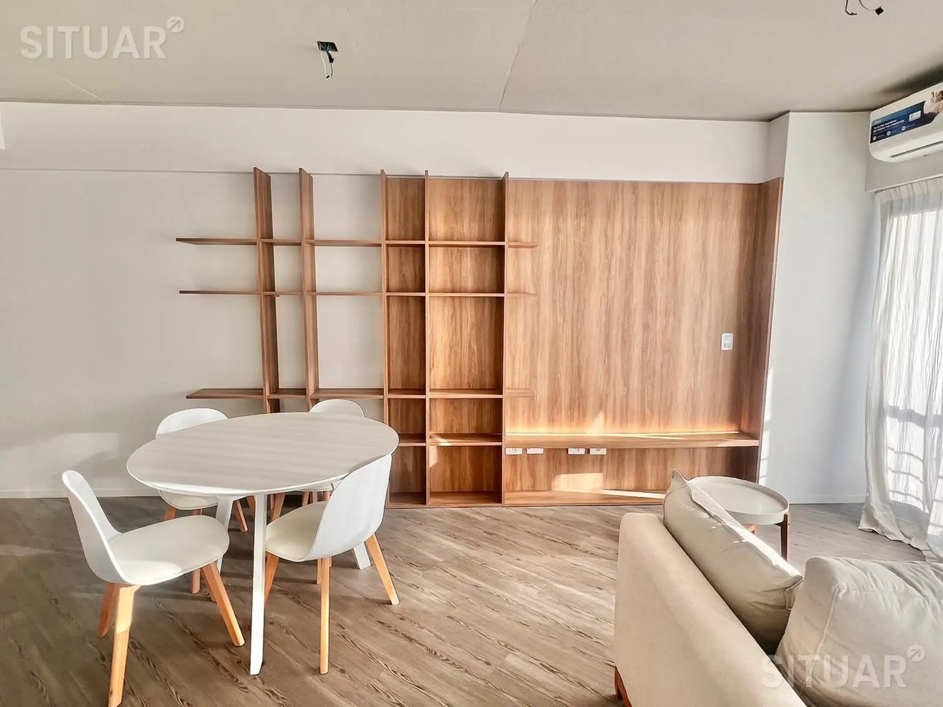 Квартира-студия площадью почти 46 m² в Barracas, новая (никто не жил), с полунезависимой планировкой: зона гостиной-столовой, рабочее место, зона отдыха, интегрированная кухня и полноценная ванная. Окна выходят на открытый обзор; установлен удлинённый (короткий) балкон. С мебелью: диван, письменный стол, стол на 4 стула, кровать, встроенный шкаф и стеллажи. Также предусмотрены 2 сплит-кондиционера (холод/тепло). В здании работают охрана 24 часа и есть бассейн, солярий, общая гостиная для жильцов