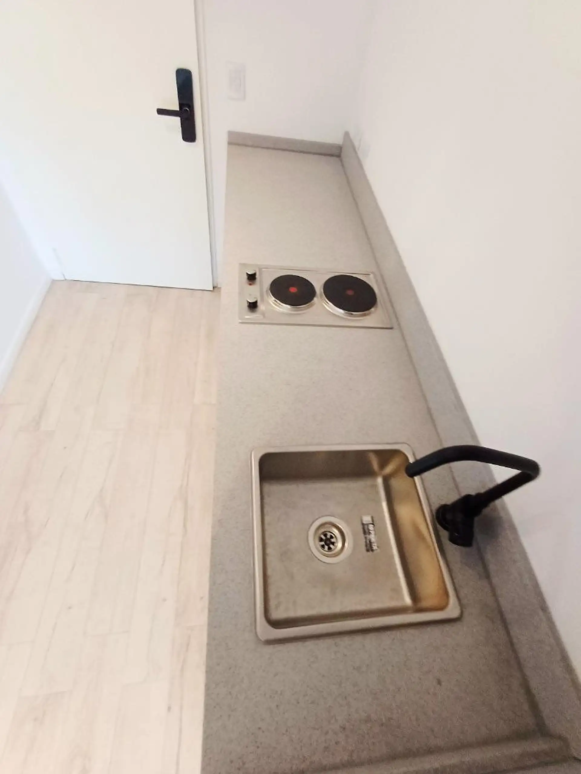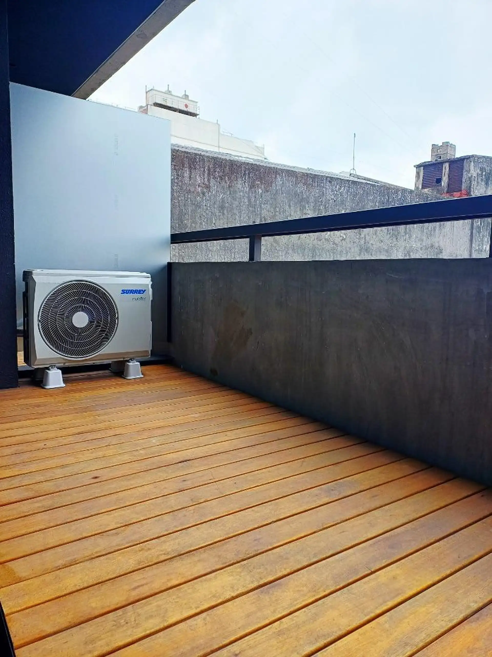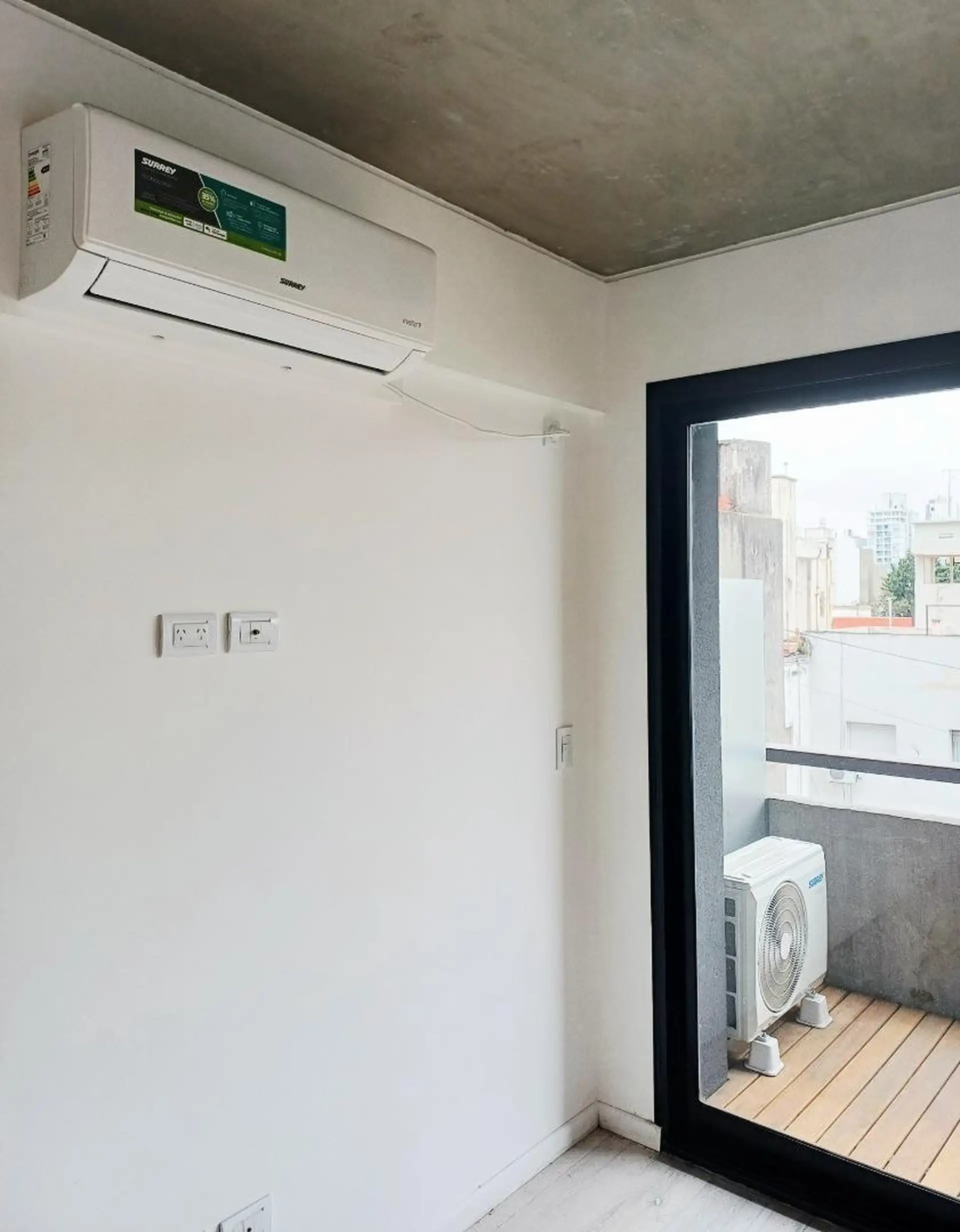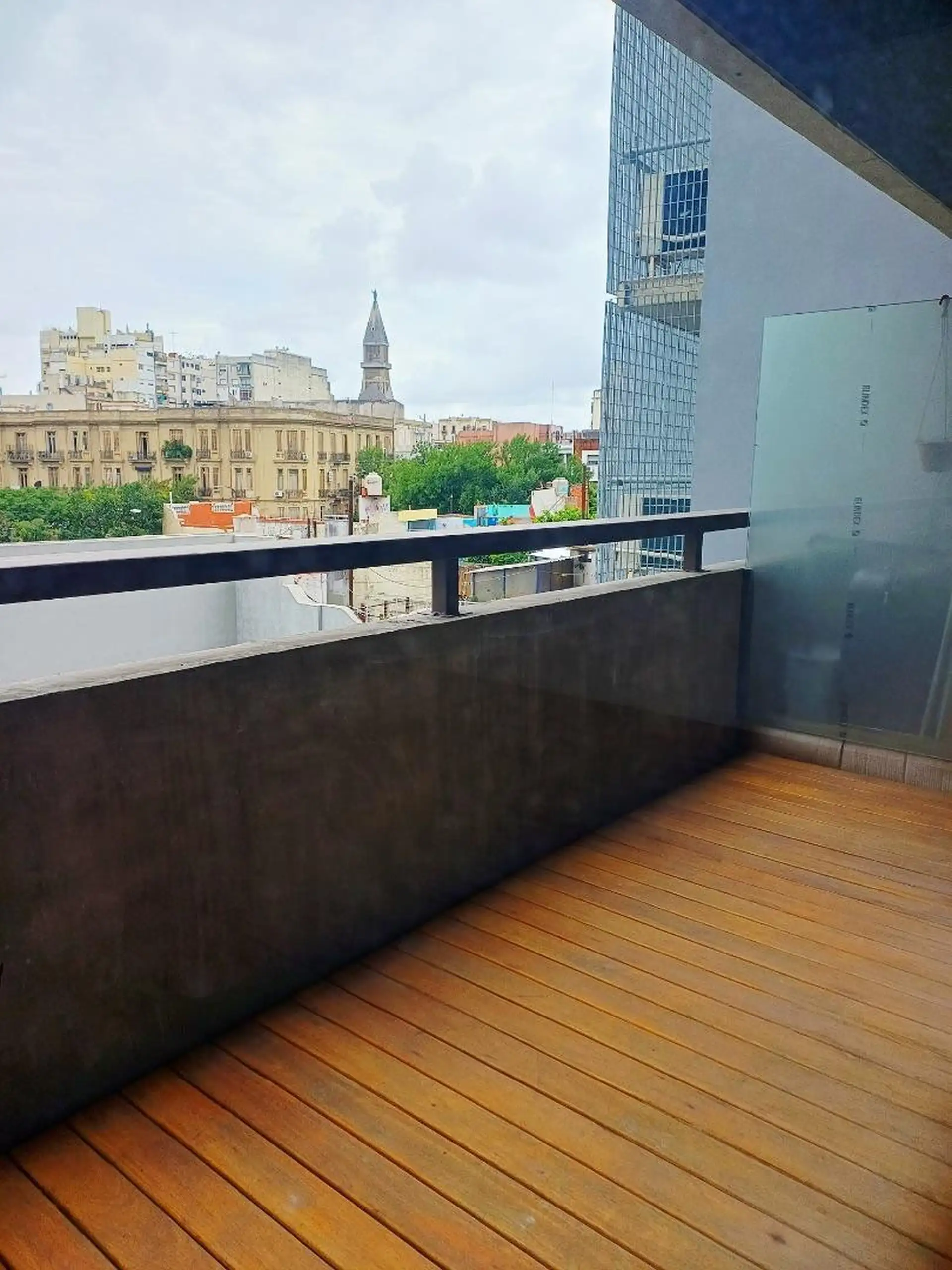 Квартира-студия новая, 40 m² общих, окна во двор (contrafrente). Полы из керамогранита под дерево, в кухонной зоне установлен anafe с двумя конфорками. В ванной полный комплект с душевой лейкой, предусмотрен сплит холод/тепло. Есть балкон с настилом (decks) с ориентацией на восток. В здании: бассейн на 15-м этаже с солярием и душевыми, прачечная на 15-м этаже, общая гостиная (SUM) на 15-м этаже, тренажёрный зал на первом полуподвальном уровне с естественным светом, пространство для Cowork на пер