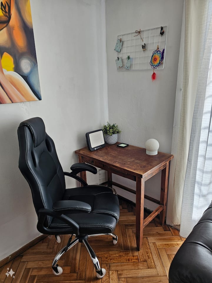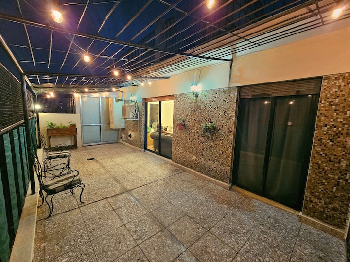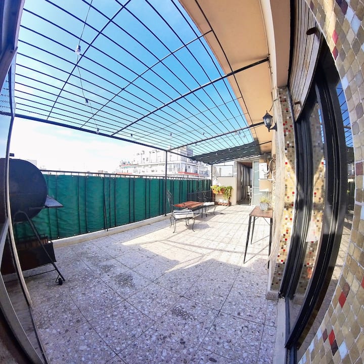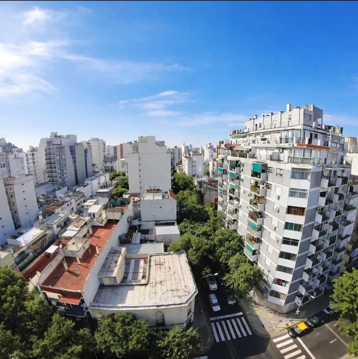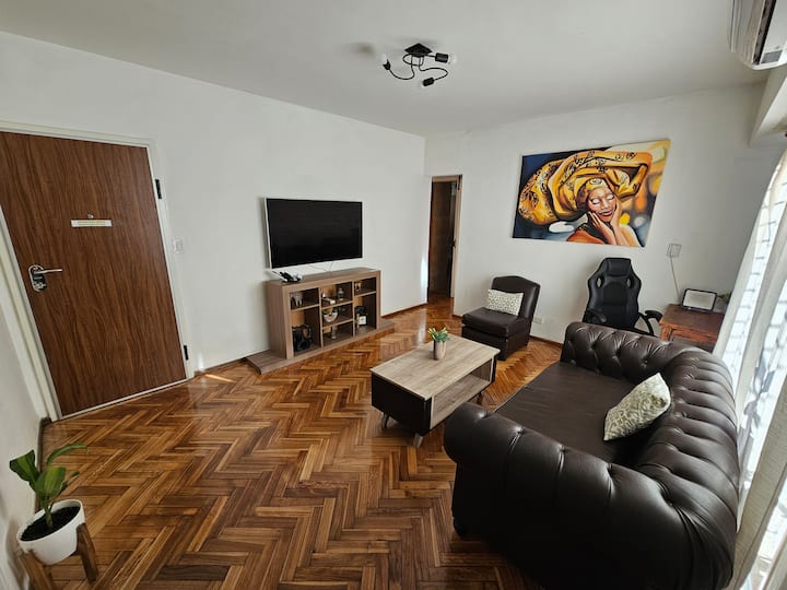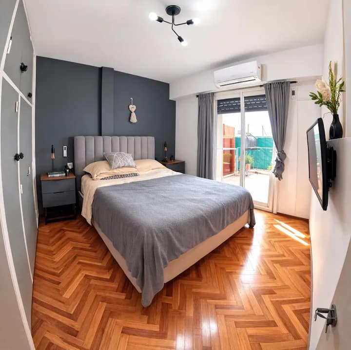 Квартира с 2 спальнями в Constitución. В комнатах и в гостиной установлено телевидение; есть интернет с оптоволокном 300 Мбит/с и кондиционеры. Большая терраса с балконом. Указаны расстояния до Национального конгресса (4 мин, 1,6 км), площади устья (10 мин, 4,8 км), Av corrientes (6 мин, 2,2 км) и San Telmo (5 мин, 2 км). Предусмотрены гибкое заселение и набор для приветствия с инфузиями.