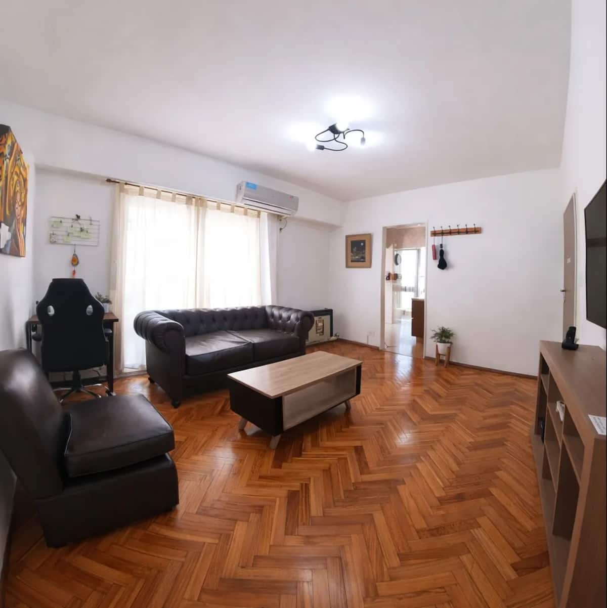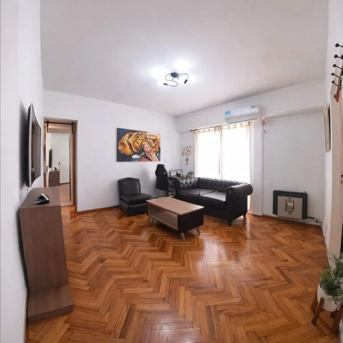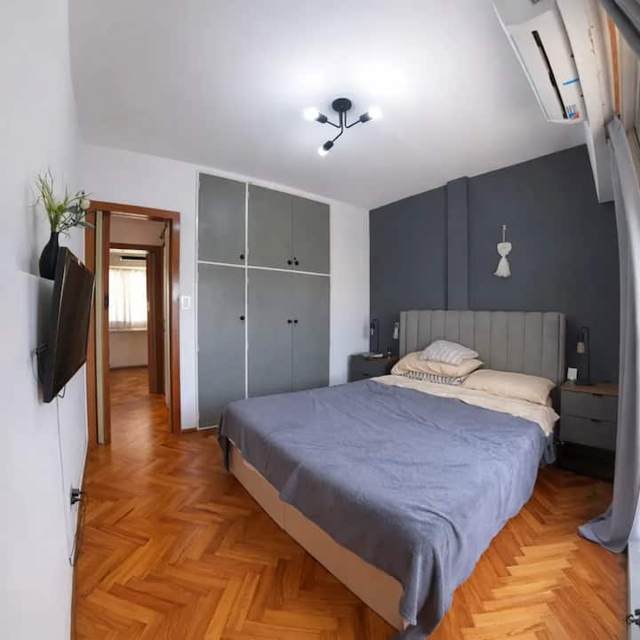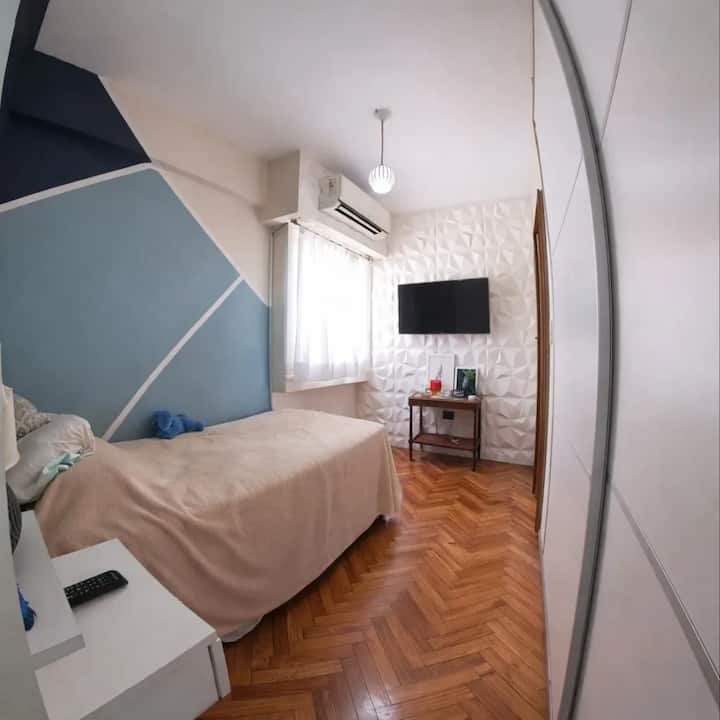 Квартира с 2 спальнями в Constitución. В комнатах и в гостиной установлено телевидение; есть интернет с оптоволокном 300 Мбит/с и кондиционеры. Большая терраса с балконом. Указаны расстояния до Национального конгресса (4 мин, 1,6 км), площади устья (10 мин, 4,8 км), Av corrientes (6 мин, 2,2 км) и San Telmo (5 мин, 2 км). Предусмотрены гибкое заселение и набор для приветствия с инфузиями.