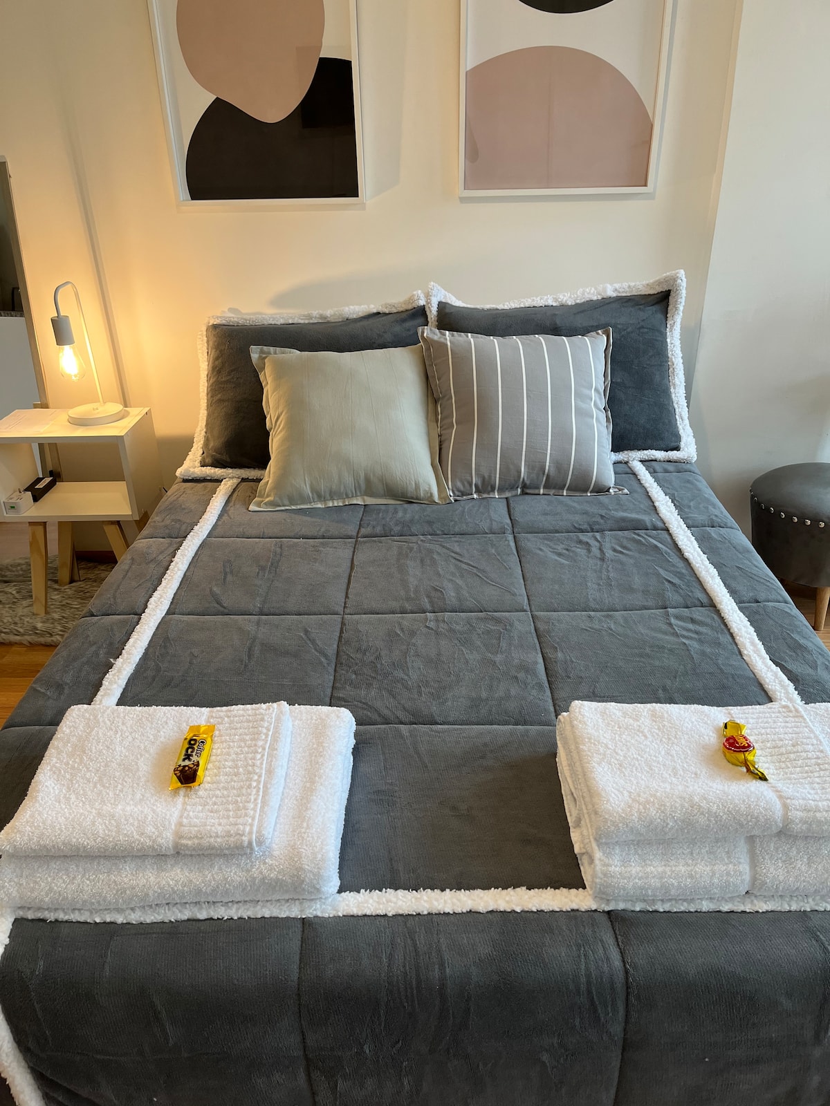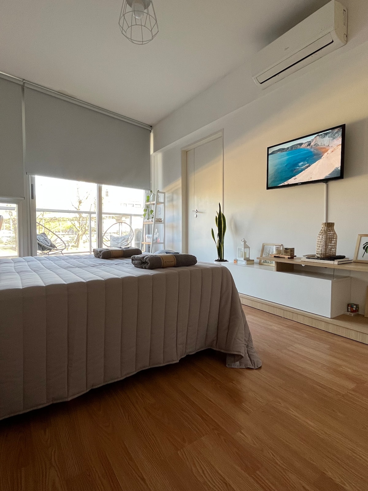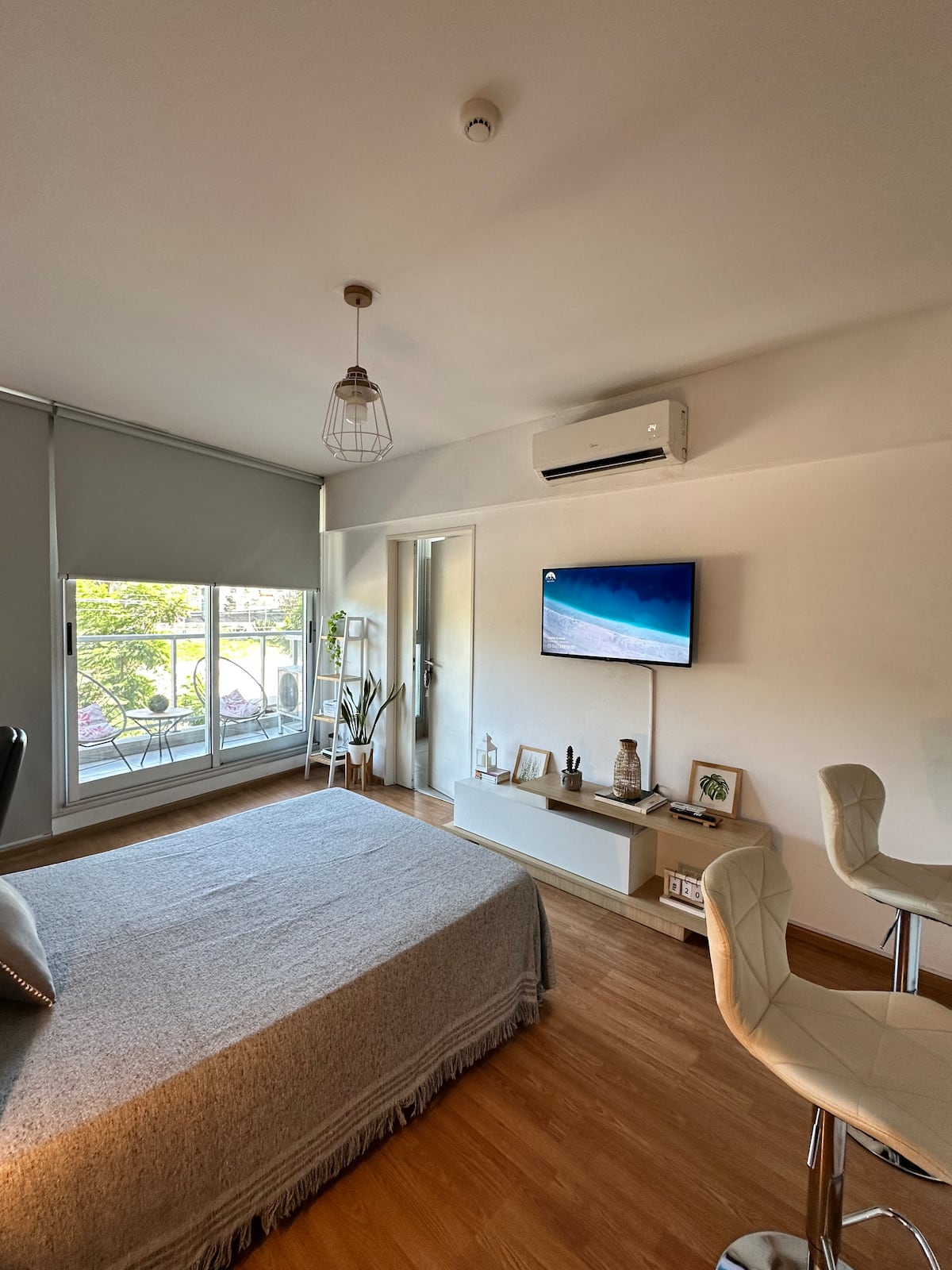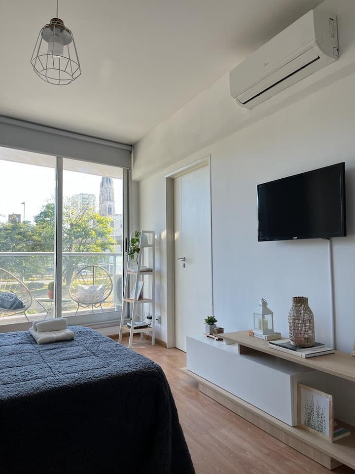 Квартира в Constitución с 2 спальнями. 13-этажная башня в современном минималистском стиле с круглосуточной охраной. Есть терраса с видом на город, зона гриля и прачечная. Кухня с барной стойкой для завтрака оборудована духовкой, электрочайником, керамической варочной панелью, холодильником с морозильной камерой и тостером. В спальной зоне двуспальная кровать, телевизор 40" Smart TV с Android, гардероб. В ванной — ванна, душевая перегородка, душ; указано отличное давление воды. Предоставляются п