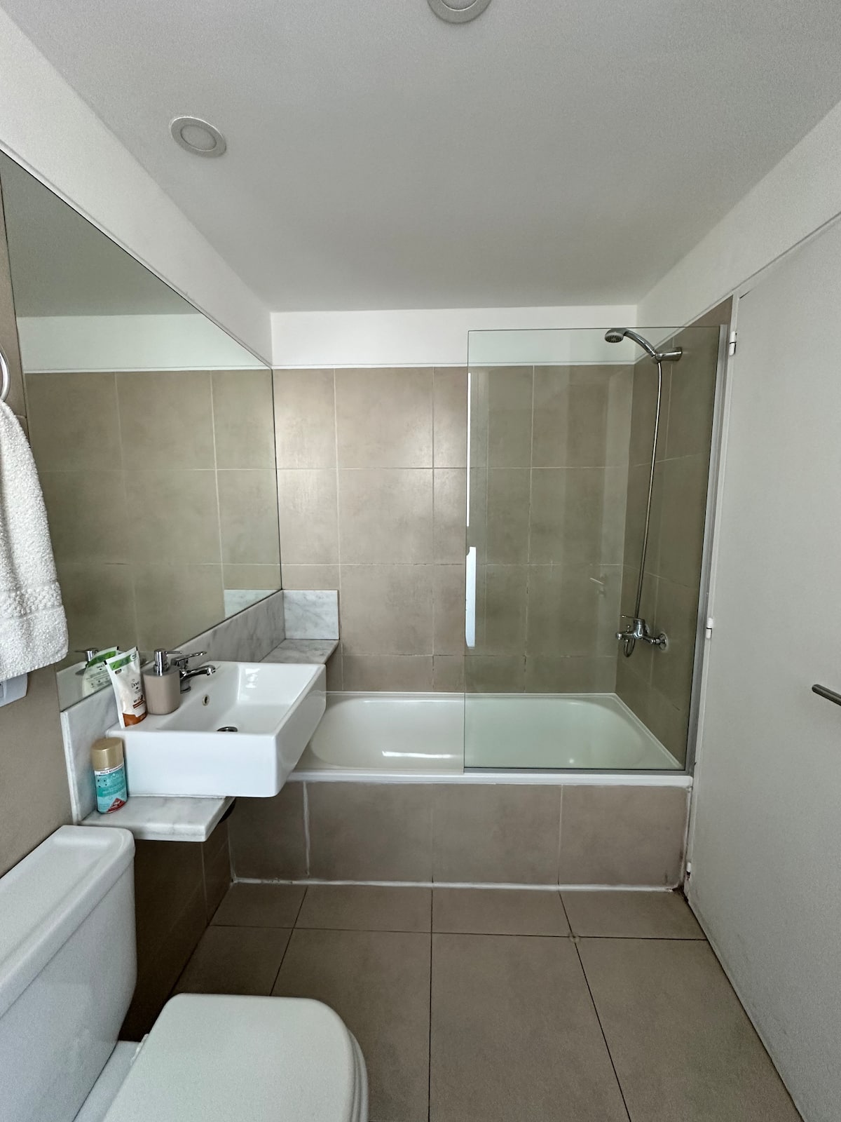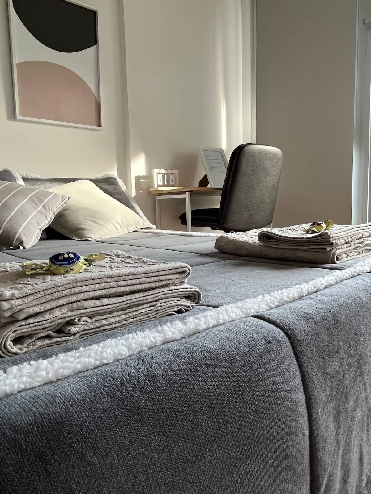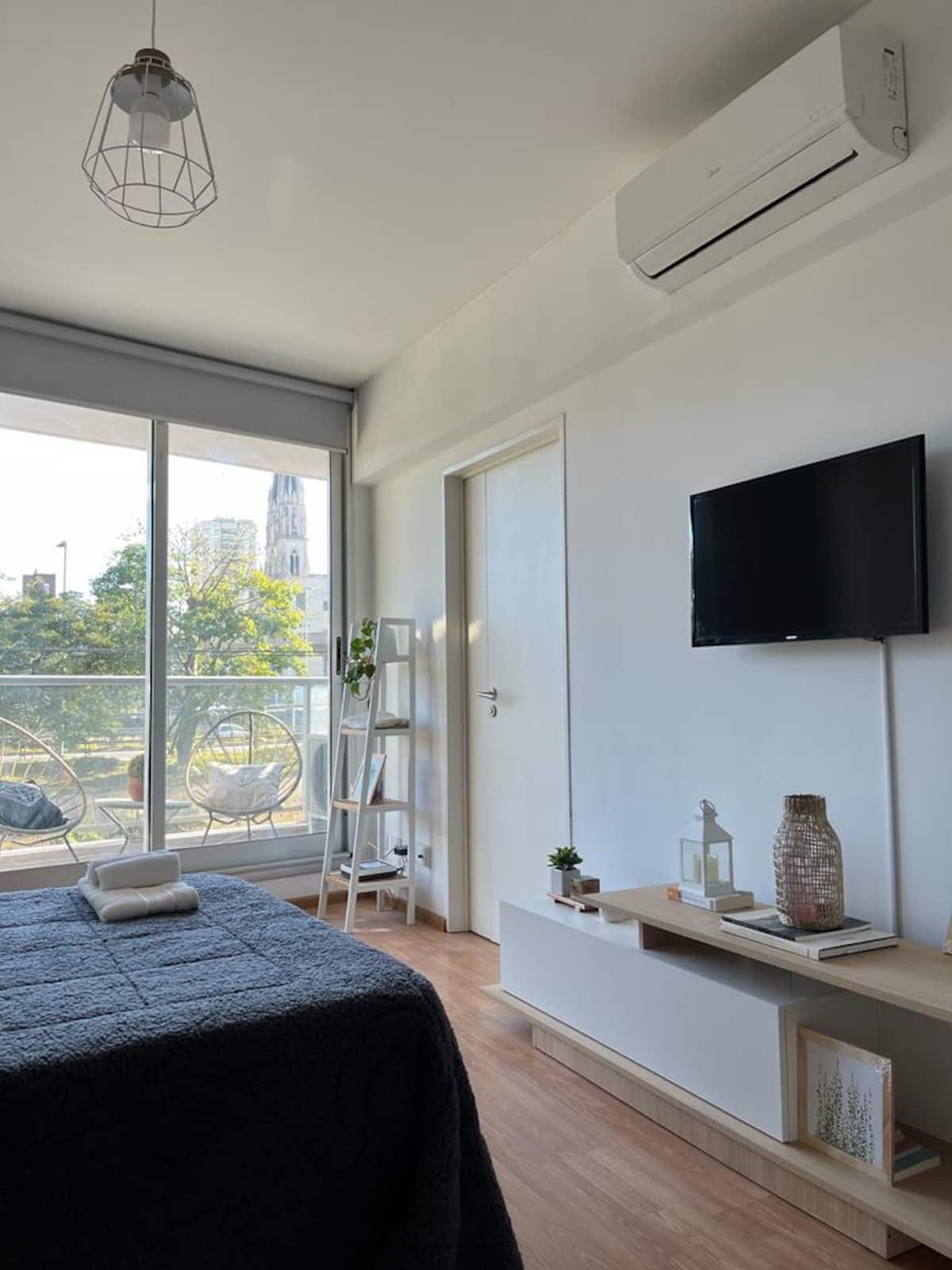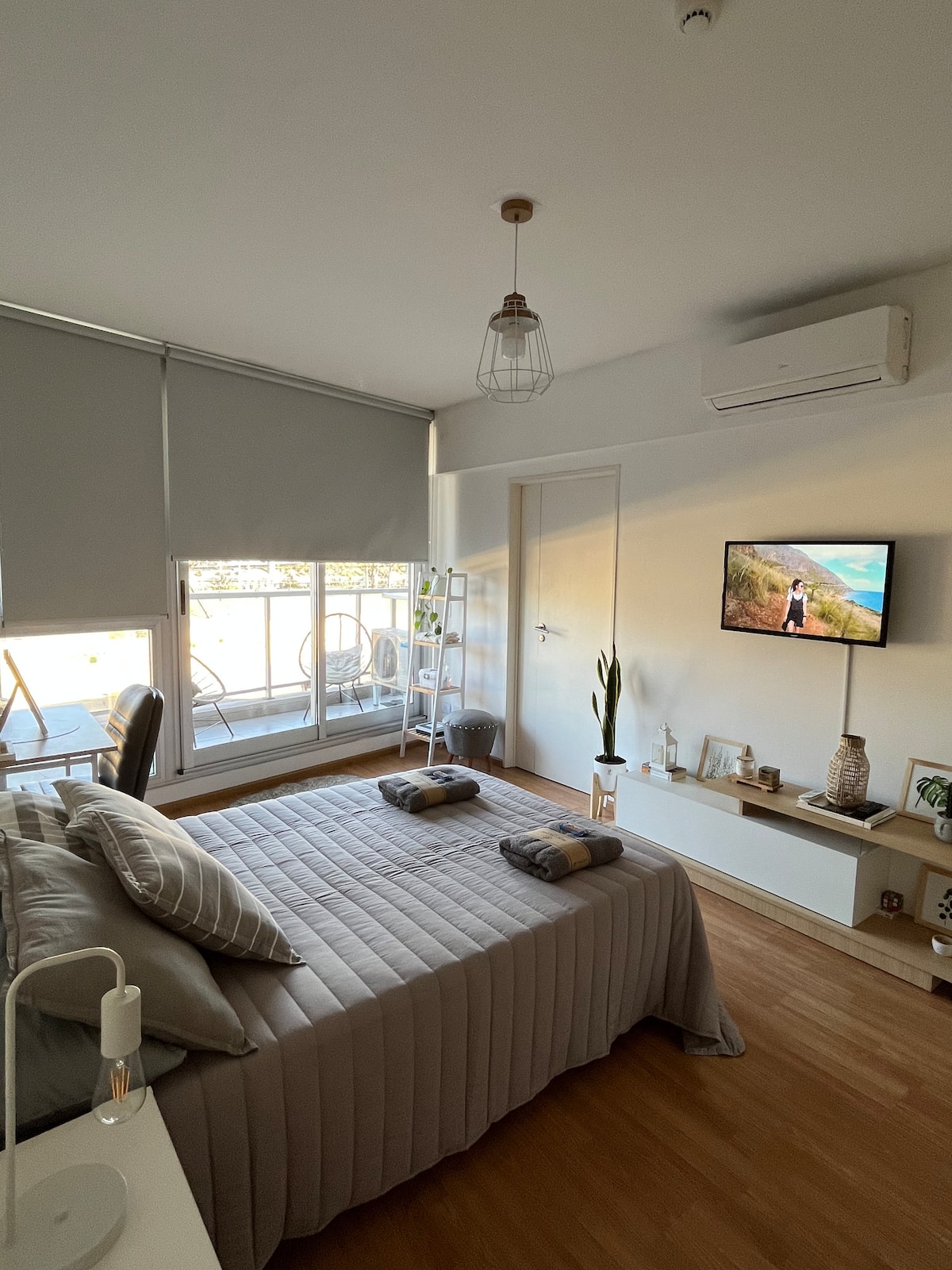 Квартира в Constitución с 2 спальнями. 13-этажная башня в современном минималистском стиле с круглосуточной охраной. Есть терраса с видом на город, зона гриля и прачечная. Кухня с барной стойкой для завтрака оборудована духовкой, электрочайником, керамической варочной панелью, холодильником с морозильной камерой и тостером. В спальной зоне двуспальная кровать, телевизор 40" Smart TV с Android, гардероб. В ванной — ванна, душевая перегородка, душ; указано отличное давление воды. Предоставляются п