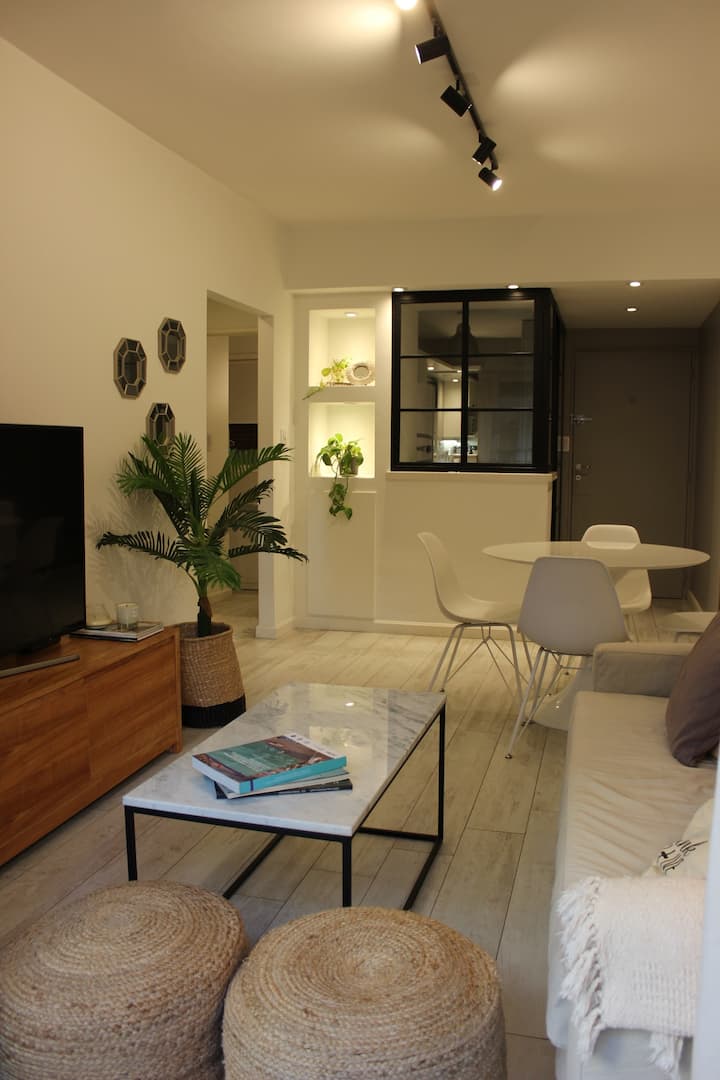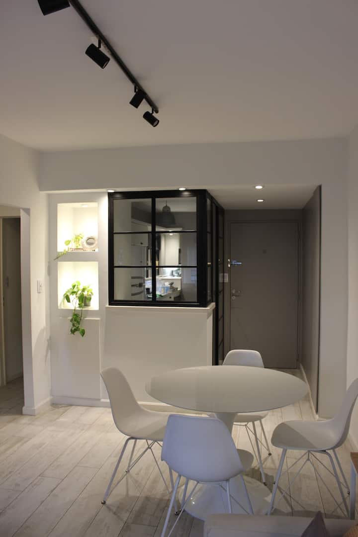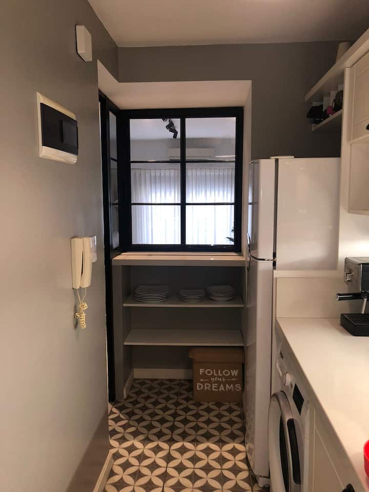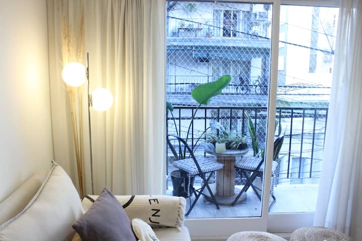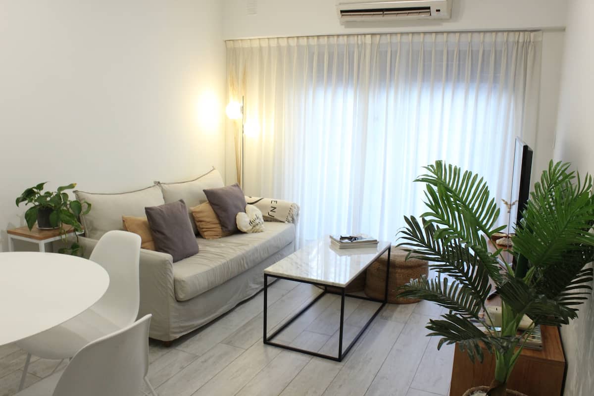 Квартира в Flores на Bonifacio, 3 комнаты, окна на улицу. Есть балкон. Квартира оборудована полностью: плита с электрической духовкой, холодильник, стирально-сушильная машина, микроволновая печь, кофемашина, чайник и тостер, телевизоры, кондиционер; предусмотрены кабель и WiFi. Парковка на улице. Варианты общественного транспорта включают Subway A, станция Carabobo (5 кварталов), а также автобусные линии на Av Rivadavia и Av Directorio. Квартира оснащена посудой и кухонными принадлежностями, пос