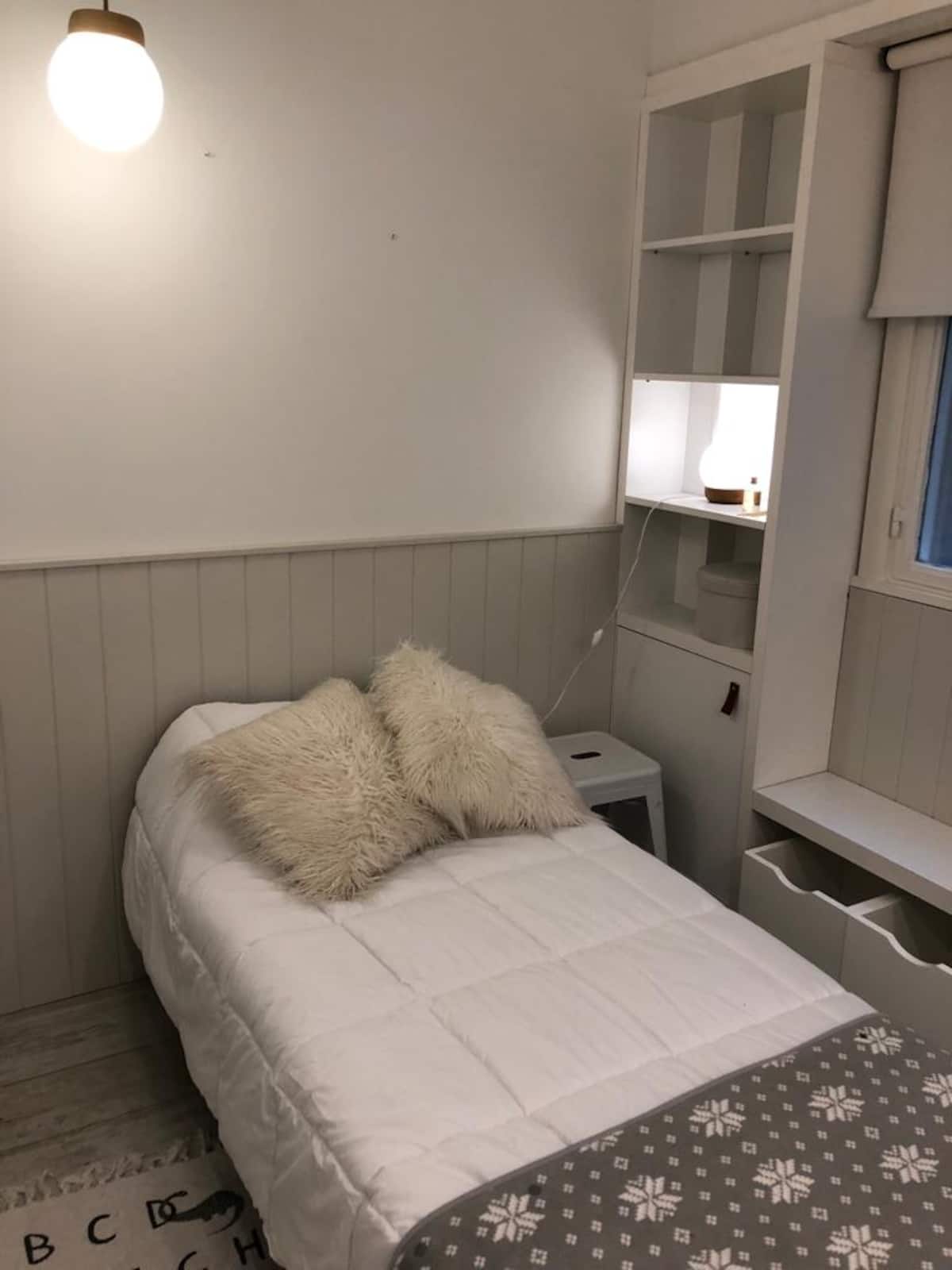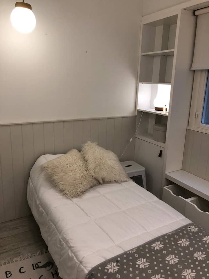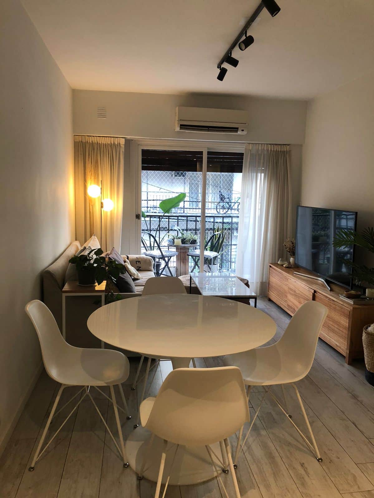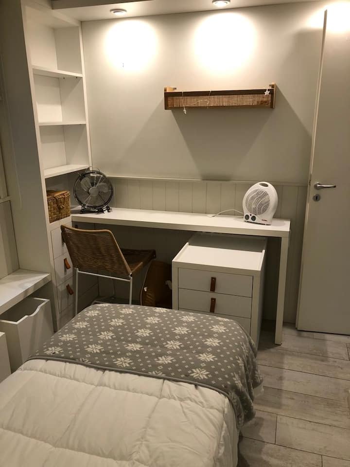 Квартира в Flores на Bonifacio, 3 комнаты, окна на улицу. Есть балкон. Квартира оборудована полностью: плита с электрической духовкой, холодильник, стирально-сушильная машина, микроволновая печь, кофемашина, чайник и тостер, телевизоры, кондиционер; предусмотрены кабель и WiFi. Парковка на улице. Варианты общественного транспорта включают Subway A, станция Carabobo (5 кварталов), а также автобусные линии на Av Rivadavia и Av Directorio. Квартира оснащена посудой и кухонными принадлежностями, пос
