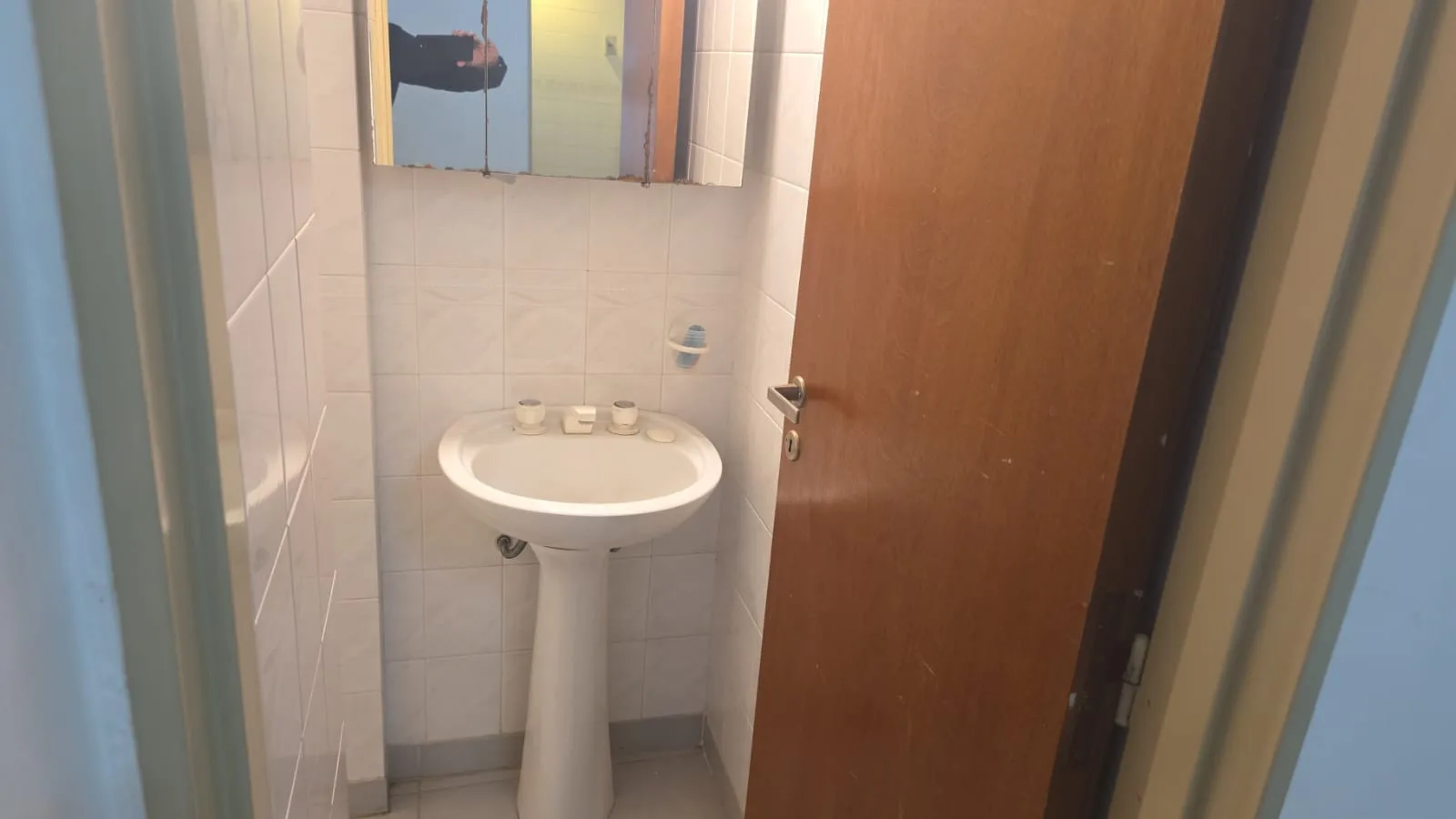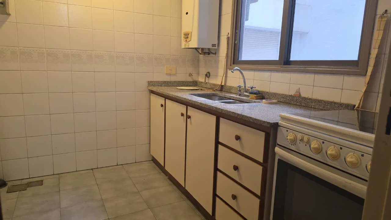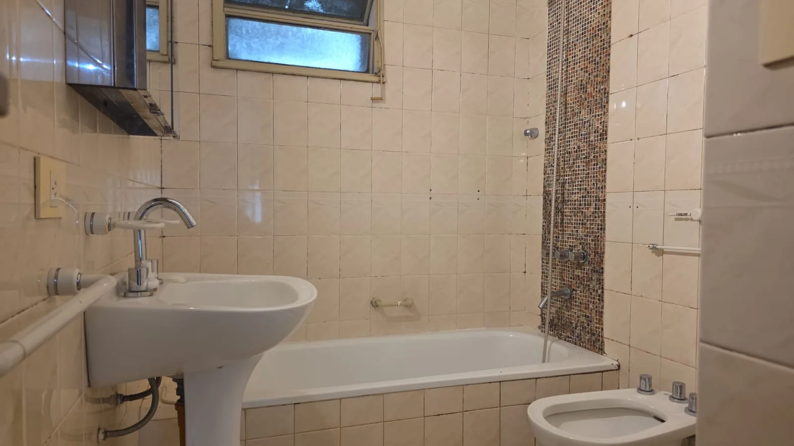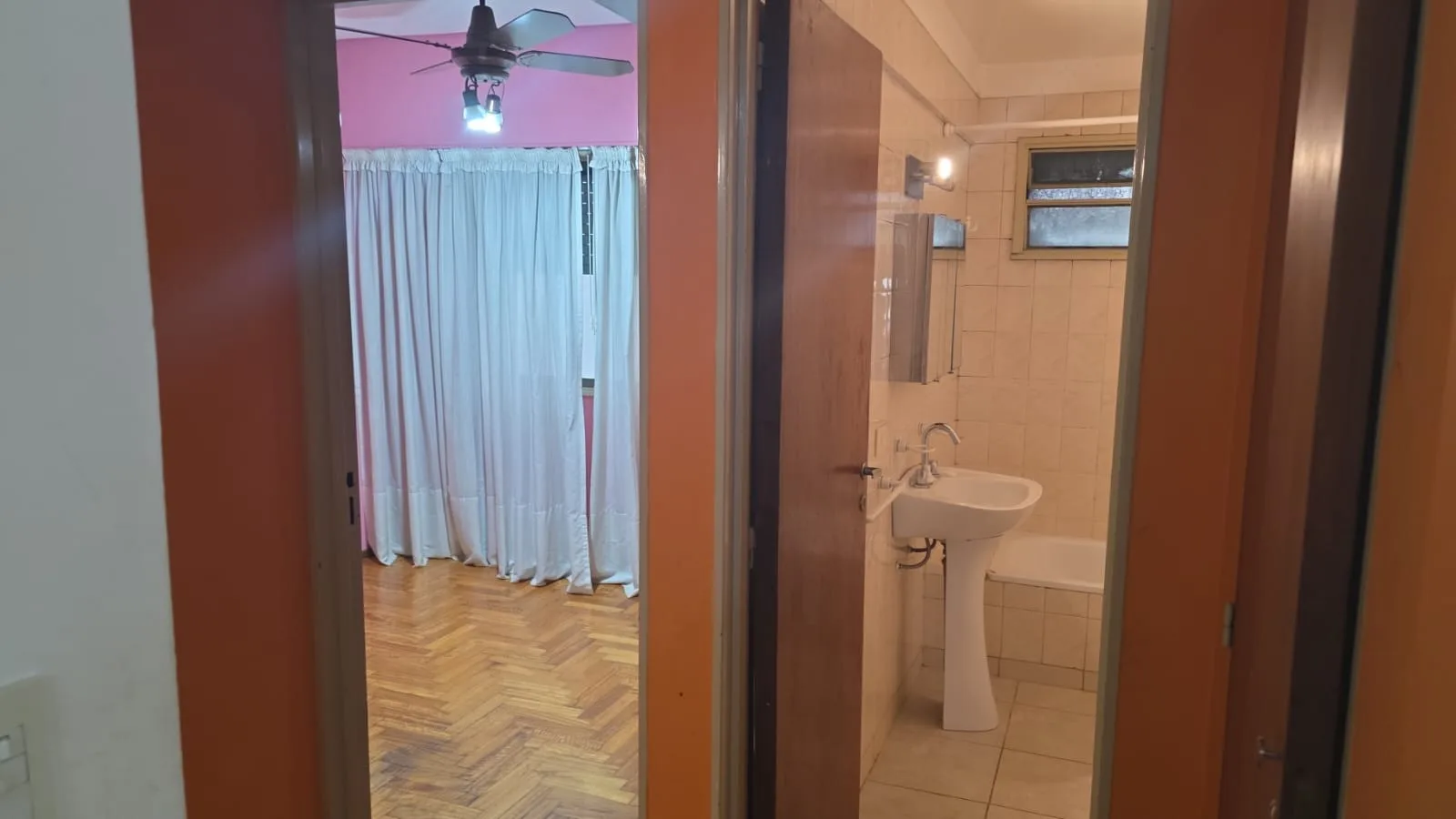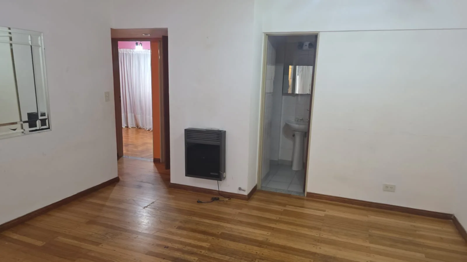 Квартира с 3 комнатами, внутренний боковой вариант, окна во двор. Площадь не указана. Жилая зона включает гостиную-столовую; обед в гостиной, обеденная зона также в кухне. В кухне предусмотрено место для стиральной машины и есть постирочная, установлены кондиционер в гостиной. Планировка: 2 спальни, ванная комната и 1 туалет, холл. Коммунальные платежи здания: $ 9250. Рядом станция Florida FFCC Bme Mitre.