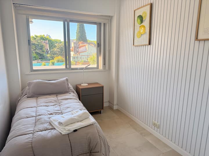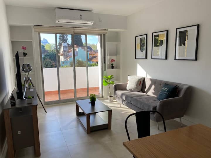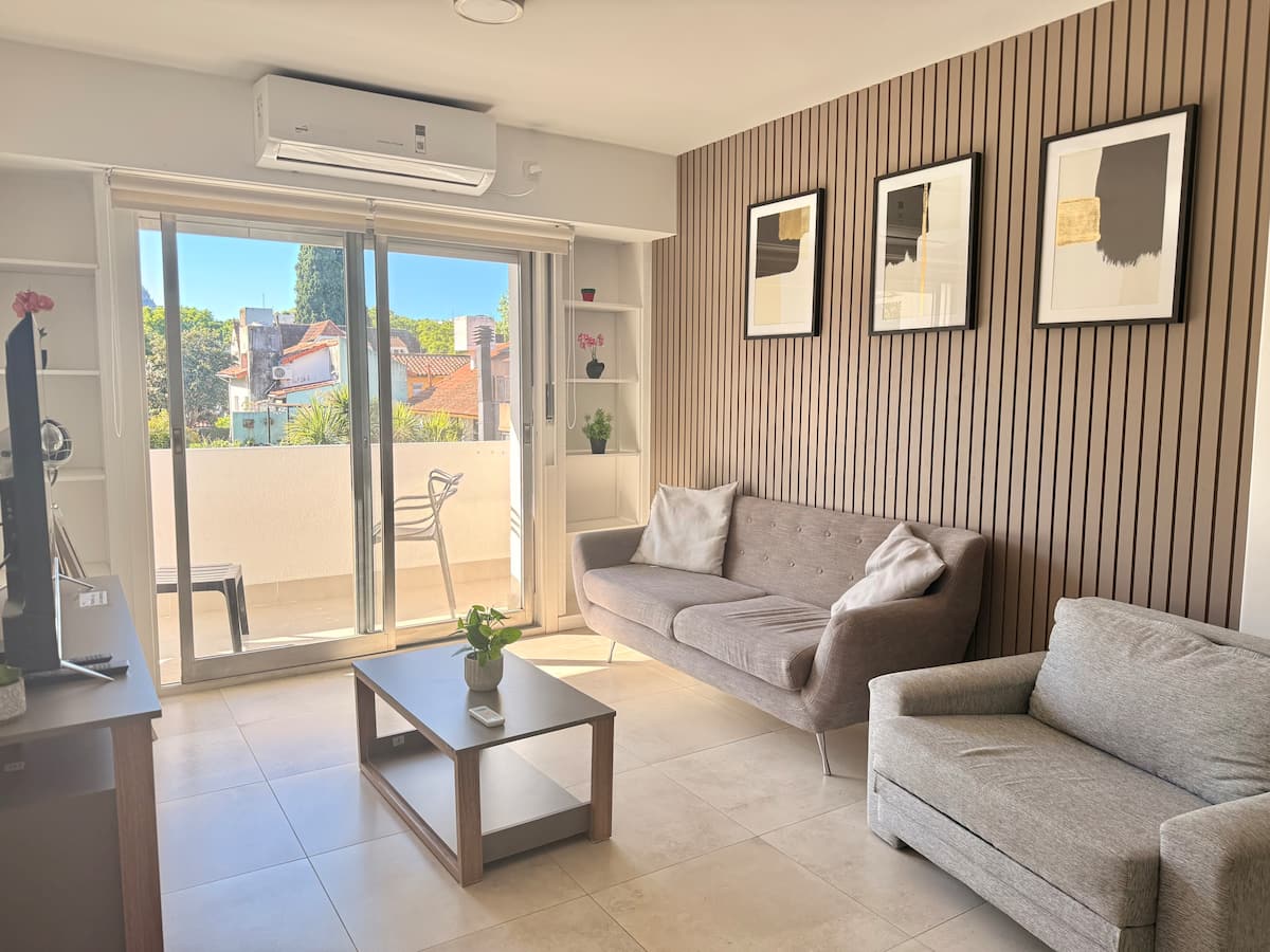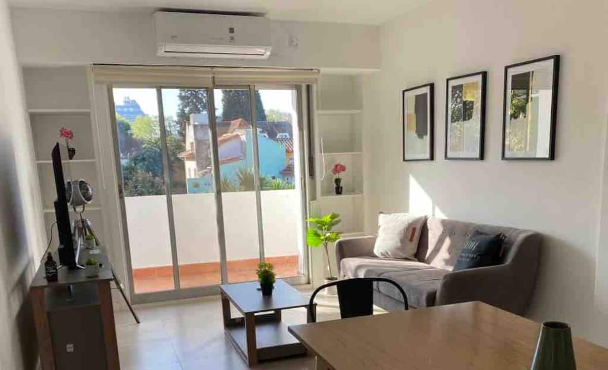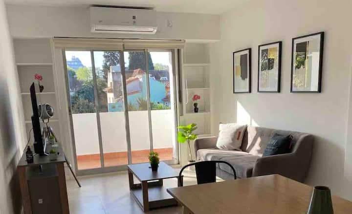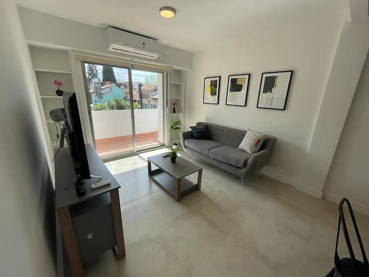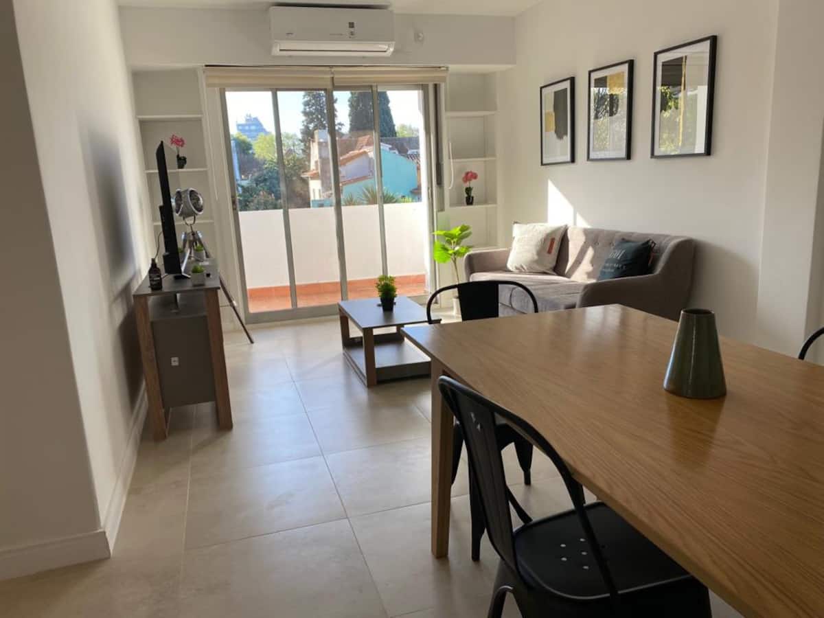 Квартира в Florida с тремя комнатами (2 спальни и гостиная), площадью не указано. Сообщается, что жильё оборудовано новой техникой. Окна выходят на вид; этаж 2, доступ по лестнице. Указано, что здание расположено на пересечении Roca и Valle Grande, в районе Vicente López, в 5 кварталах от железнодорожной станции; парковка зависит от наличия.