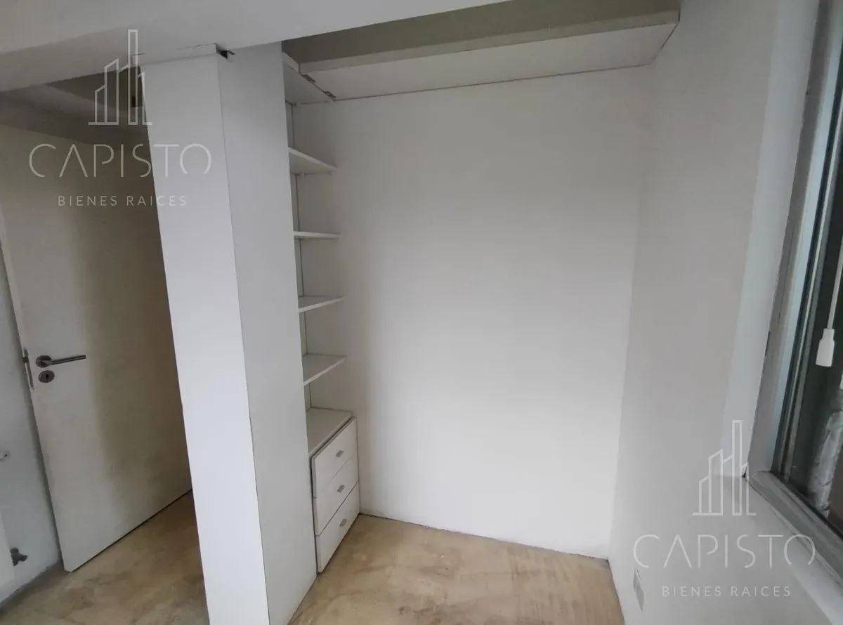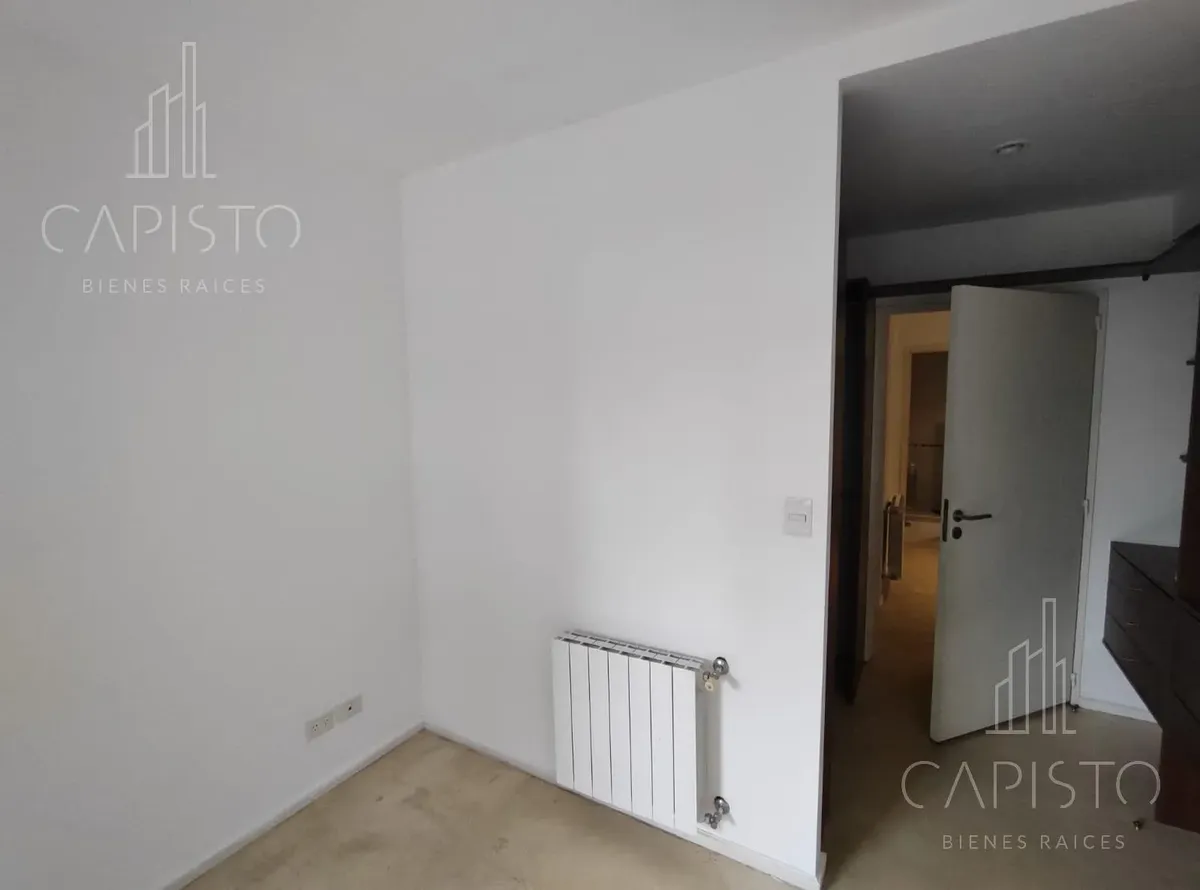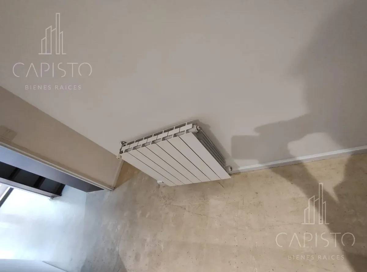 Квартира в General San Martín, 2 спальни и гостиная (3 ambientes) на первом этаже в здании без лифта, вход по лестнице. Площадь в объявлении не указана. Есть кухня с «островом», спальня с ванной комнатой и гардеробной, также предусмотрены ванная и отдельное помещение перед ванной. Центральное отопление радиаторами и кондиционер в спальне и гостиной. Коммунальные платежи здания: 30.000 (включая AYSA). Доступна с января 2026.