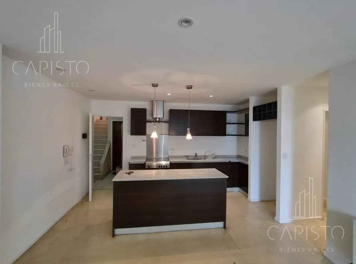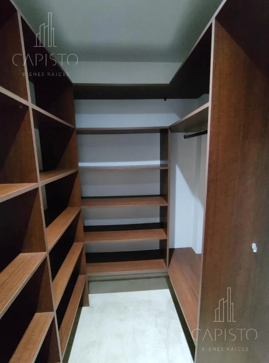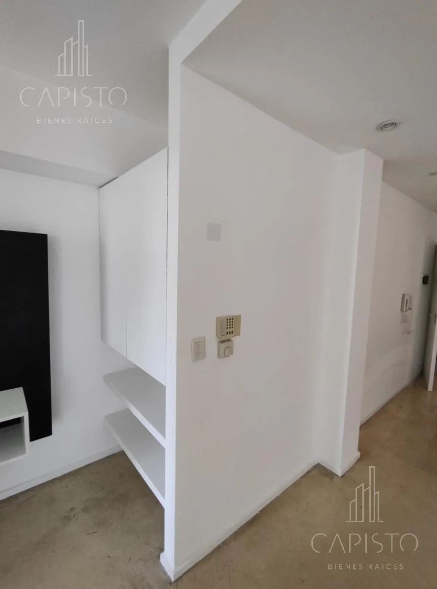 Квартира в General San Martín, 2 спальни и гостиная (3 ambientes) на первом этаже в здании без лифта, вход по лестнице. Площадь в объявлении не указана. Есть кухня с «островом», спальня с ванной комнатой и гардеробной, также предусмотрены ванная и отдельное помещение перед ванной. Центральное отопление радиаторами и кондиционер в спальне и гостиной. Коммунальные платежи здания: 30.000 (включая AYSA). Доступна с января 2026.