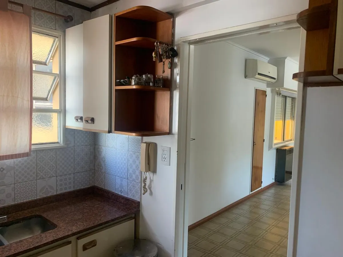 Квартира в General San Martín площадью 3 комнаты (2 спальни), расположена на 2-м этаже, во дворе — окна на фасад. В здании есть лифт; предусмотрено (закреплённое) парковочное место в крытом гараже. В квартире есть гостиная-столовая с балконом и печью, туалет, две спальни с встроенными шкафами, в одной из них установлено кондиционирование. Кухня с навесными шкафами и нижними тумбами, зона под прачечную и полностью оборудованная ванная комната.